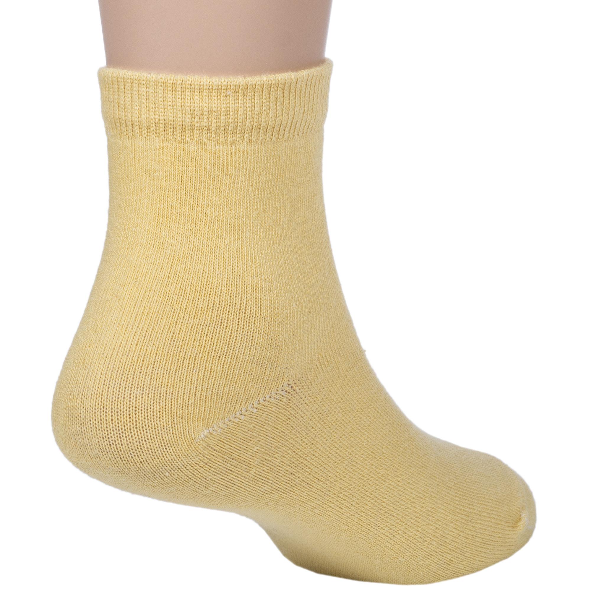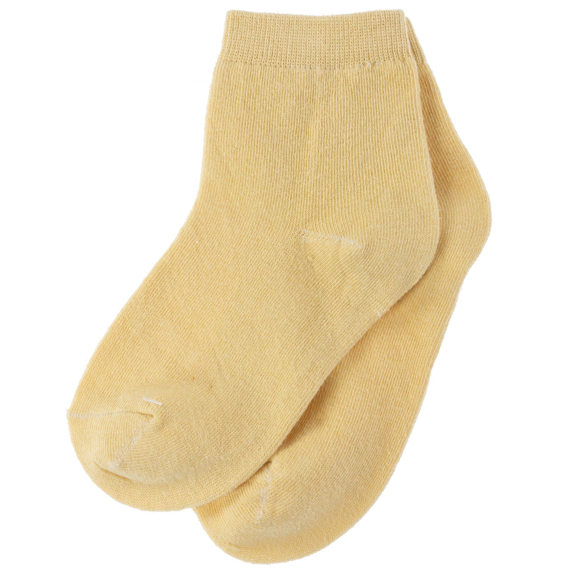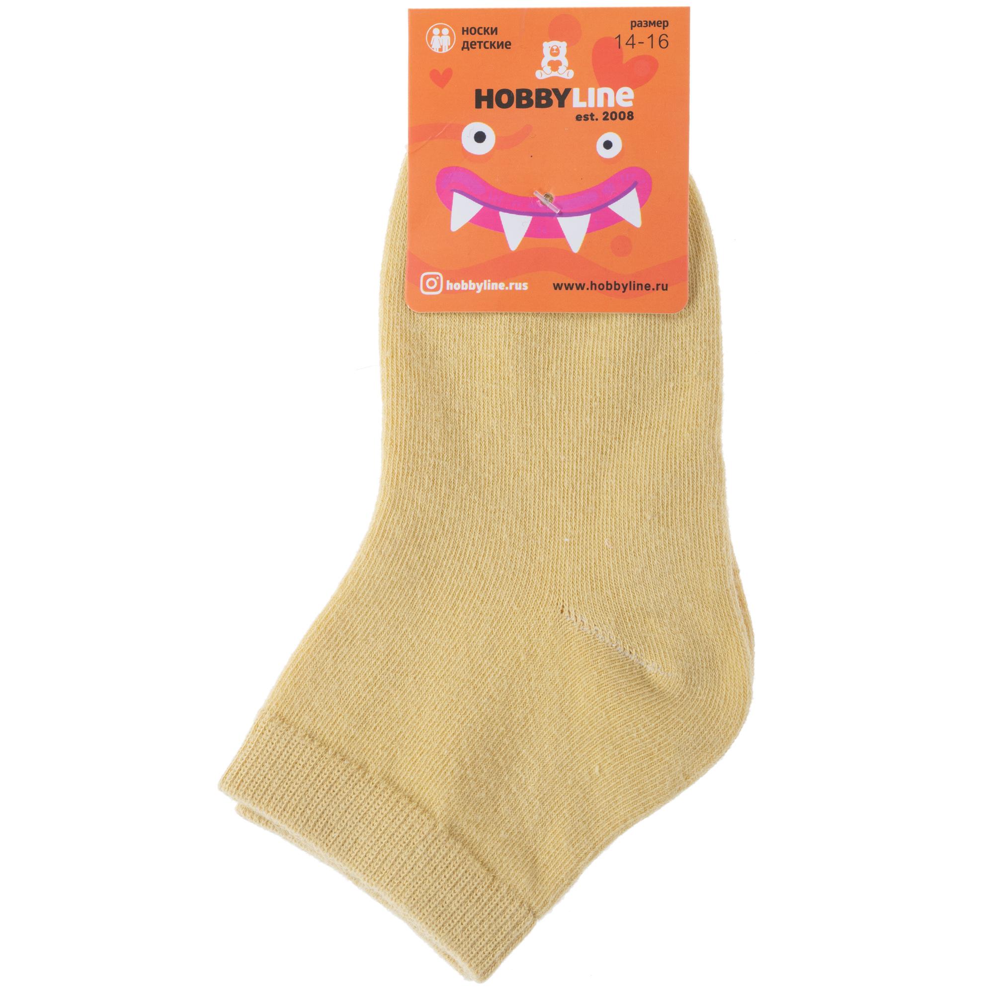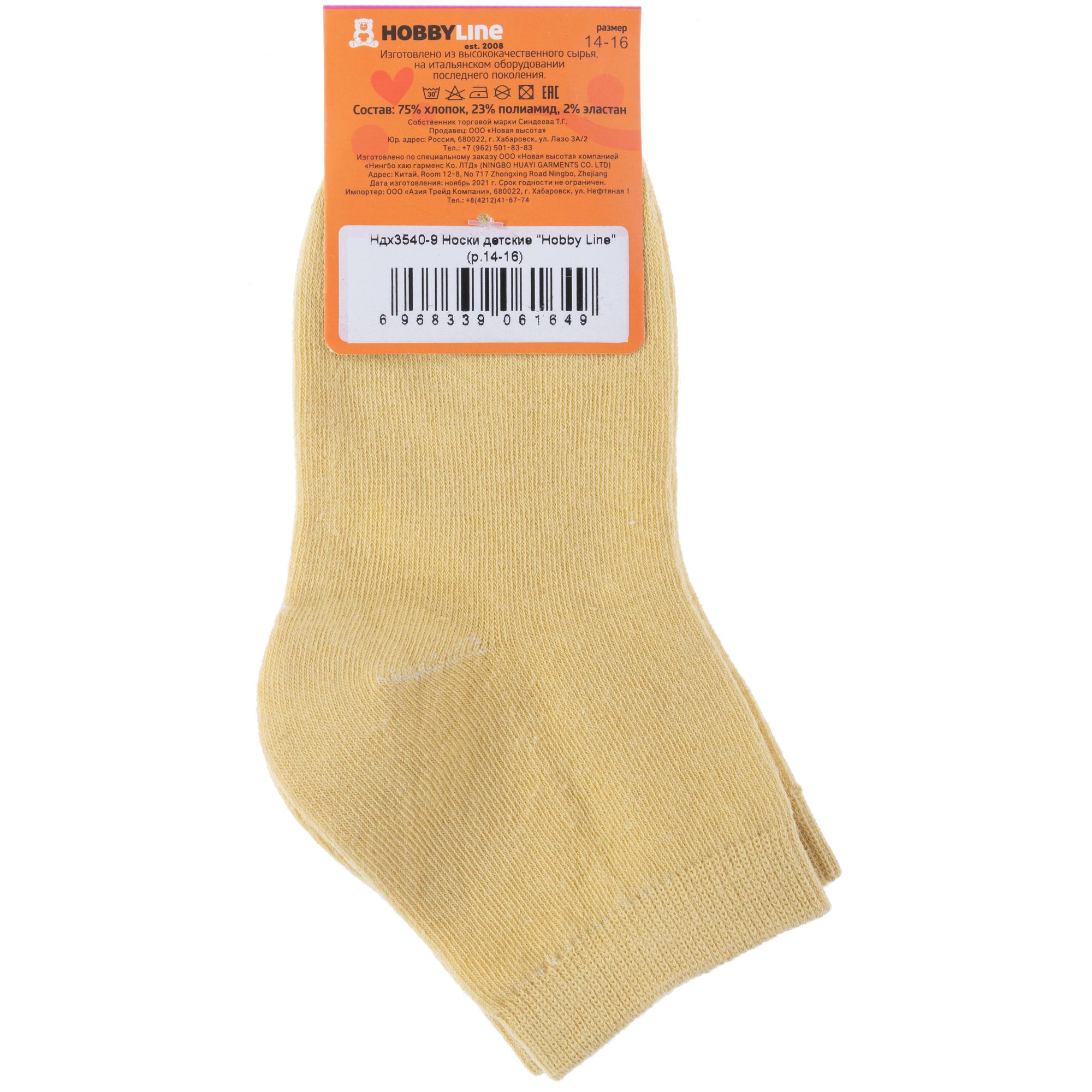 Круглогодичные укороченные детские носки, цвет желтый, классические, шов обычный (не бесшовные), принт (рисунок): однотонный, без рисунков/узоров, состав: 75% хлопок, 23% полиамид, 2% эластан, арт. 3540-9. Производитель «Китай, страна бренда - Россия» под брендом «Hobby line».
