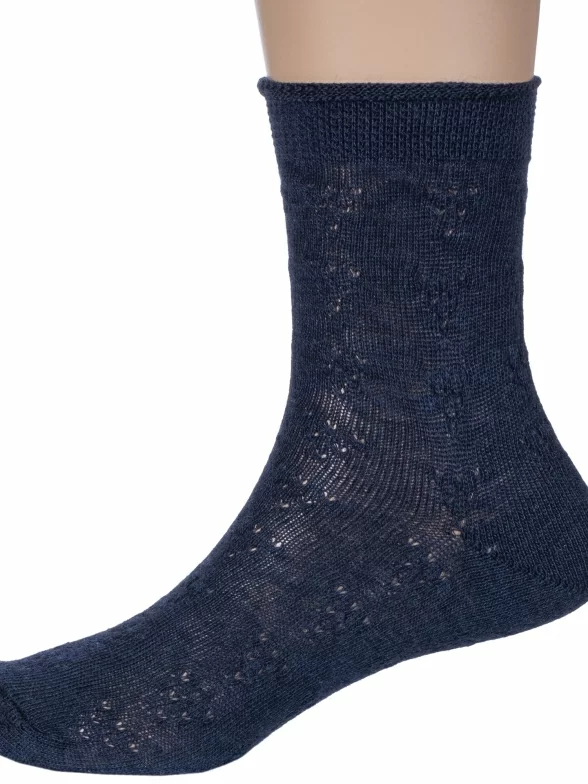Летние укороченные детские носки, цвет синий, классические, шов обычный (не бесшовные), принт (рисунок): кружево (или имитация), однотонный, состав: 100% хлопок, арт. 8С7. Производитель «АО Борисоглебский трикотаж, Воронежская обл, Россия» под брендом «Борисоглебский трикотаж».