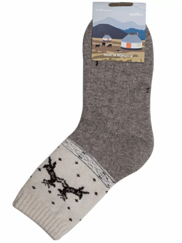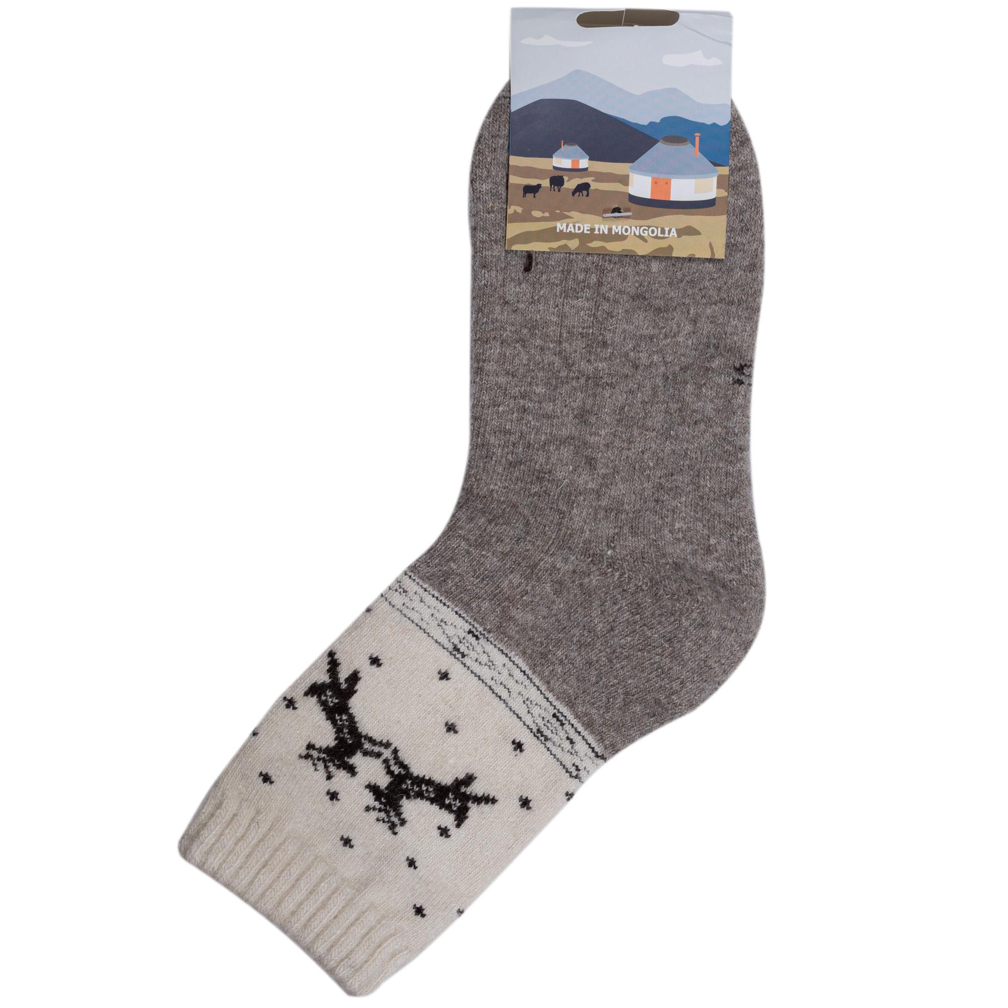 Изготовлены в Монголии из 100% шерсти, что делает изделие износостойким, теплым и гигроскопичным (способным впитывать влагу). Кроме того, такие носки устойчивы к загрязнению, сохраняют форму и цвет, а благодаря умеренному покалыванию, осуществляется легкий микро-массаж стоп, что дополнительно согревает, усиливая кровообращение в ногах.