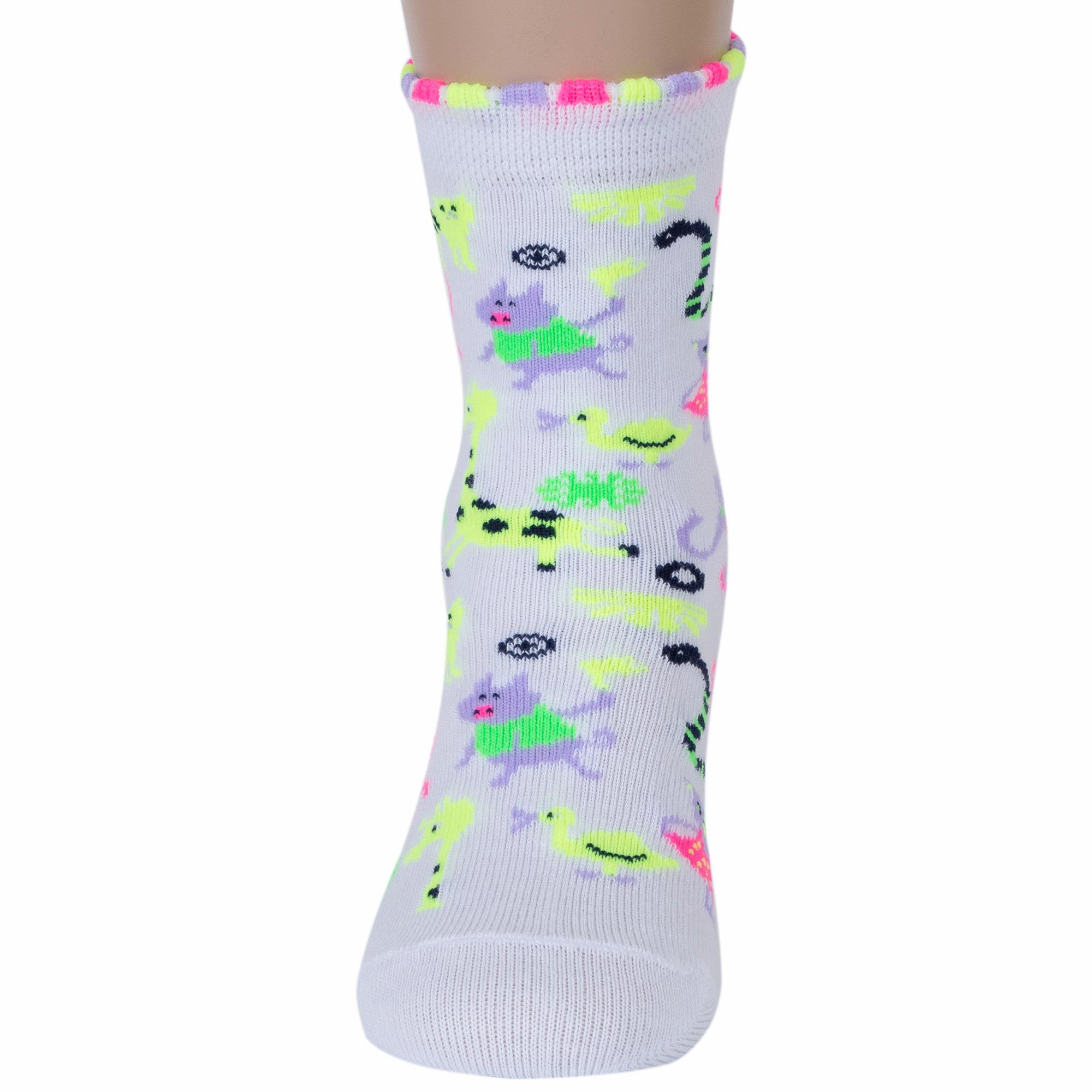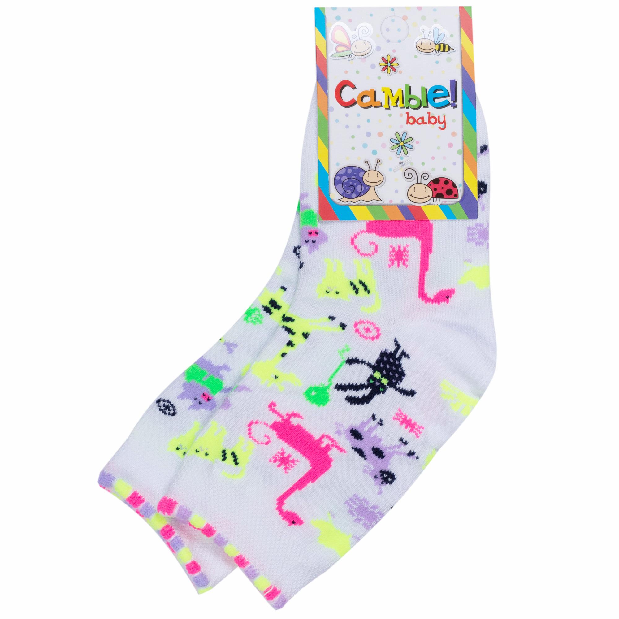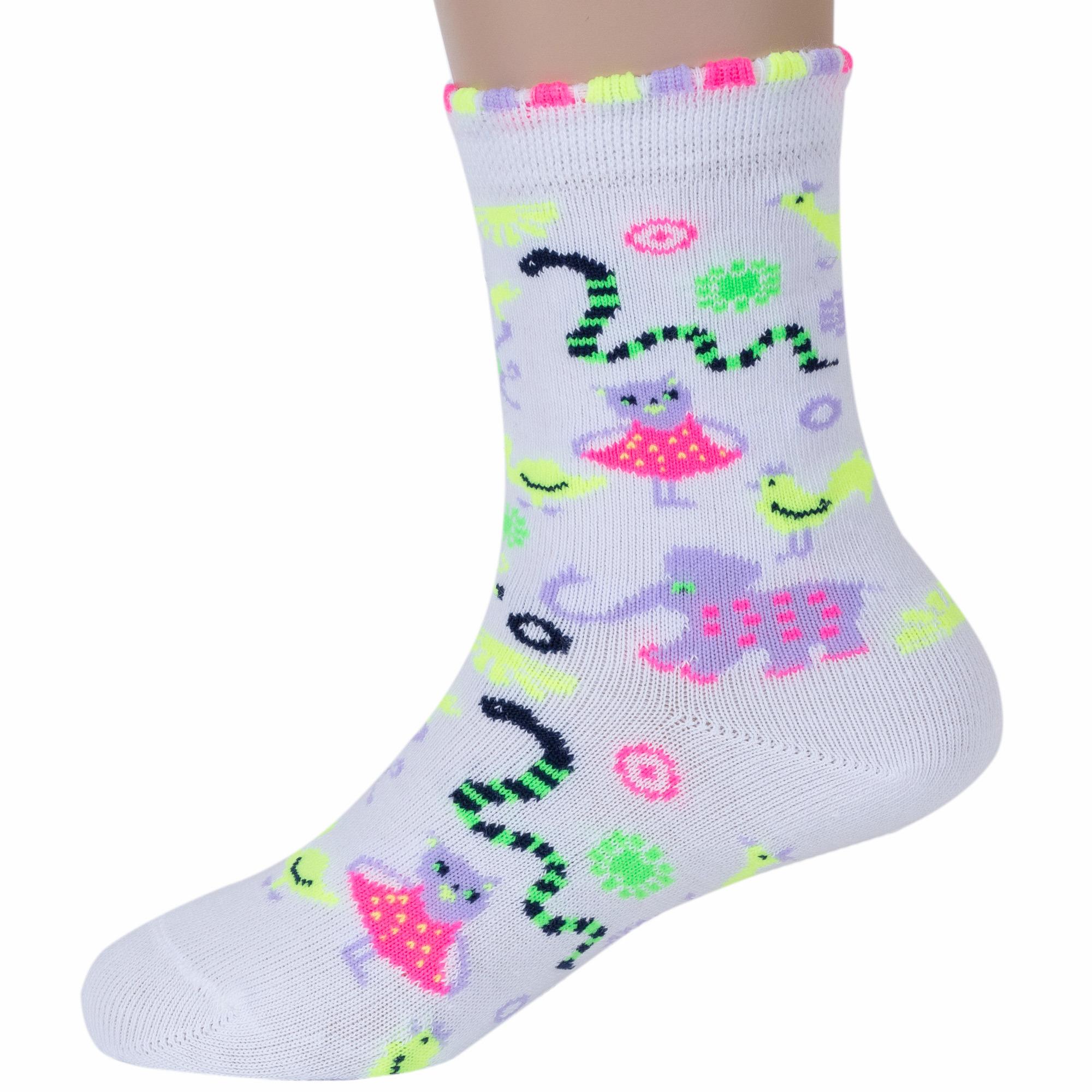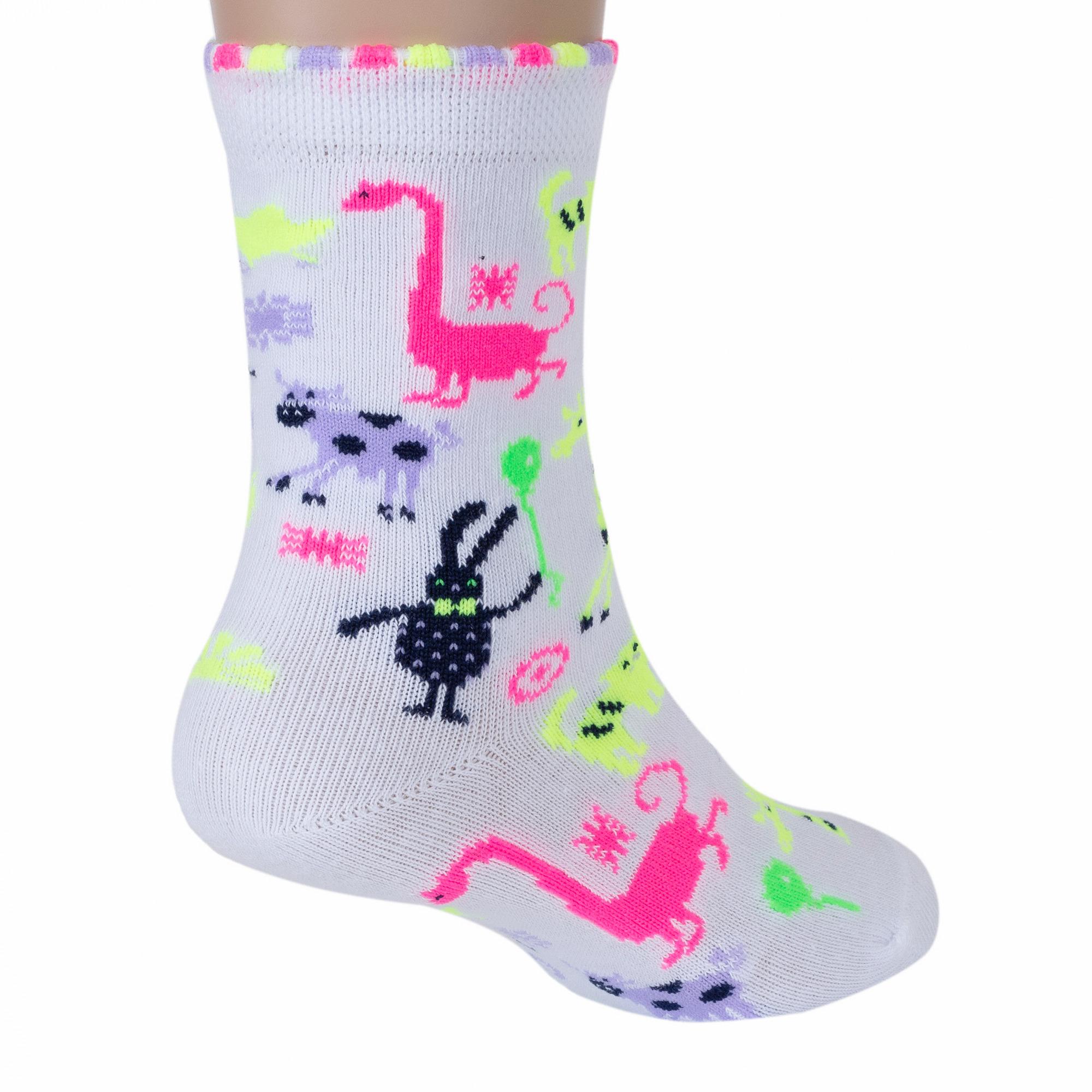 Круглогодичные укороченные детские носки, цвет белый, повседневные, возможно бесшовные, принт (рисунок): животные, с узором, крупные контрастные рисунки, состав: 70% хлопок, 24% полиамид, 6% эластан, арт. С-1701. Производитель «КРАСНАЯ ВЕТКА» Россия под брендом «Красная ветка».