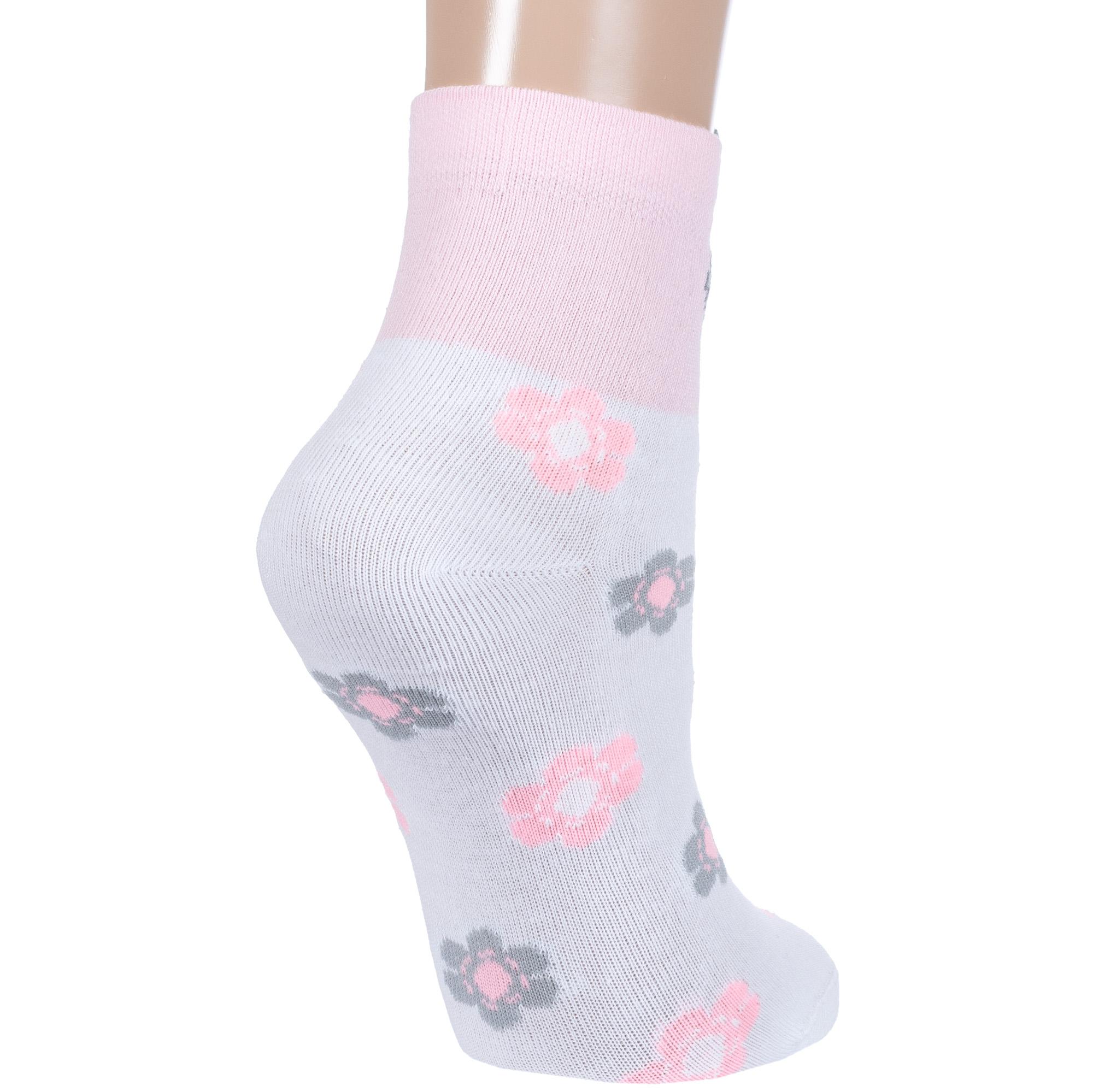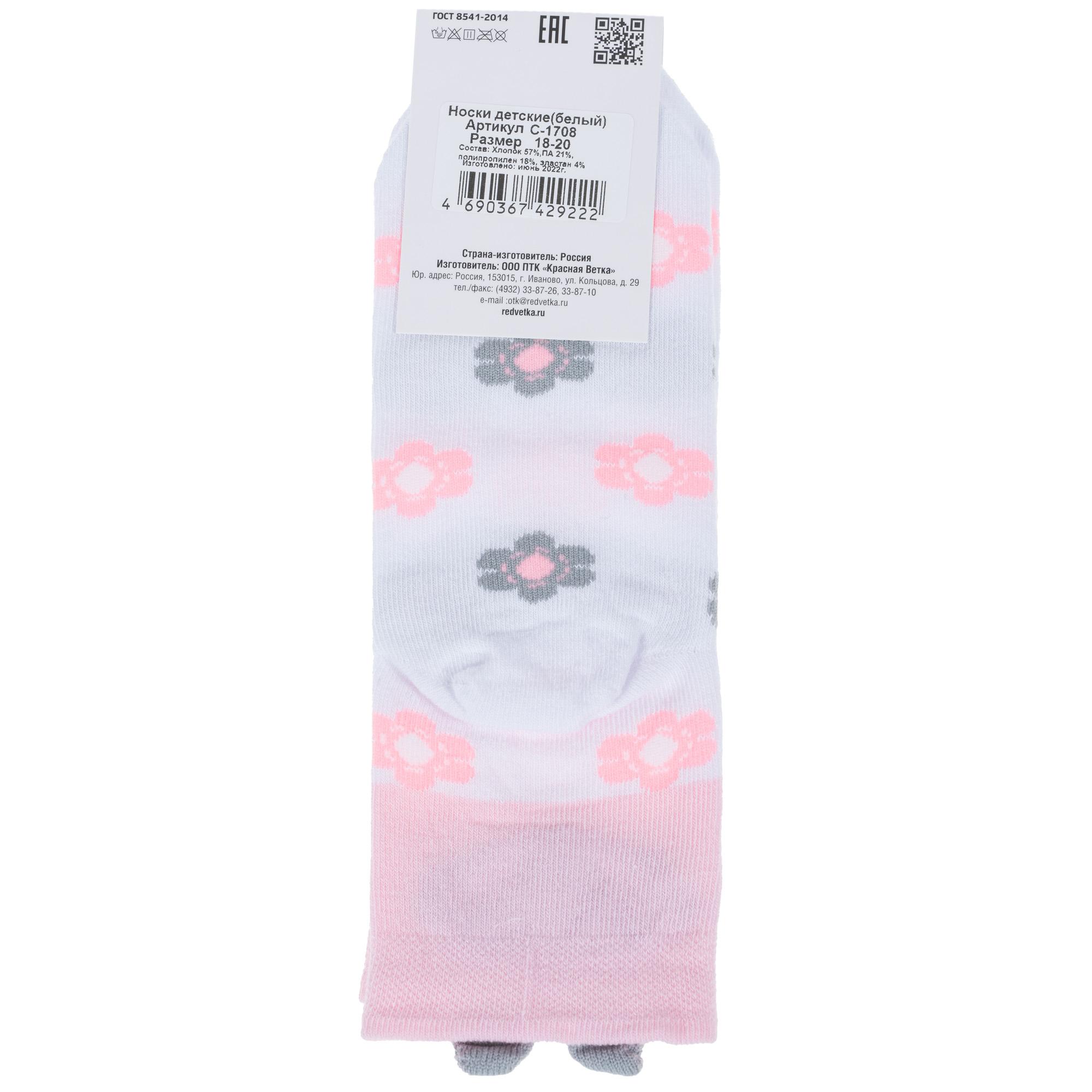 Круглогодичные укороченные детские носки, цвет белый, повседневные, возможно бесшовные, принт (рисунок): цветы / растения, животные, с узором, состав: 57% хлопок, 21% полиамид, 18% полипропилен, 4% эластан, арт. С-1708. Производитель «КРАСНАЯ ВЕТКА» Россия под брендом «Красная ветка».