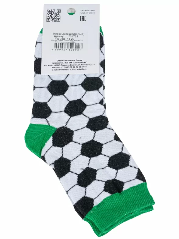 Круглогодичные укороченные детские носки, цвет белый, повседневные, возможно бесшовные, принт (рисунок): спортивные, контрастные пятка / мысок / резинка, игры, с узором, состав: 78% хлопок, 18% полиамид, 4% эластан, арт. С-1721. Производитель «КРАСНАЯ ВЕТКА» Россия под брендом «Красная ветка».