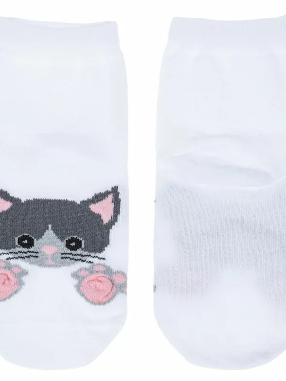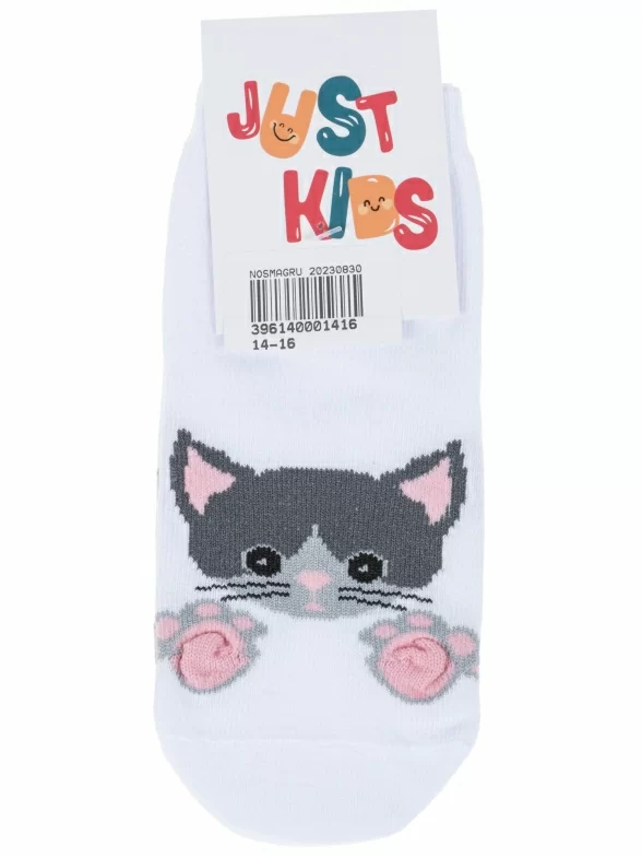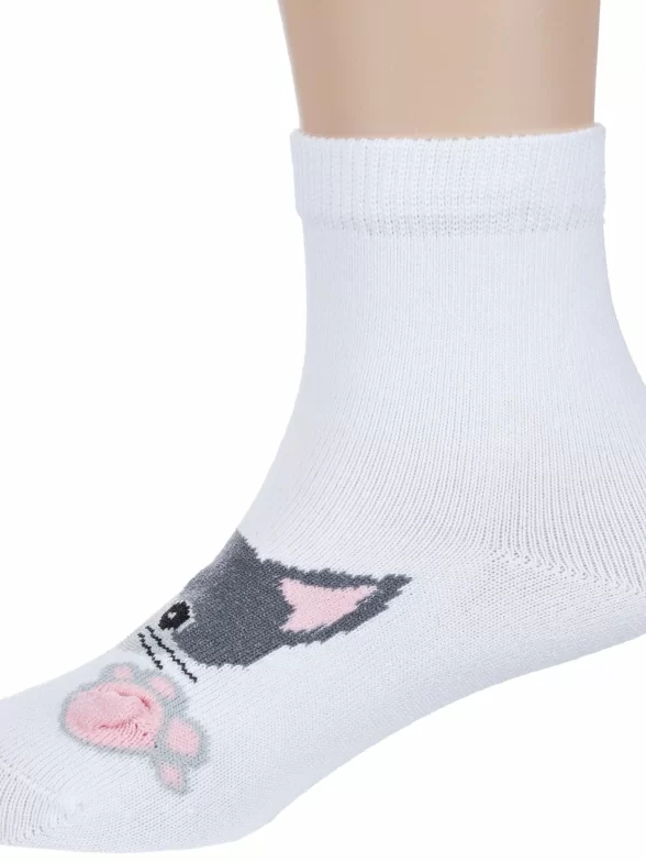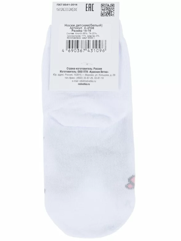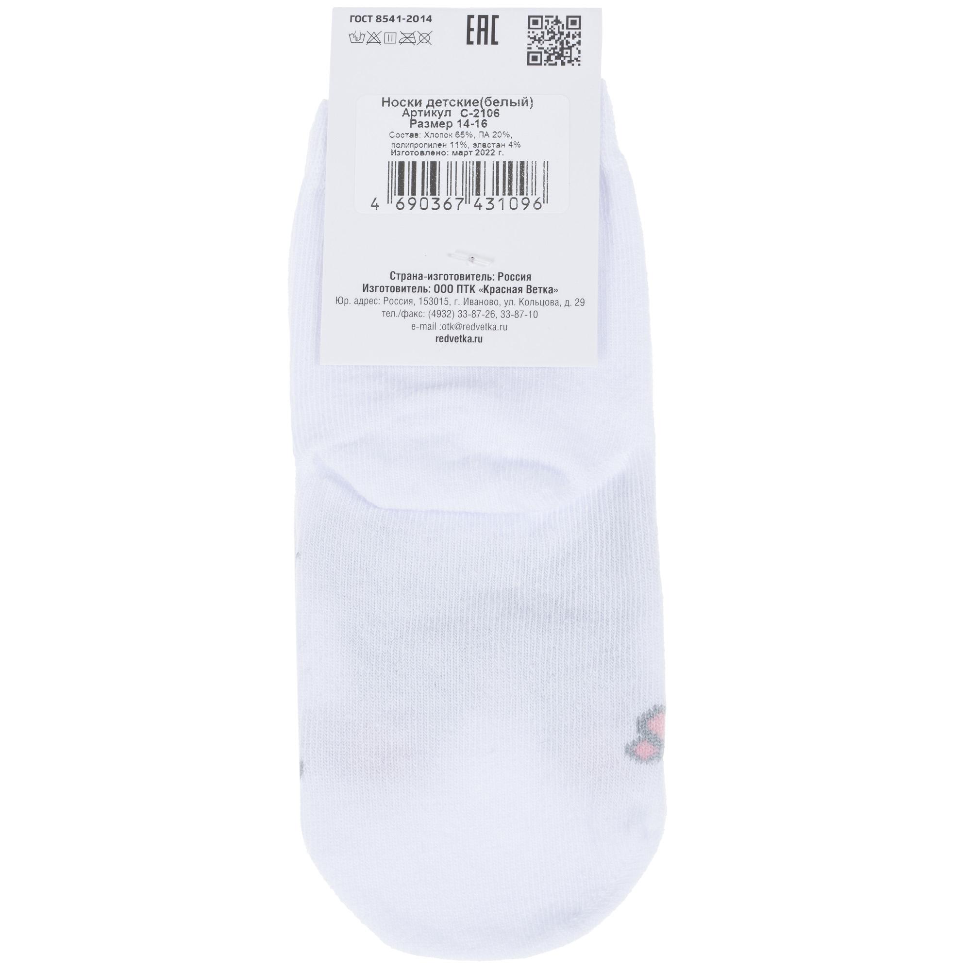 Круглогодичные укороченные детские носки, цвет белый, повседневные, возможно бесшовные, принт (рисунок): животные, с узором, состав: 65% хлопок, 20% полиамид, 11% полипропилен, 4% эластан, арт. С-2106. Производитель «КРАСНАЯ ВЕТКА» Россия под брендом «Красная ветка».