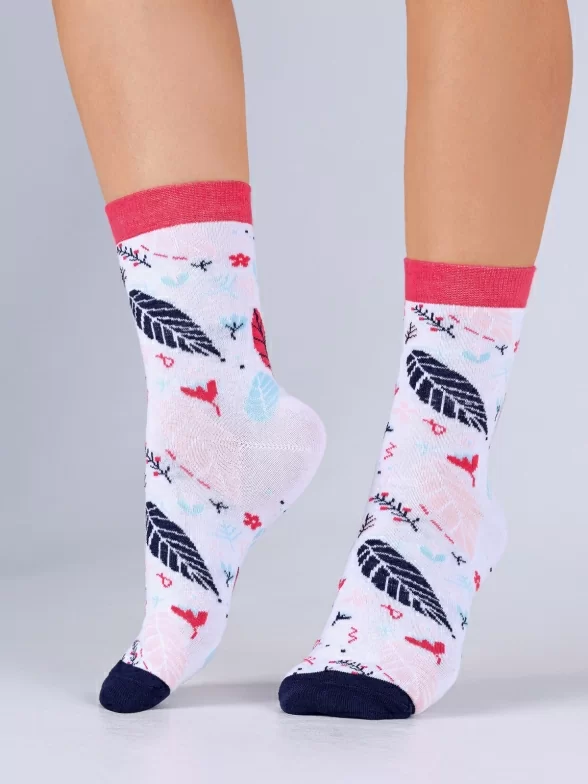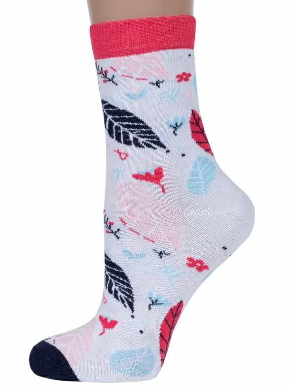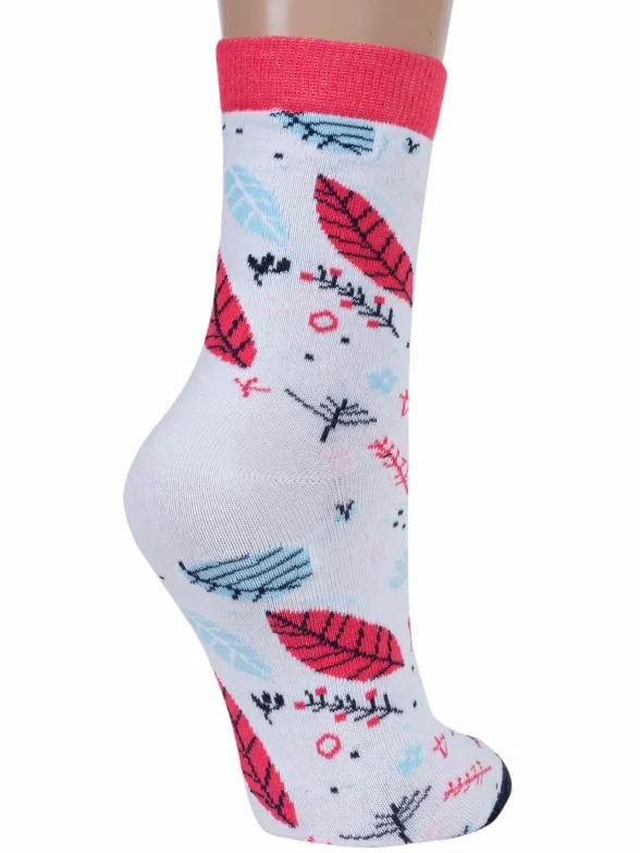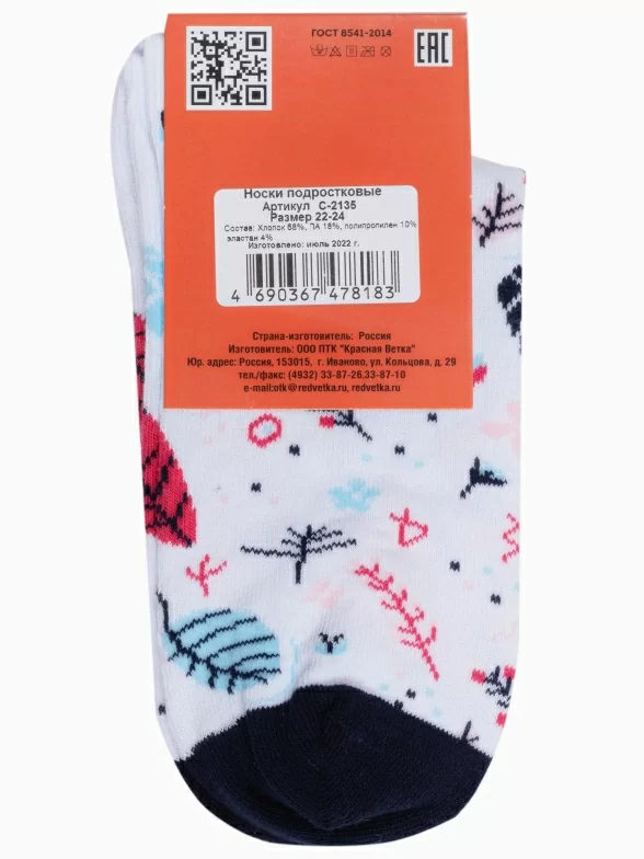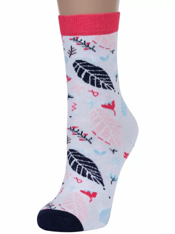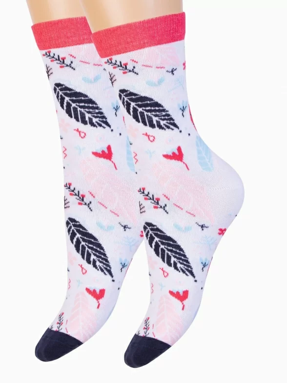 Круглогодичные средней длины детские носки, цвет белый, повседневные, возможно бесшовные, принт (рисунок): абстрактный, с узором, состав: 68% хлопок, 18% полиамид, 10% полипропилен, 4% эластан, арт. С-2135. Производитель «КРАСНАЯ ВЕТКА» Россия под брендом «Красная ветка».