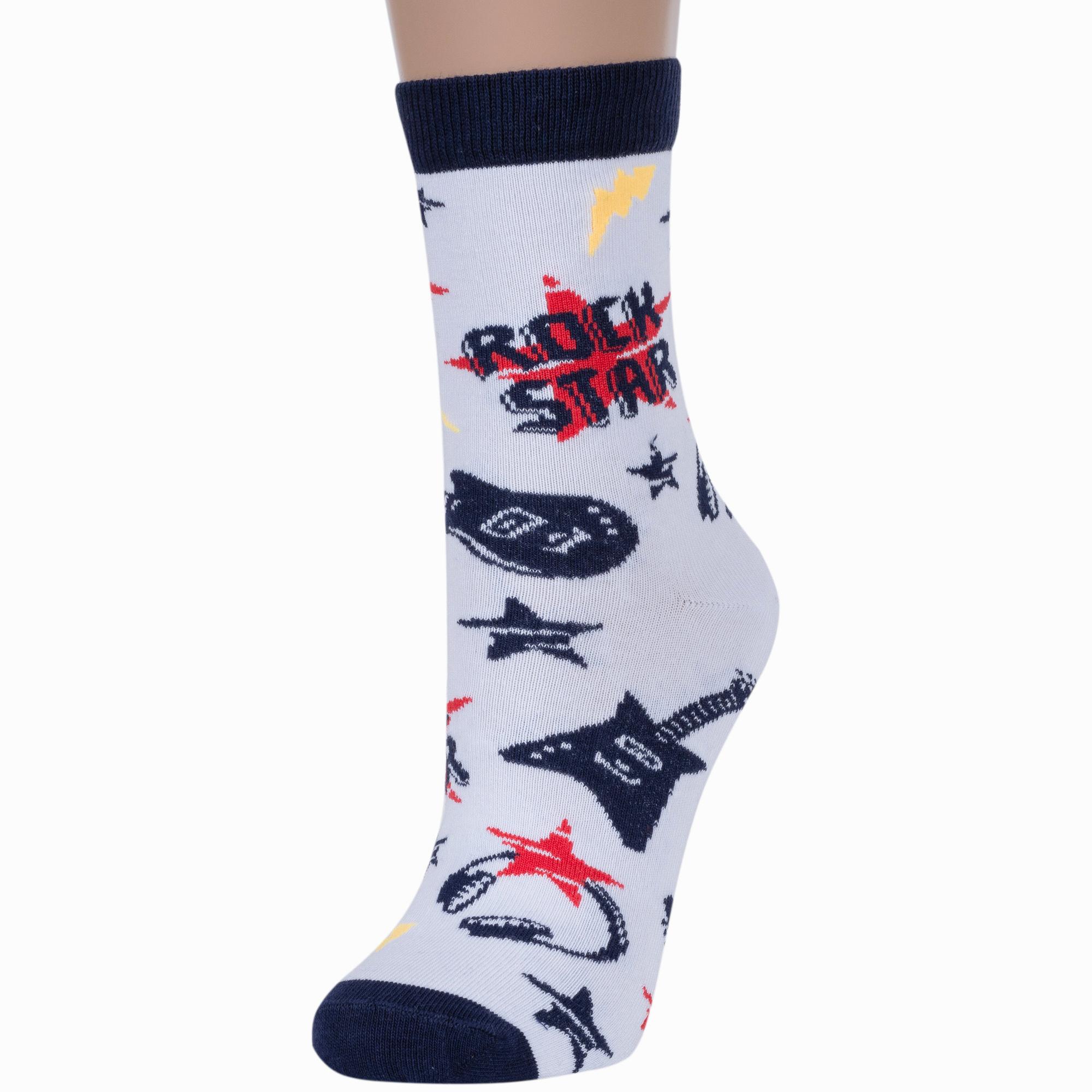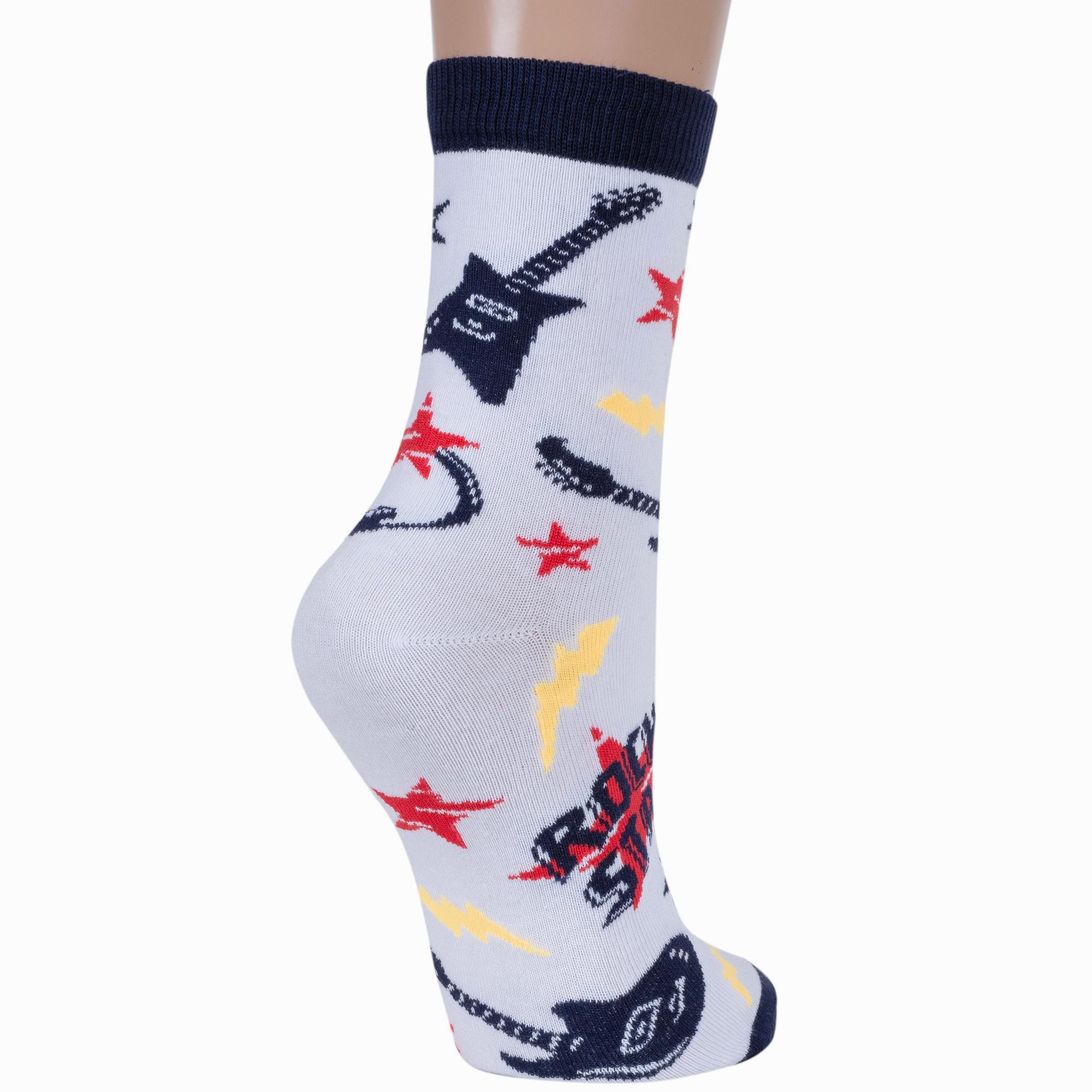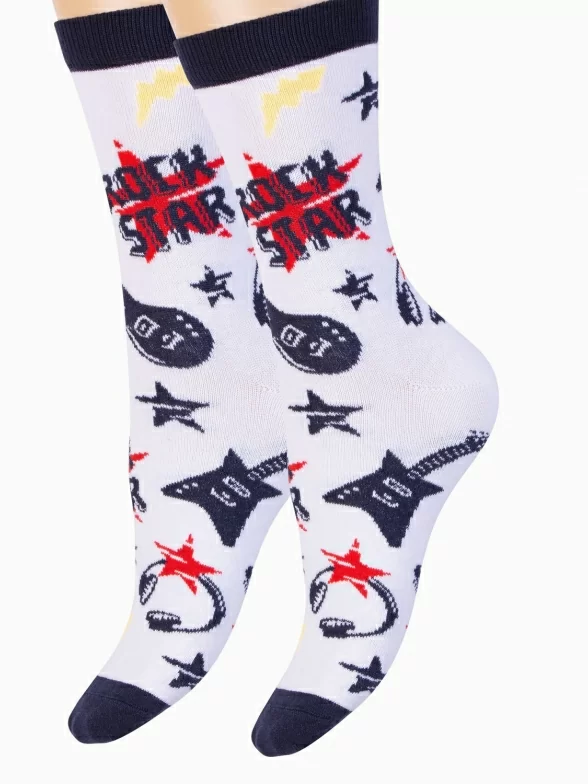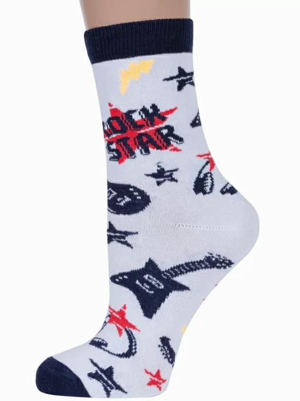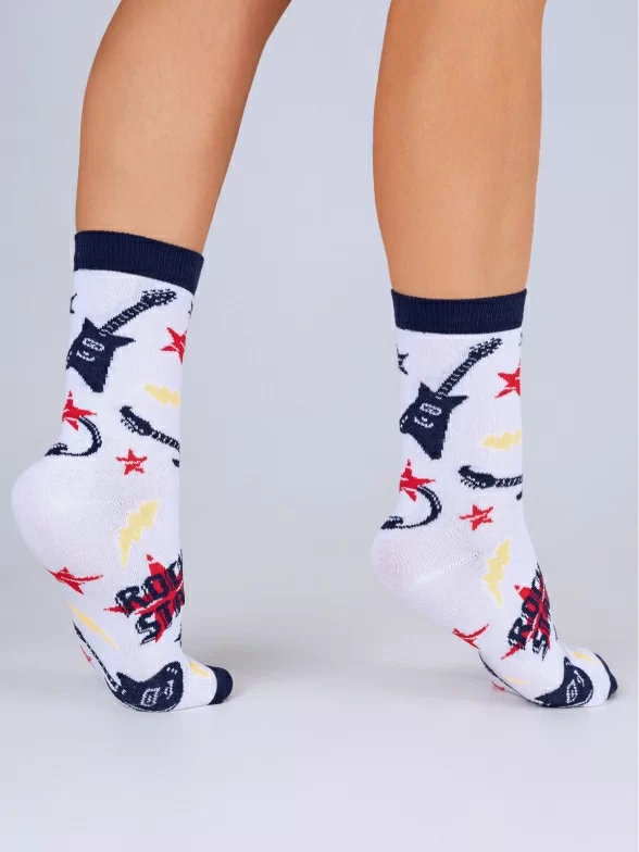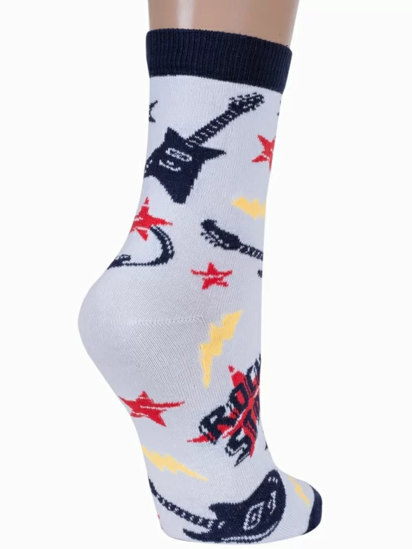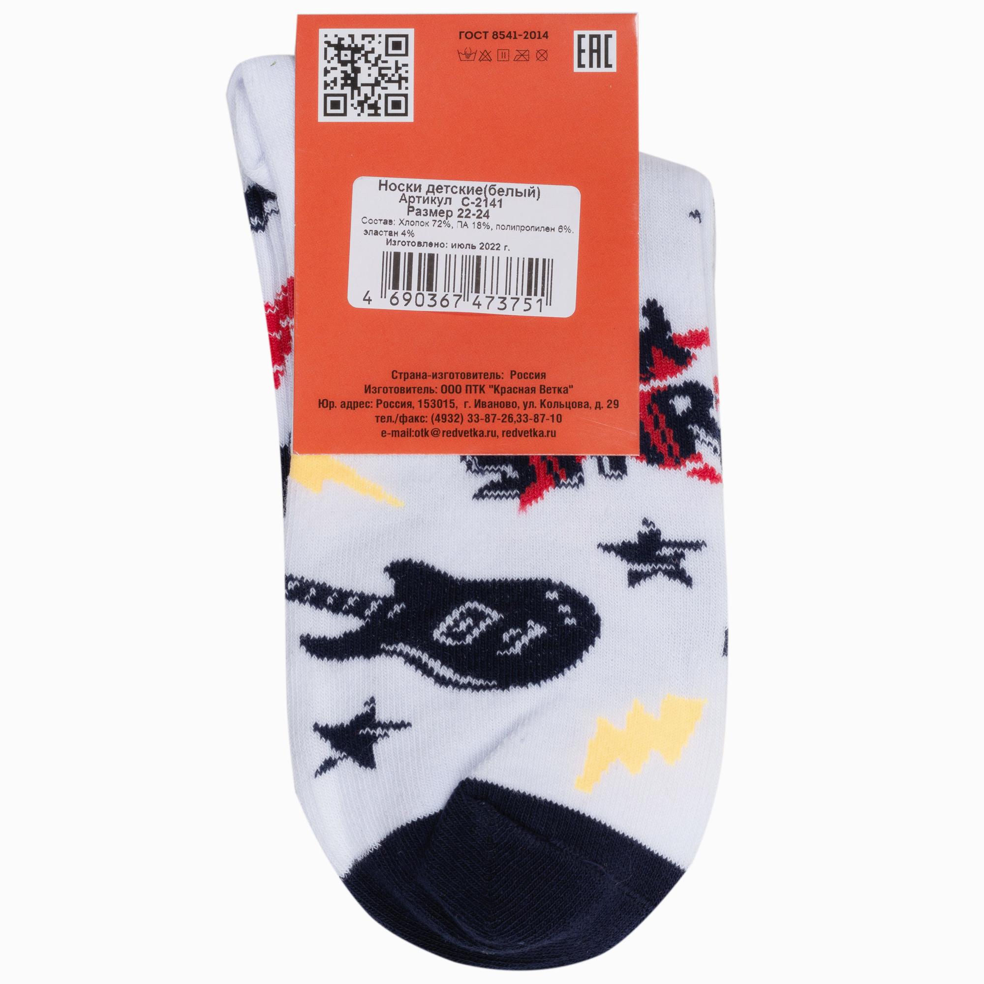 Круглогодичные средней длины детские носки, цвет белый, повседневные, возможно бесшовные, принт (рисунок): музыка, с узором, состав: 72% хлопок, 18% полиамид, 6% полипропилен, 4% эластан, арт. С-2141. Производитель «КРАСНАЯ ВЕТКА» Россия под брендом «Красная ветка».