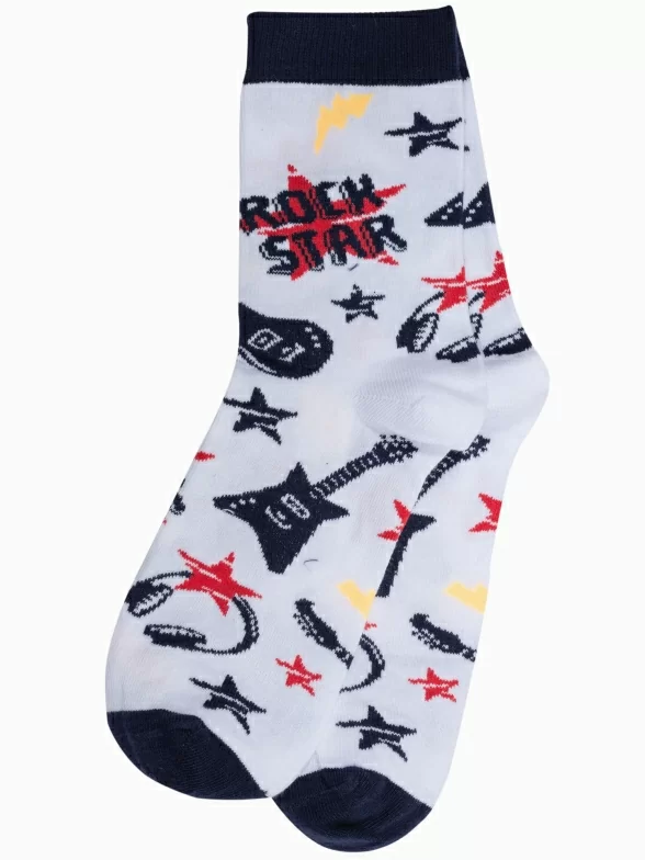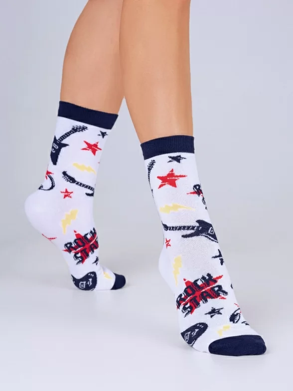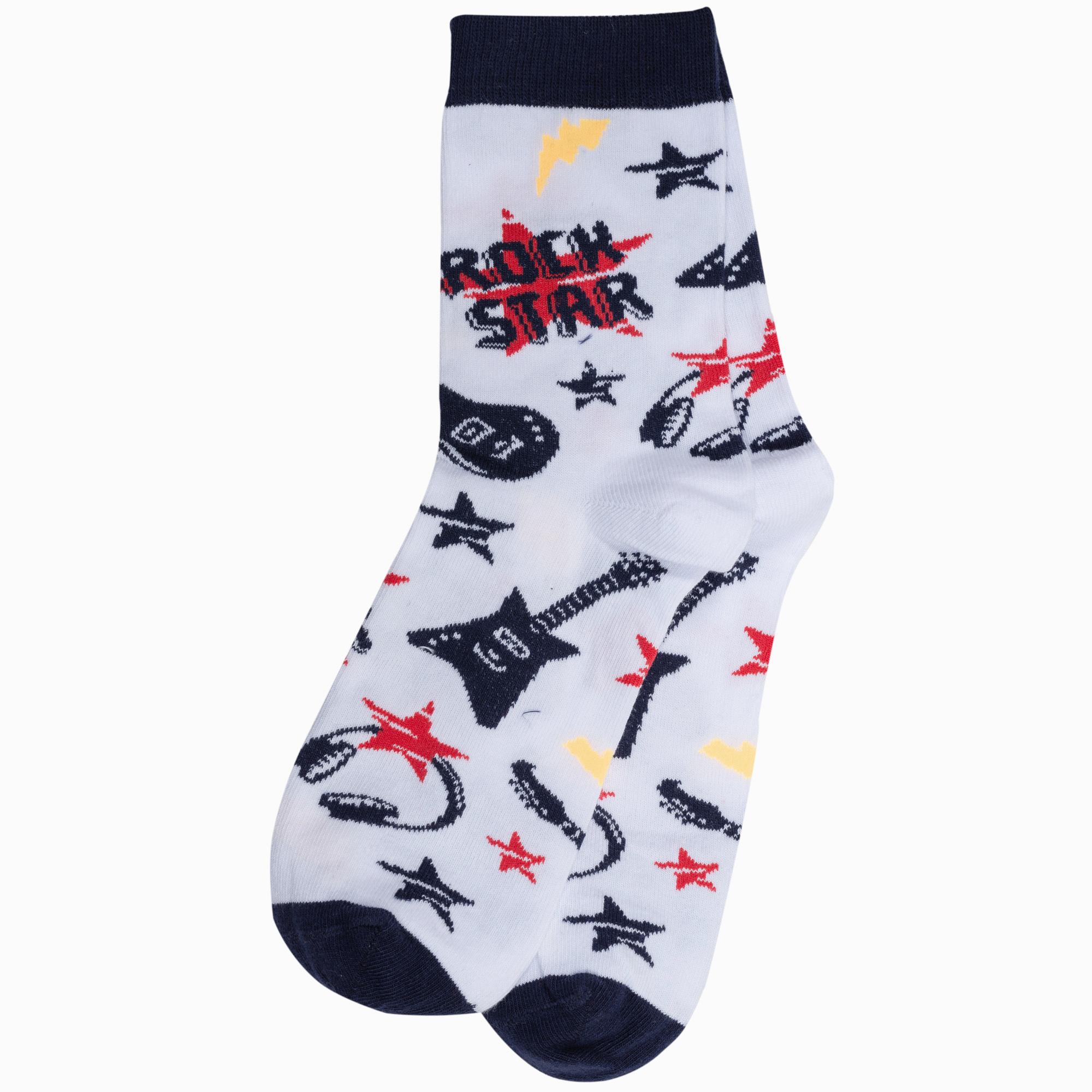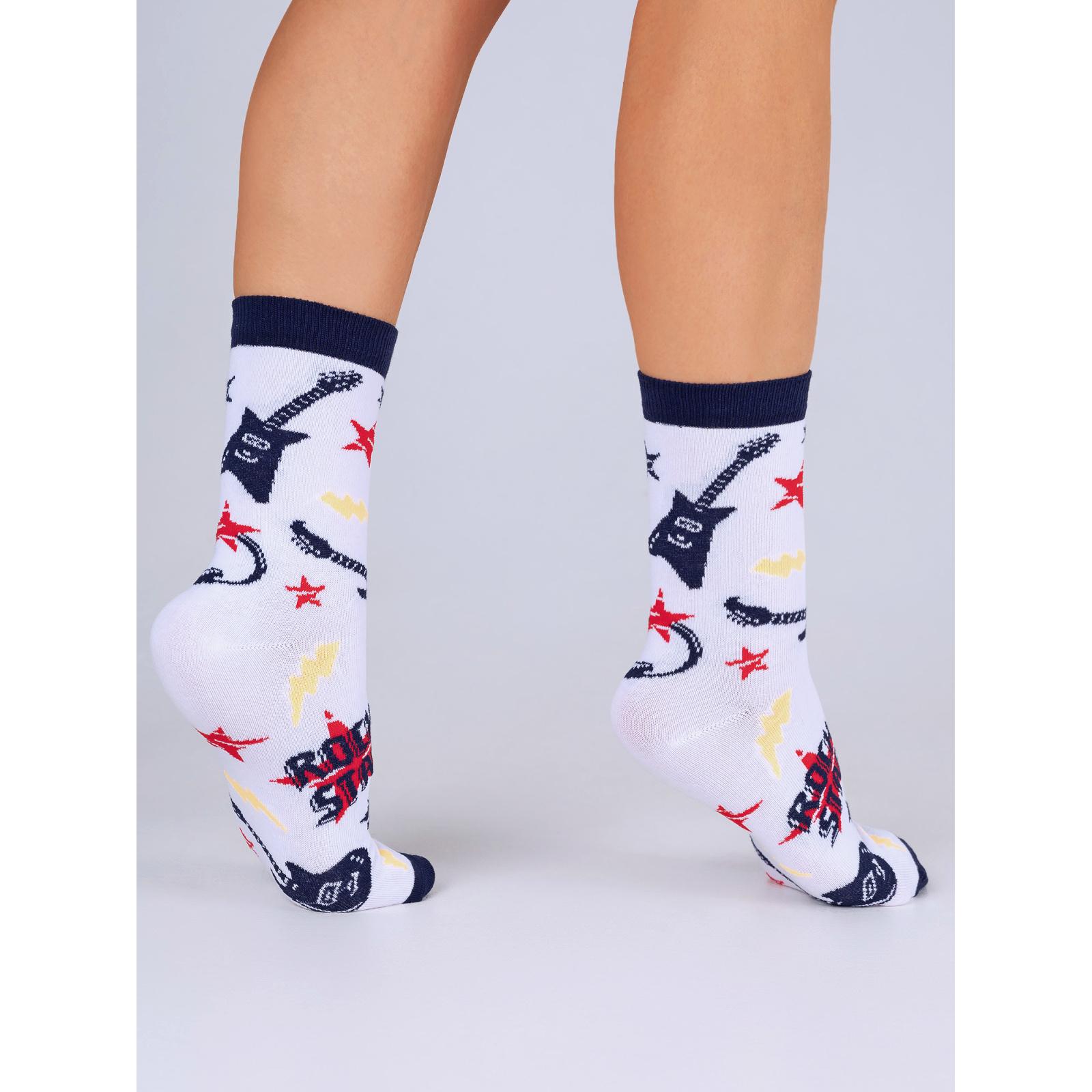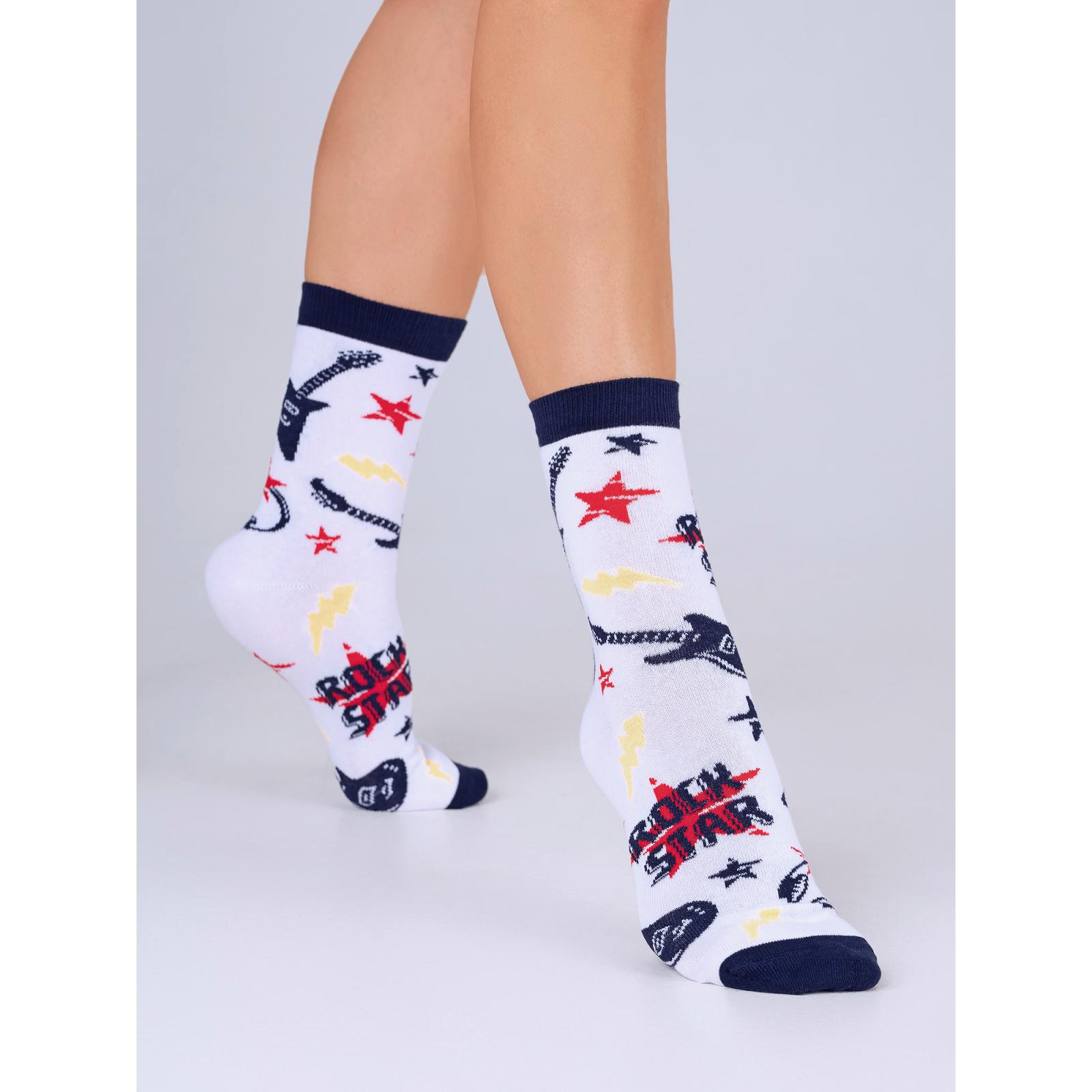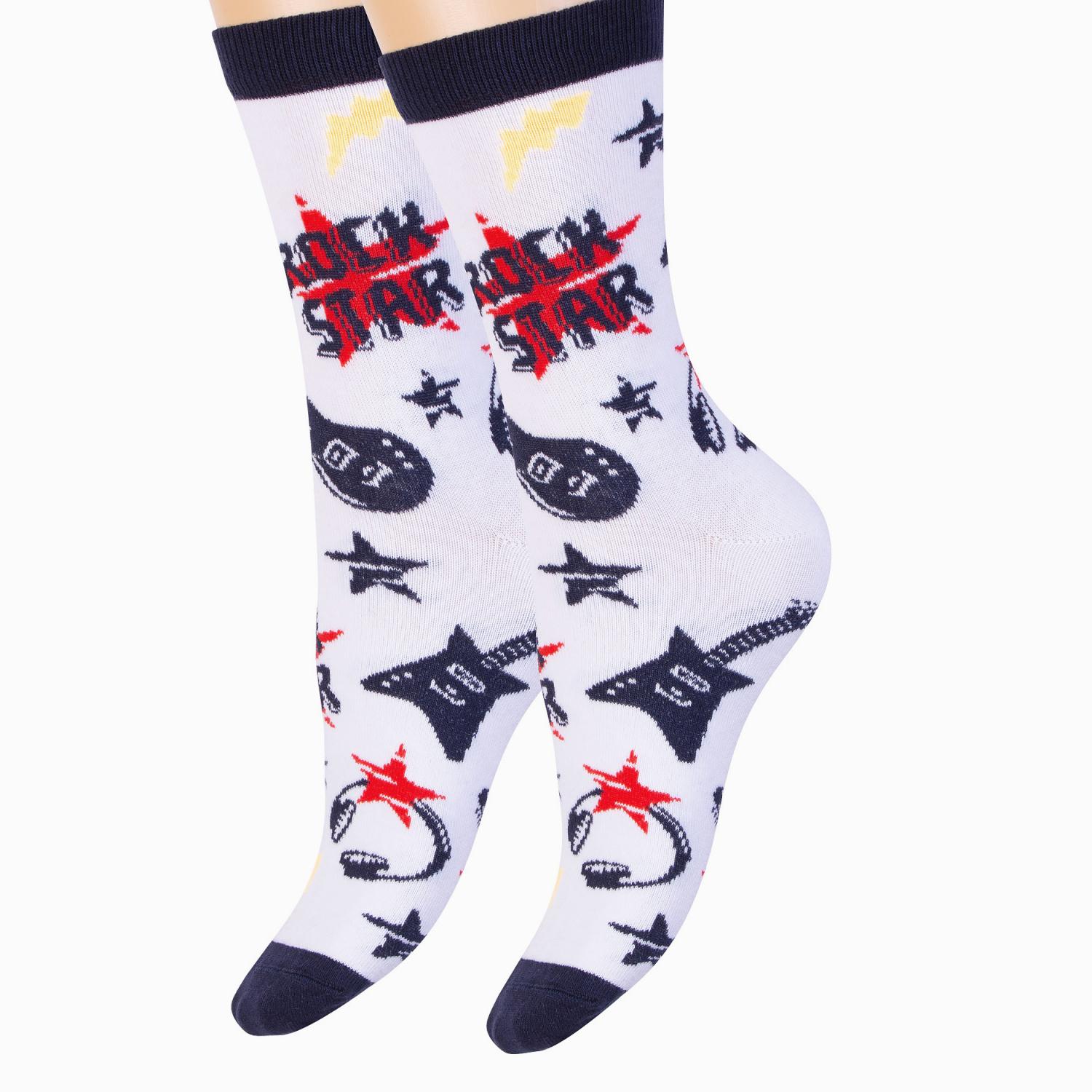 Круглогодичные средней длины детские носки, цвет белый, повседневные, возможно бесшовные, принт (рисунок): музыка, с узором, состав: 72% хлопок, 18% полиамид, 6% полипропилен, 4% эластан, арт. С-2141. Производитель «КРАСНАЯ ВЕТКА» Россия под брендом «Красная ветка».