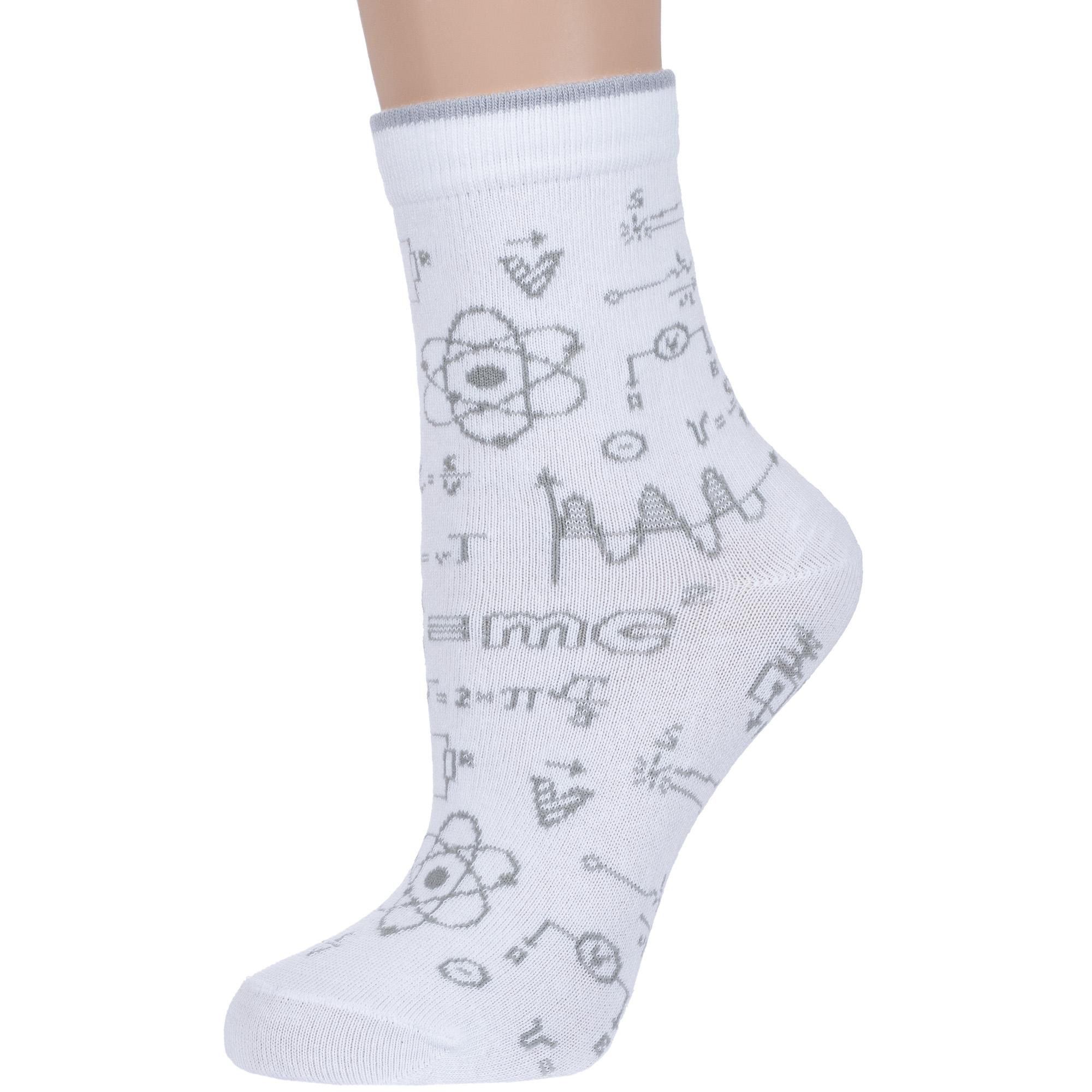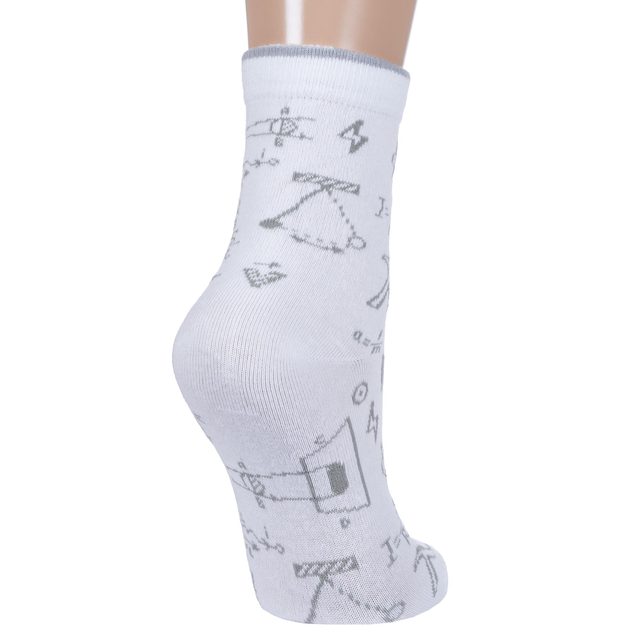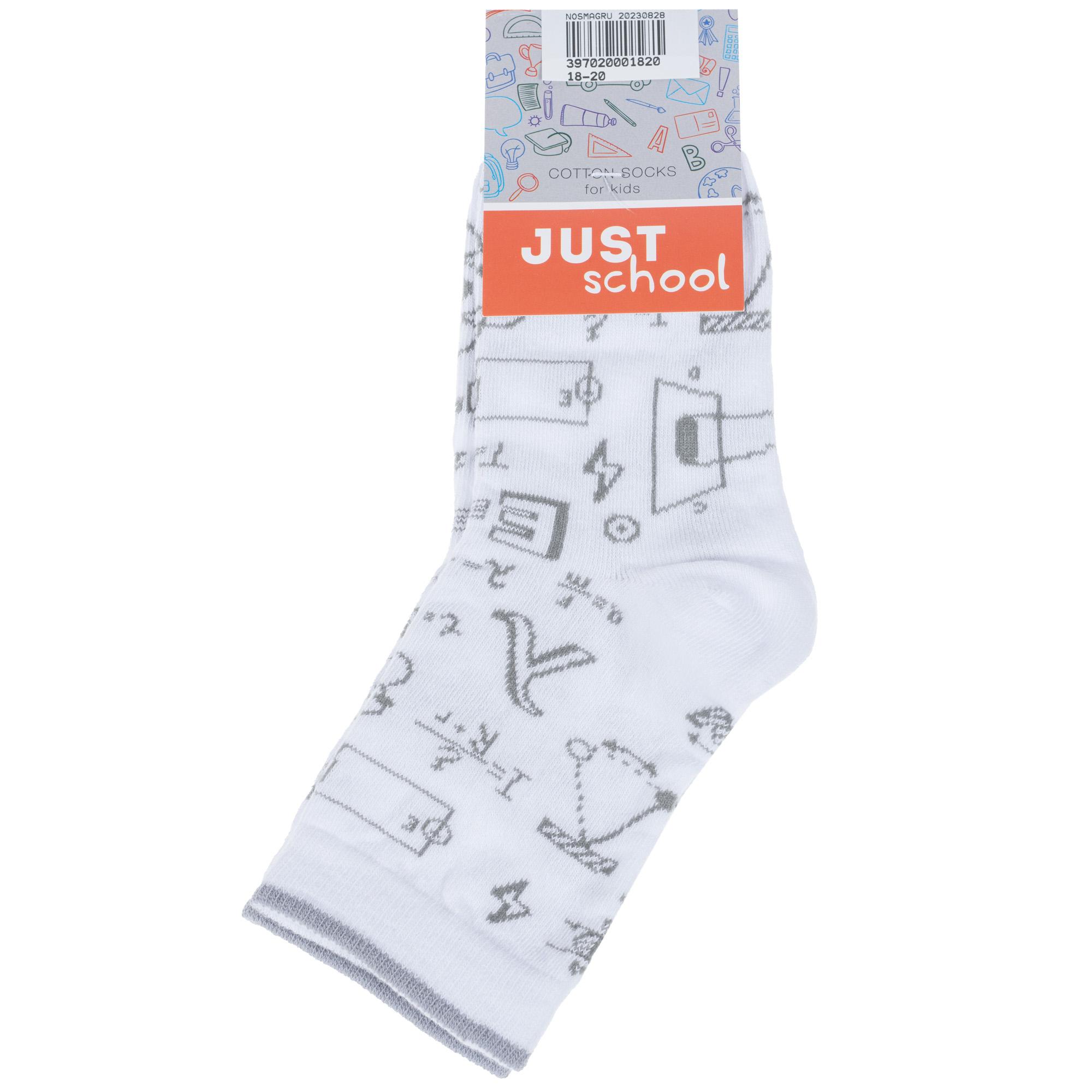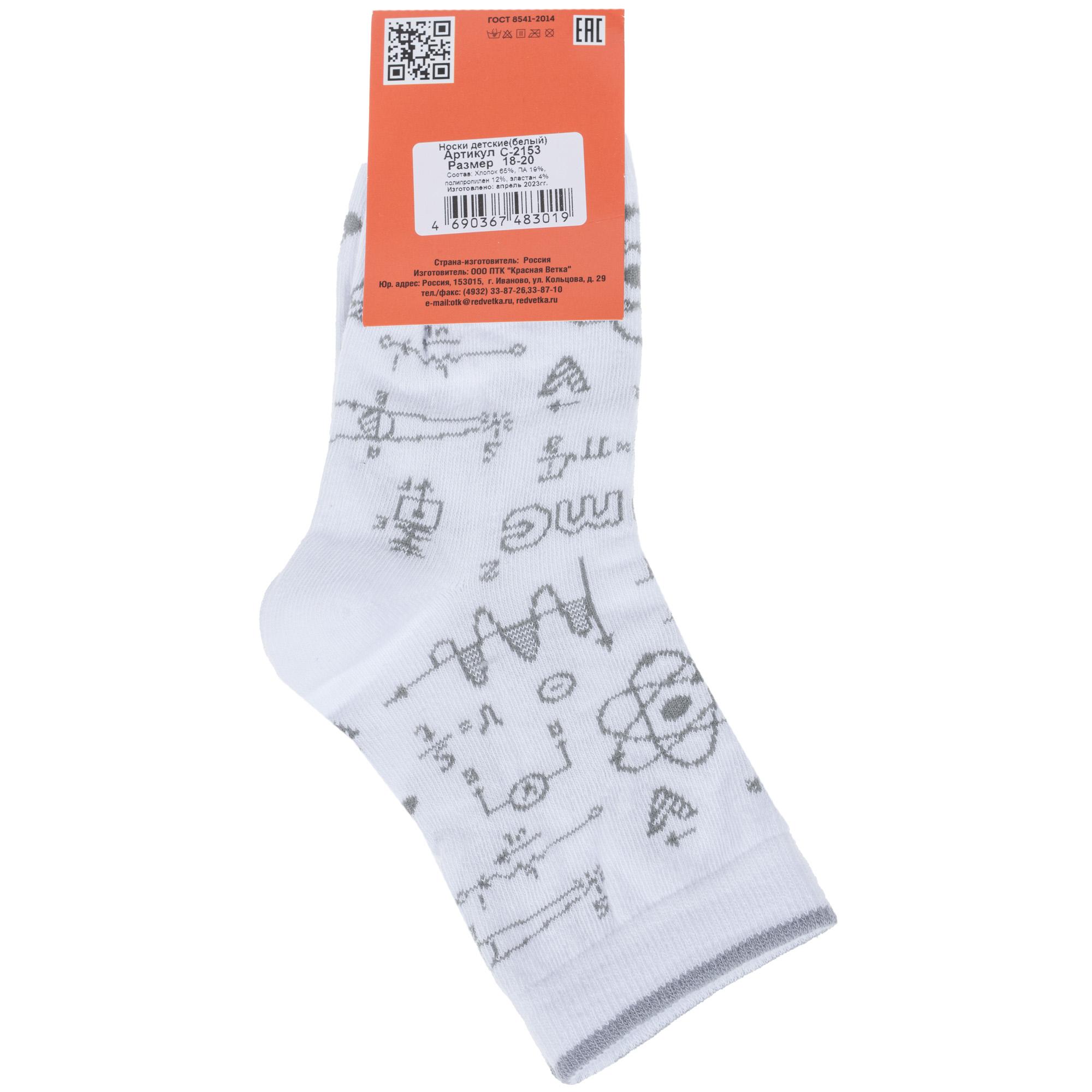 Круглогодичные укороченные детские носки, цвет белый, повседневные, возможно бесшовные, принт (рисунок): учеба, надписи, с узором, состав: 65% хлопок, 19% полиамид, 12% полипропилен, 4% эластан, арт. С-2153. Производитель «КРАСНАЯ ВЕТКА» Россия под брендом «Красная ветка».