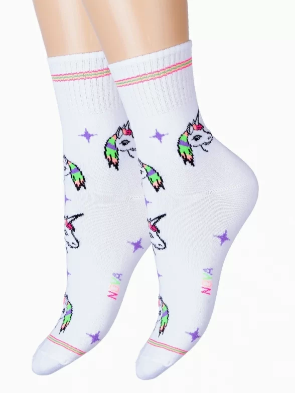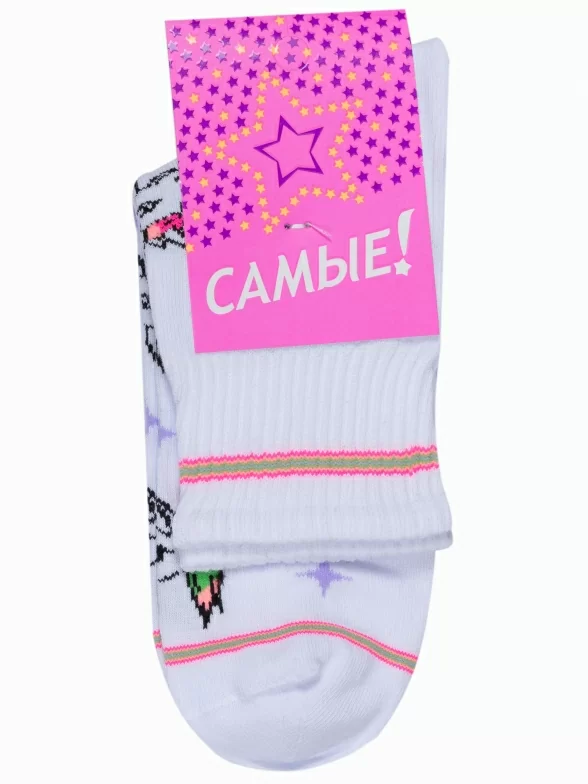 Круглогодичные укороченные детские носки, цвет белый, повседневные, возможно бесшовные, принт (рисунок): фильмы / сериалы / мультики, животные, с узором, состав: 65% хлопок, 20% полиамид, 11% полипропилен, 4% эластан, арт. С-588. Производитель «КРАСНАЯ ВЕТКА» Россия под брендом «Красная ветка».