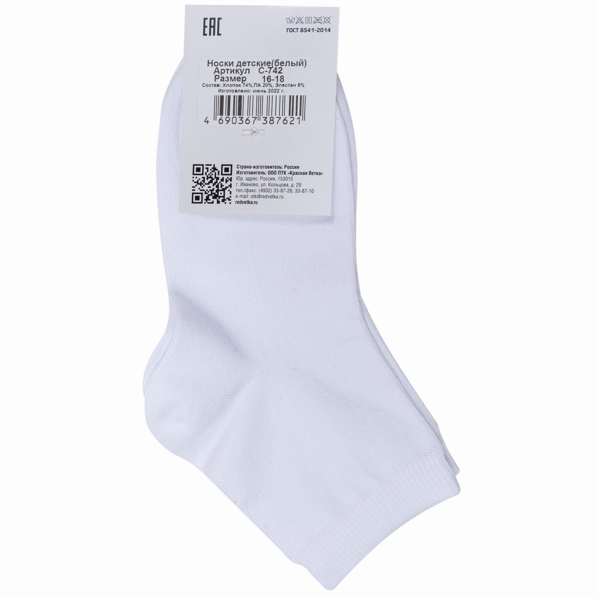 Круглогодичные укороченные детские носки, цвет белый, классические, возможно бесшовные, принт (рисунок): однотонный, без рисунков/узоров, состав: 74% хлопок, 20% полиамид, 6% эластан, арт. С-742. Производитель «КРАСНАЯ ВЕТКА» Россия под брендом «Красная ветка».