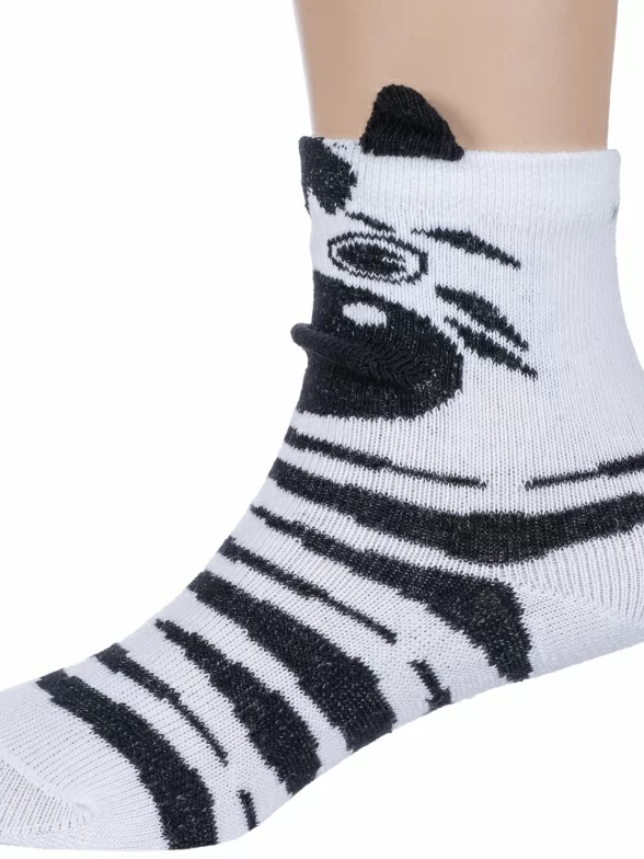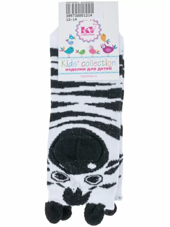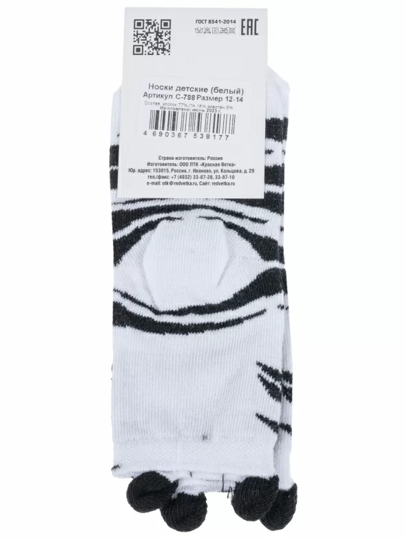 Круглогодичные укороченные детские носки, цвет белый, повседневные, возможно бесшовные, принт (рисунок): животные, с узором, состав: 77% хлопок, 18% полиамид, 5% эластан, арт. С-788. Производитель «КРАСНАЯ ВЕТКА» Россия под брендом «Красная ветка».