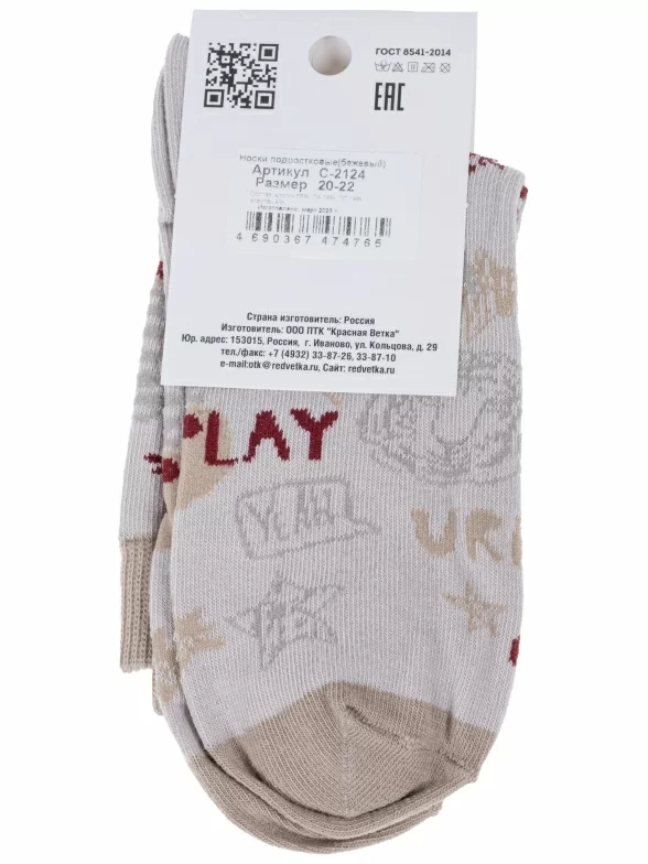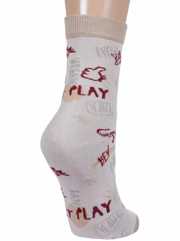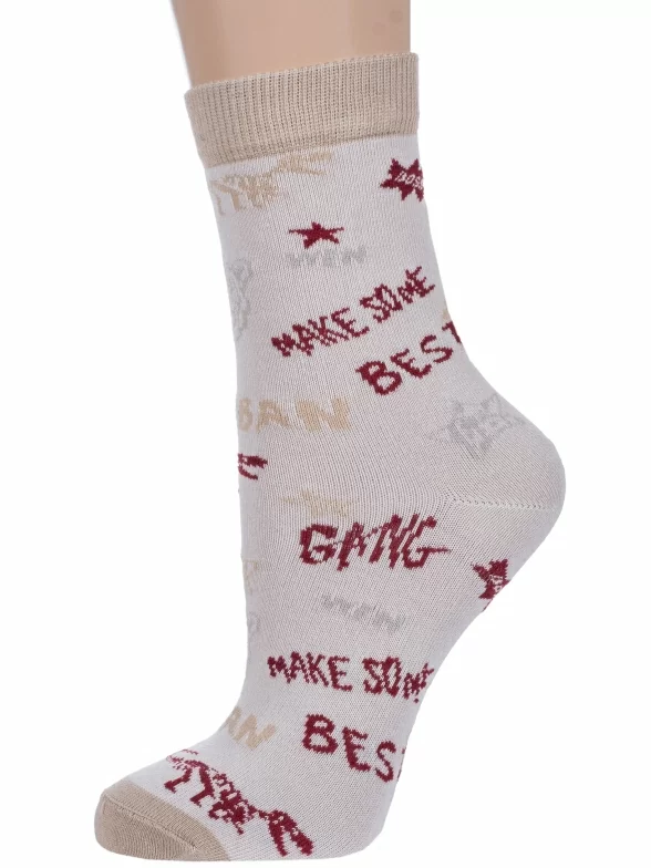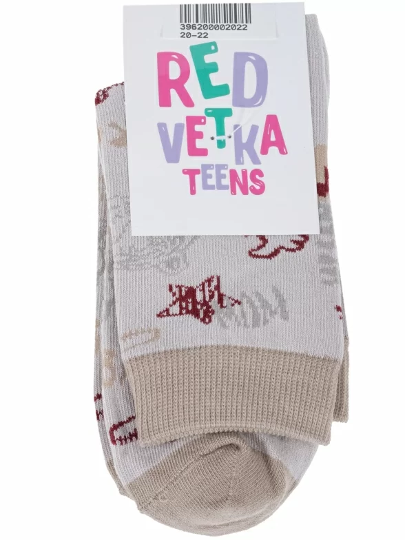 Круглогодичные укороченные детские носки, цвет бежевый, повседневные, возможно бесшовные, принт (рисунок): поп-культура, надписи, животные, с узором, состав: 58% хлопок, 19% полиамид, 19% полипропилен, 4% эластан, арт. С-2124. Производитель «КРАСНАЯ ВЕТКА» Россия под брендом «Красная ветка».