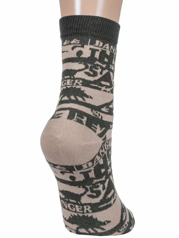 Круглогодичные укороченные детские носки, цвет бежевый, повседневные, возможно бесшовные, принт (рисунок): надписи, животные, с узором, состав: 80% хлопок, 16% полиамид, 4% эластан, арт. С-2145. Производитель «КРАСНАЯ ВЕТКА» Россия под брендом «Красная ветка».