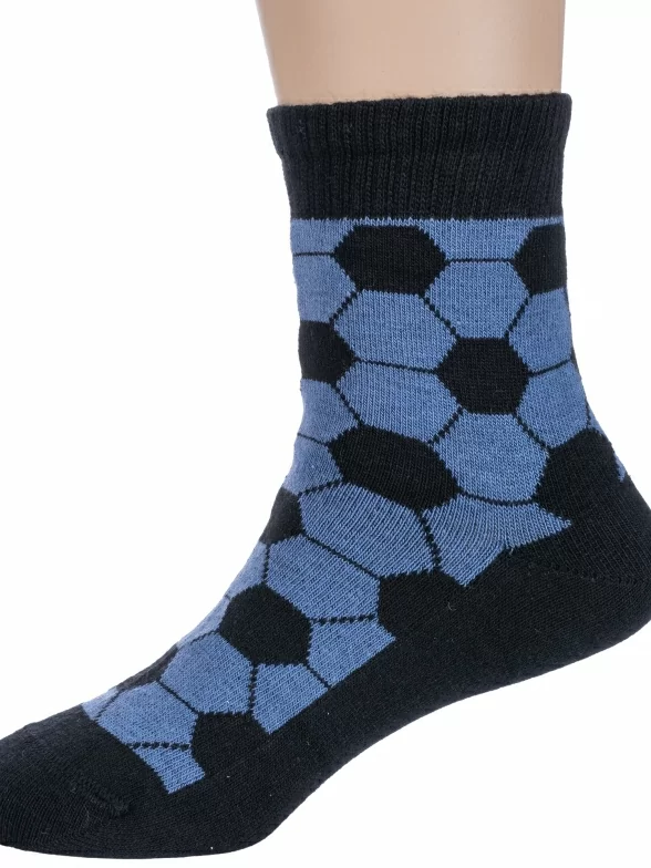 Круглогодичные укороченные детские носки, цвет джинс, повседневные, возможно бесшовные, принт (рисунок): спортивные, игры, с узором, состав: 69% хлопок, 17% полиамид, 10% полипропилен, 4% эластан, арт. С-545. Производитель «КРАСНАЯ ВЕТКА» Россия под брендом «Красная ветка».