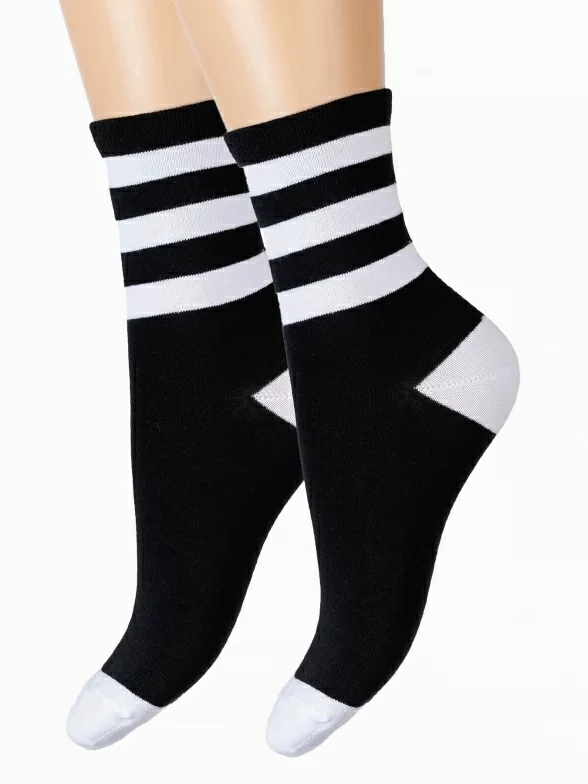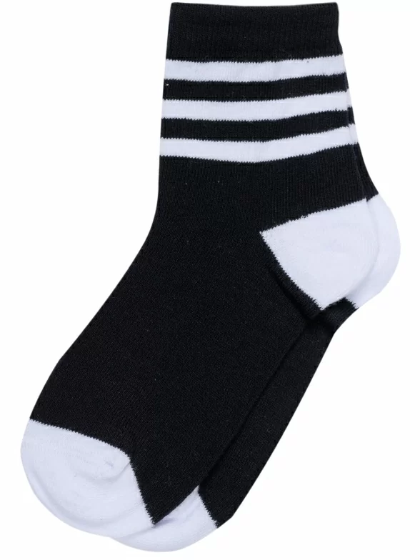 Круглогодичные укороченные детские носки, цвет черный, спортивные, классические, возможно бесшовные, принт (рисунок): спортивные, полоски, с узором, состав: 75% хлопок, 21% полиамид, 4% эластан, арт. С-1750. Производитель «КРАСНАЯ ВЕТКА» Россия под брендом «Красная ветка».