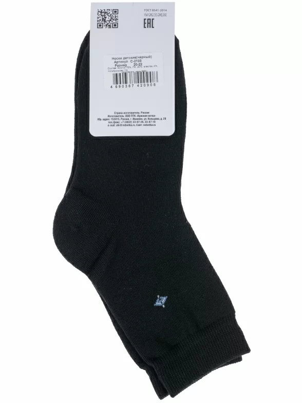 Круглогодичные укороченные детские носки, цвет черный, классические, возможно бесшовные, принт (рисунок): однотонный, небольшой рисунок, состав: 75% хлопок, 20% полиамид, 4% эластан, 1% полипропилен, арт. С-2103. Производитель «КРАСНАЯ ВЕТКА» Россия под брендом «Красная ветка».