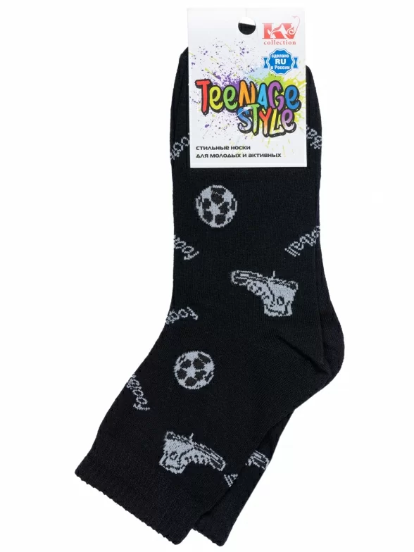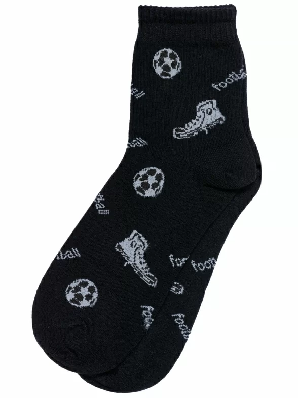 Круглогодичные укороченные детские носки, цвет черный, спортивные, повседневные, возможно бесшовные, принт (рисунок): спортивные, игры, с узором, состав: 74% хлопок, 21% полиамид, 5% эластан, арт. С-546. Производитель «КРАСНАЯ ВЕТКА» Россия под брендом «Красная ветка».