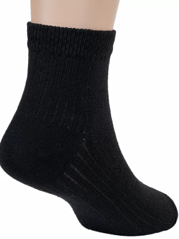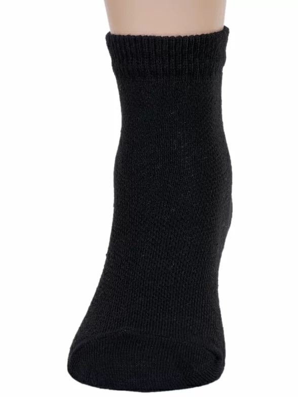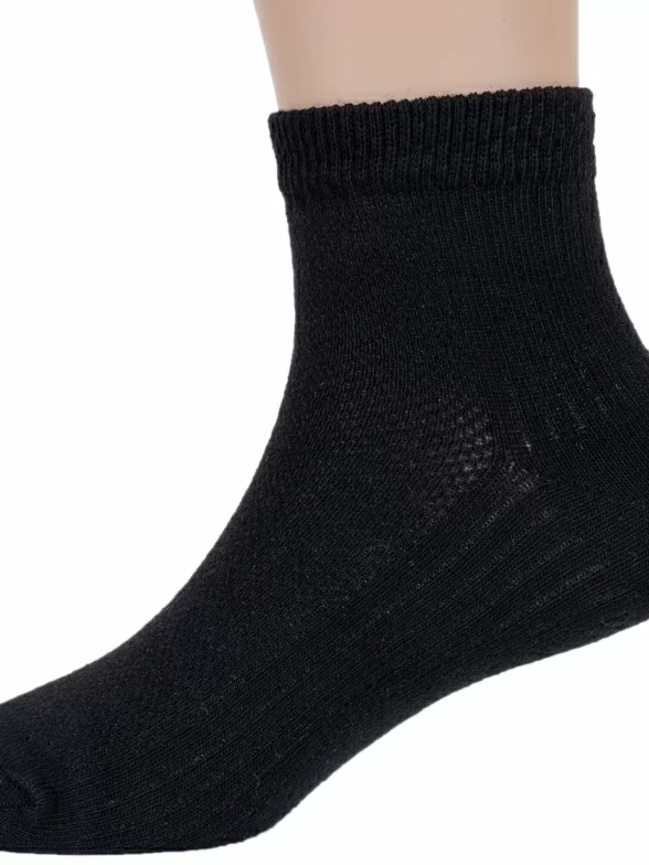 Летние укороченные детские носки, цвет черный, в сеточку, спортивные, классические, возможно бесшовные, принт (рисунок): спортивные, однотонный, состав: 69% хлопок, 24% полиамид, 7% эластан, арт. С-736. Производитель «КРАСНАЯ ВЕТКА» Россия под брендом «Красная ветка».