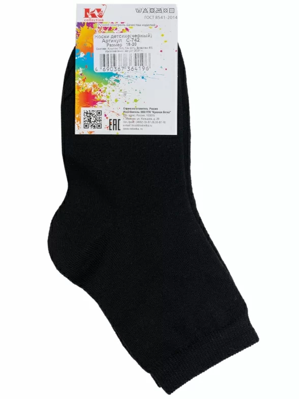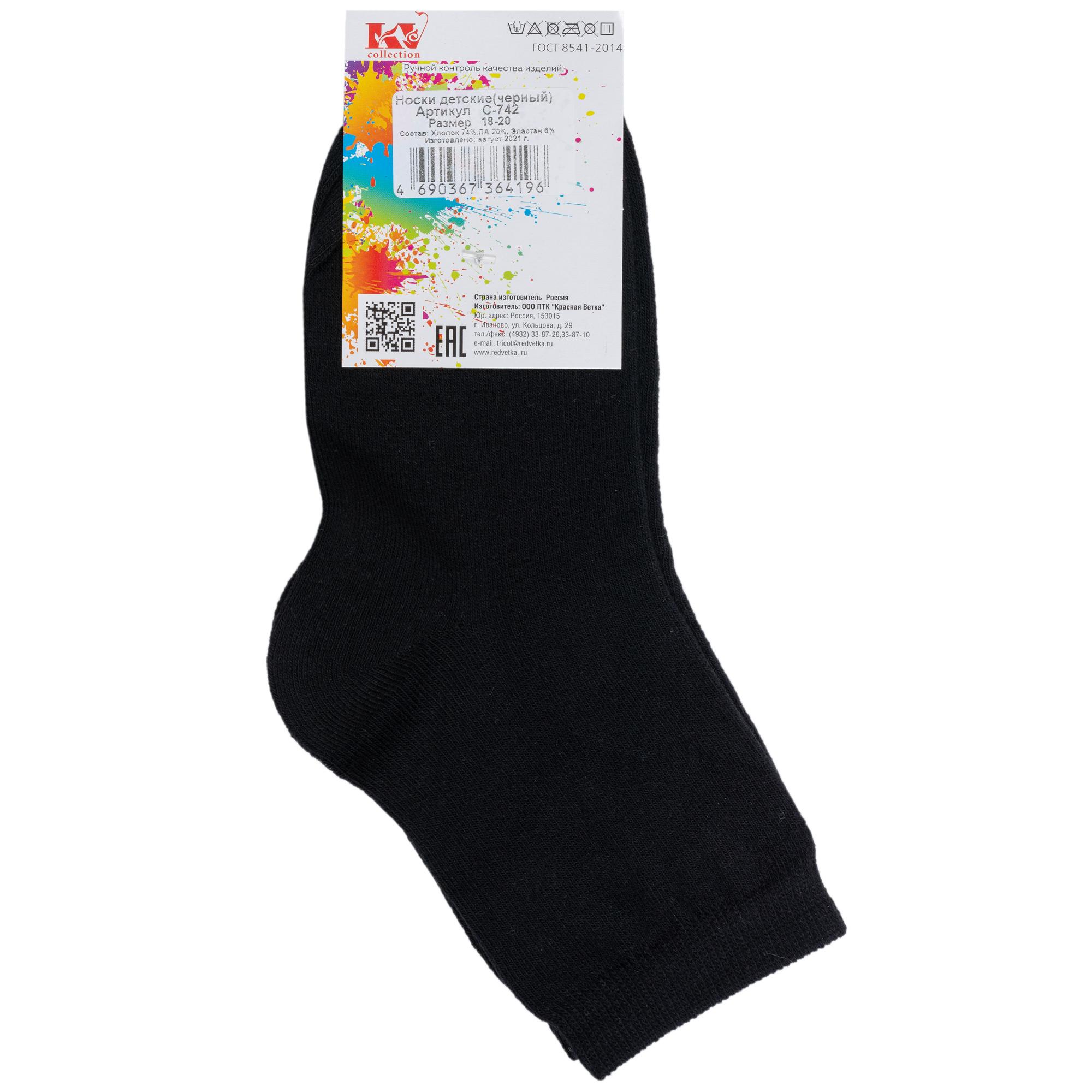 Круглогодичные укороченные детские носки, цвет черный, классические, возможно бесшовные, принт (рисунок): однотонный, без рисунков/узоров, состав: 74% хлопок, 20% полиамид, 6% эластан, арт. С-742. Производитель «КРАСНАЯ ВЕТКА» Россия под брендом «Красная ветка».