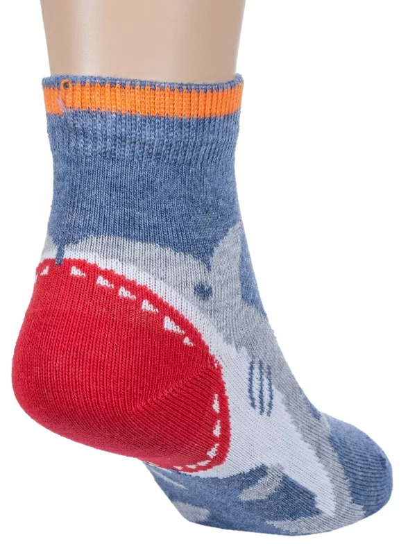 Круглогодичные укороченные детские носки, цвет джинс, повседневные, возможно бесшовные, принт (рисунок): контрастные пятка / мысок / резинка, хоррор / ужасы, животные, с узором, состав: 70% хлопок, 19% полиамид, 7% полипропилен, 4% эластан, арт. С-1728. Производитель «КРАСНАЯ ВЕТКА» Россия под брендом «Красная ветка».