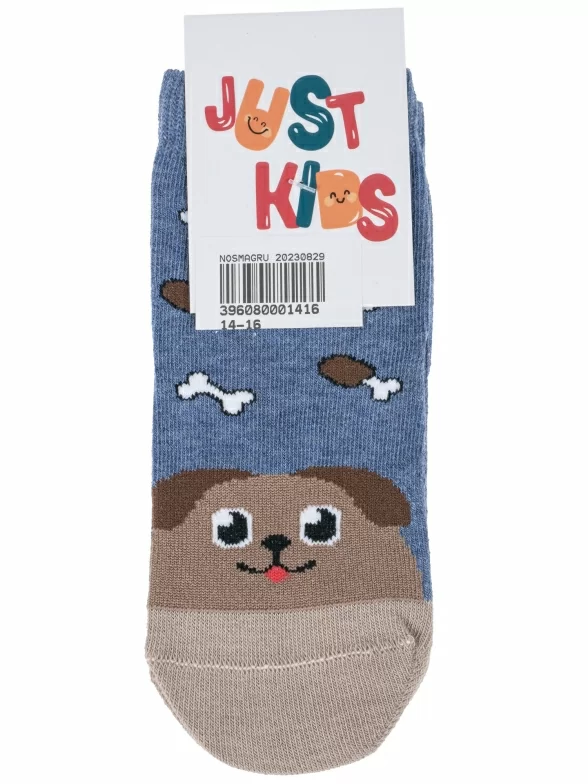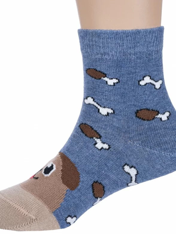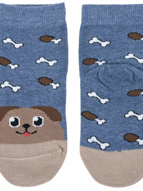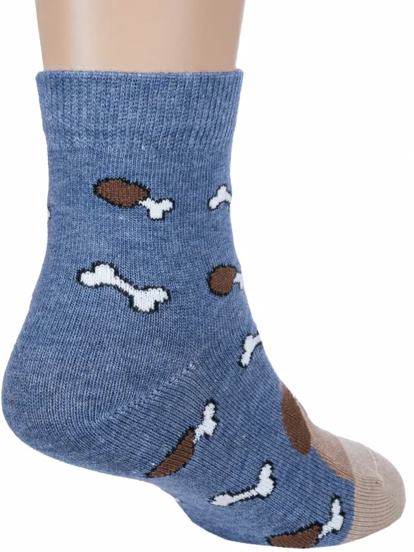 Круглогодичные укороченные детские носки, цвет джинс, повседневные, возможно бесшовные, принт (рисунок): контрастные пятка / мысок / резинка, животные, с узором, состав: 58% хлопок, 19% полиамид, 19% полипропилен, 4% эластан, арт. С-1783. Производитель «КРАСНАЯ ВЕТКА» Россия под брендом «Красная ветка».