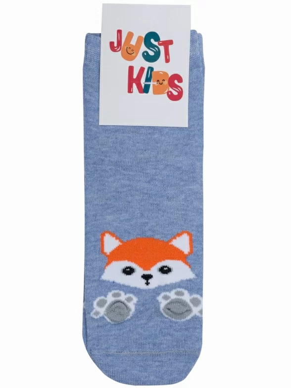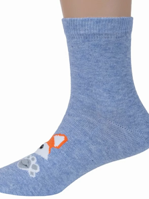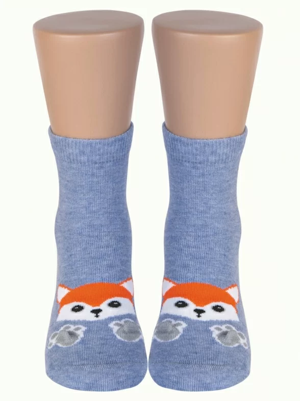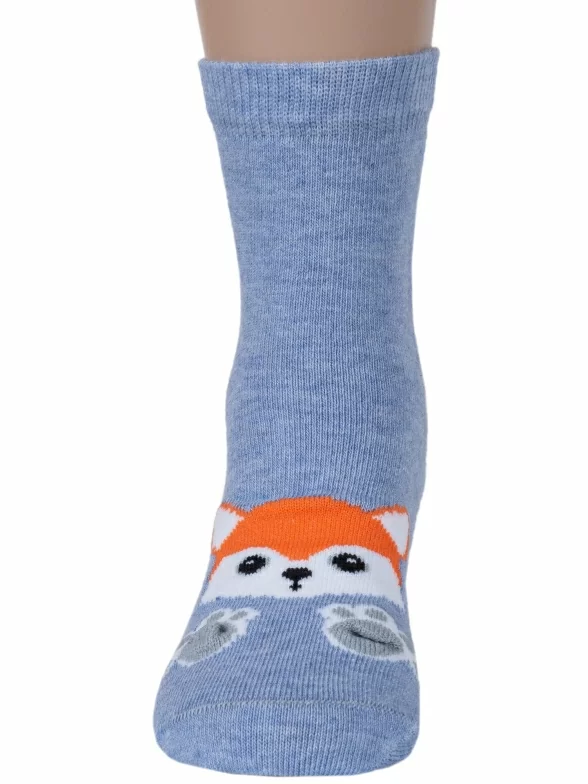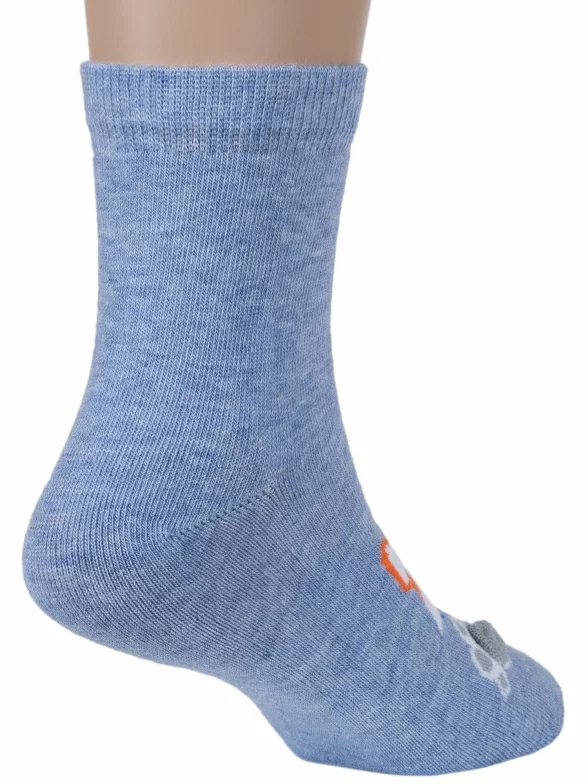 Круглогодичные укороченные детские носки, цвет синий-джинс, повседневные, возможно бесшовные, принт (рисунок): животные, с узором, состав: 65% хлопок, 20% полиамид, 11% полипропилен, 4% эластан, арт. С-2109. Производитель «КРАСНАЯ ВЕТКА» Россия под брендом «Красная ветка».