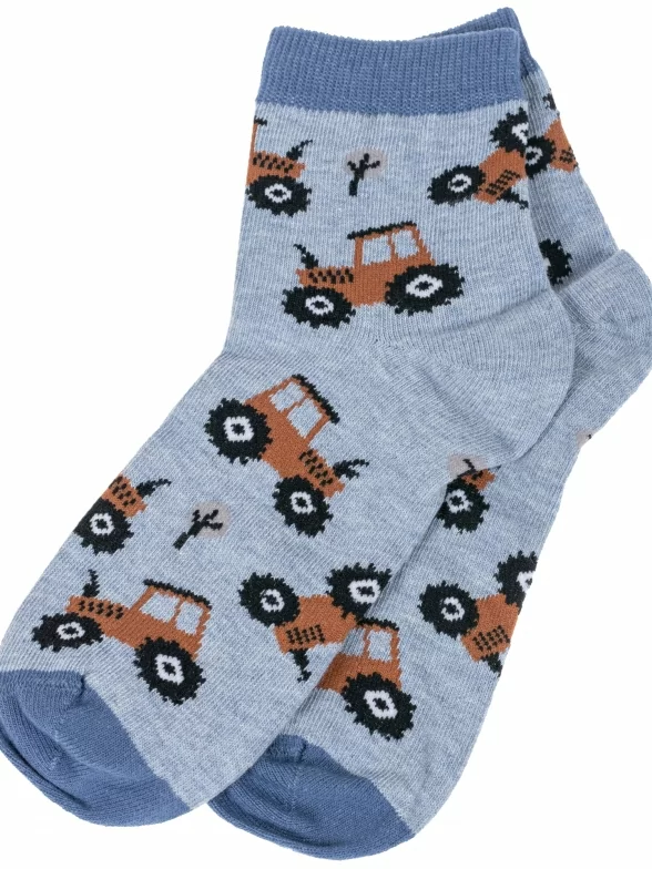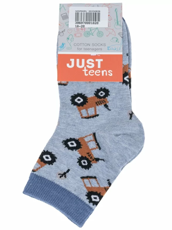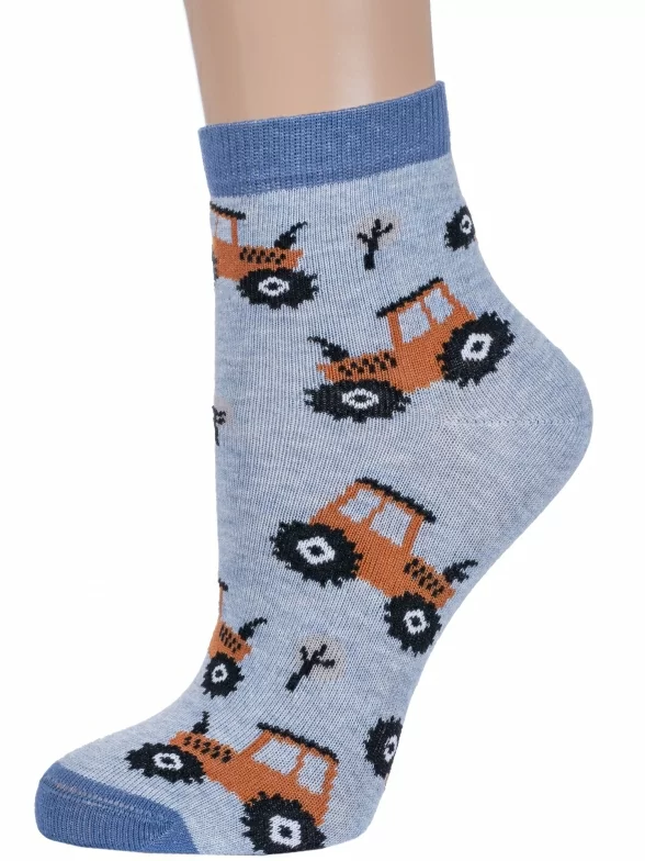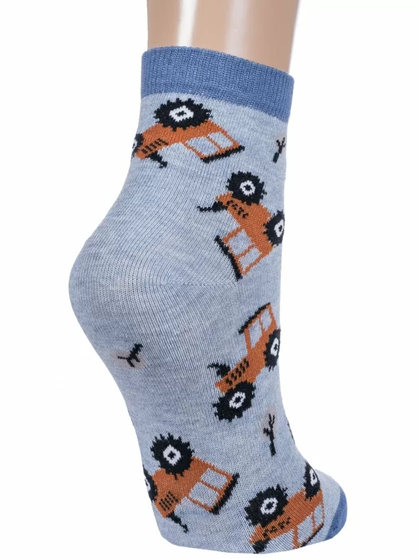 Круглогодичные укороченные детские носки, цвет джинс, повседневные, возможно бесшовные, принт (рисунок): транспорт, контрастные пятка / мысок / резинка, с узором, состав: 54% хлопок, 23% полипропилен, 19% полиамид, 4% эластан, арт. С-2151. Производитель «КРАСНАЯ ВЕТКА» Россия под брендом «Красная ветка».