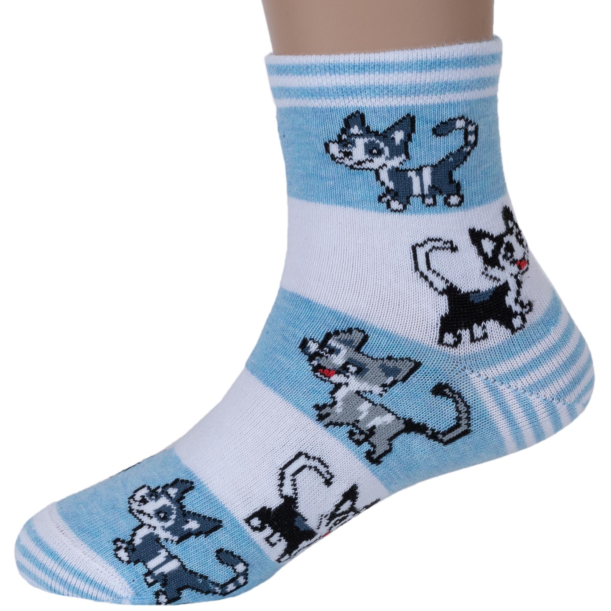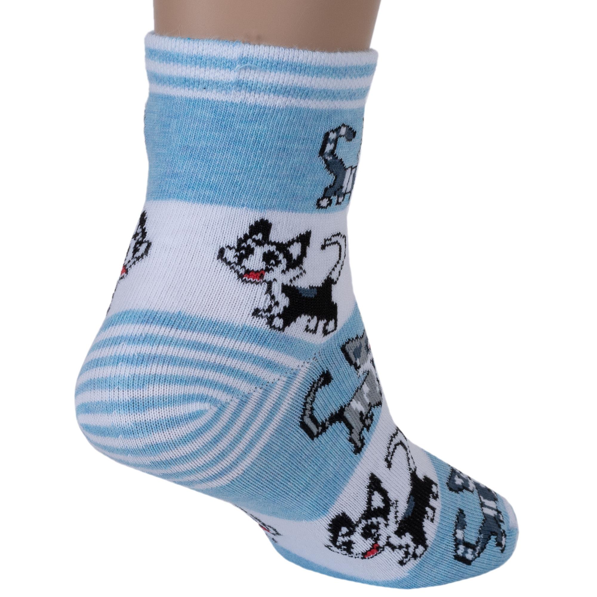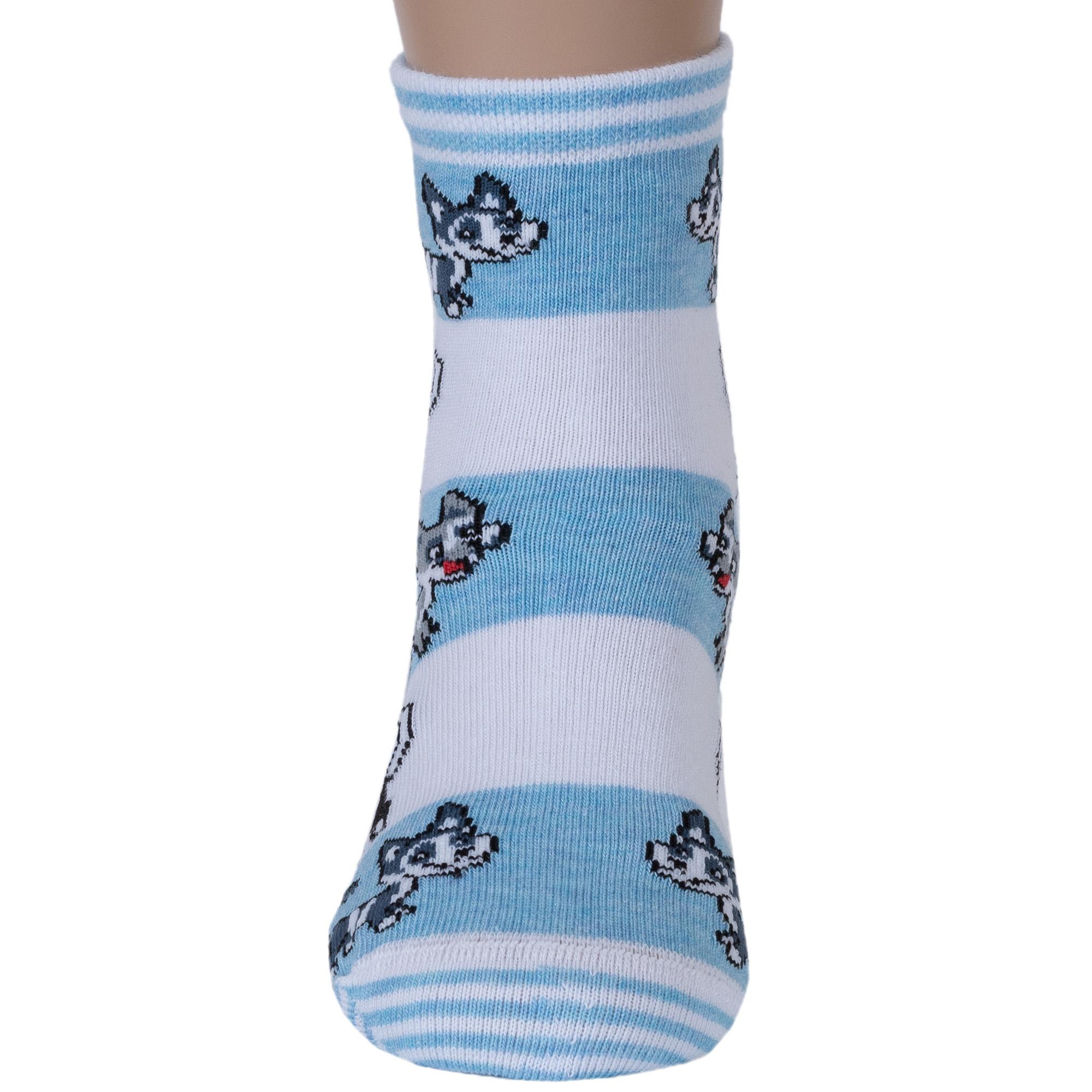Круглогодичные укороченные детские носки, цвет голубой, повседневные, возможно бесшовные, принт (рисунок): животные, с узором, крупные контрастные рисунки, состав: 73% хлопок, 22% полиамид, 5% эластан, арт. С-1702. Производитель «КРАСНАЯ ВЕТКА» Россия под брендом «Красная ветка».