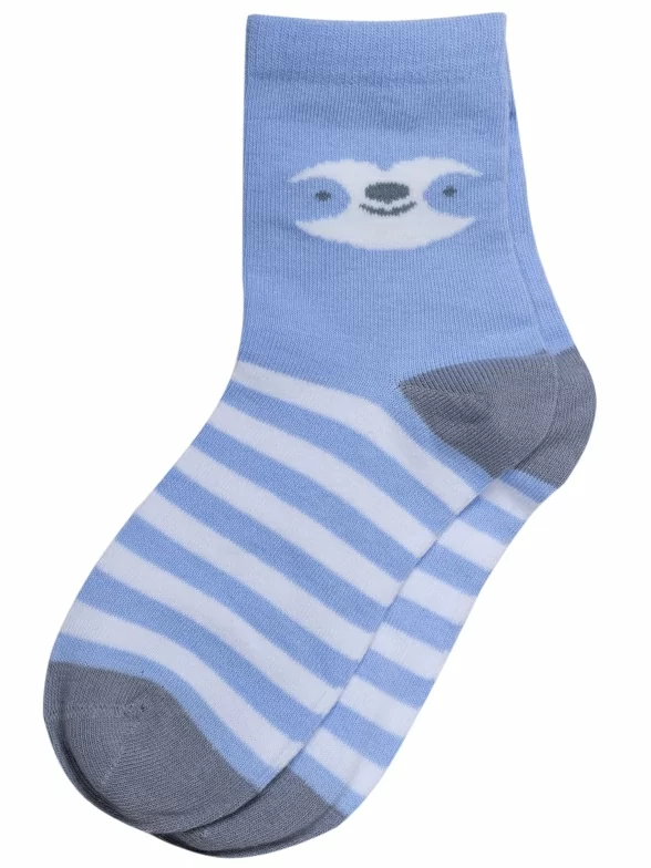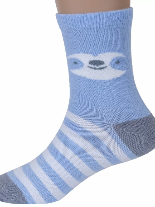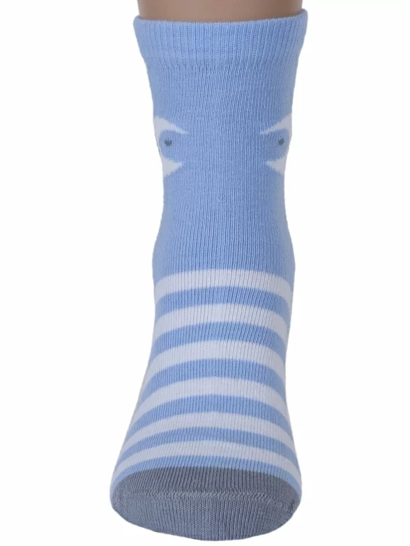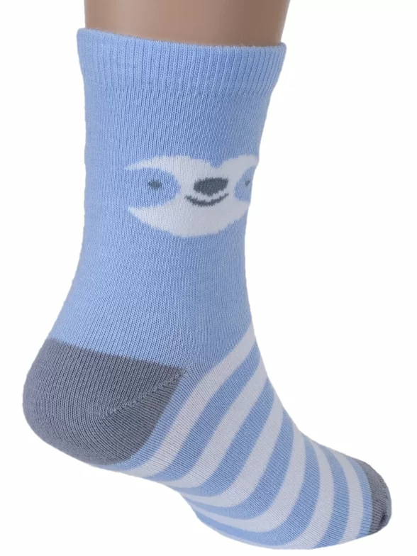 Круглогодичные укороченные детские носки, цвет голубой, повседневные, возможно бесшовные, принт (рисунок): крупные контрастные рисунки, с узором, животные, состав: 72% хлопок, 21% полиамид, 4% эластан, 3% полипропилен, арт. С-1762. Производитель «КРАСНАЯ ВЕТКА» Россия под брендом «Красная ветка».