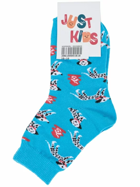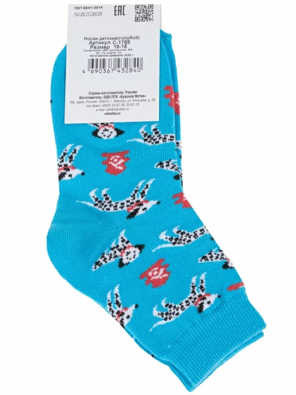 Круглогодичные укороченные детские носки, цвет голубой, повседневные, возможно бесшовные, принт (рисунок): животные, с узором, состав: 56% хлопок, 23% полипропилен, 17% полиамид, 4% эластан, арт. С-1788. Производитель «КРАСНАЯ ВЕТКА» Россия под брендом «Красная ветка».