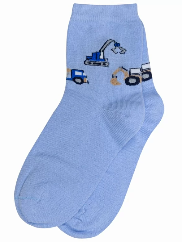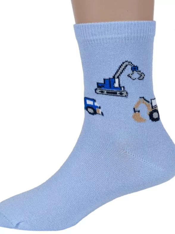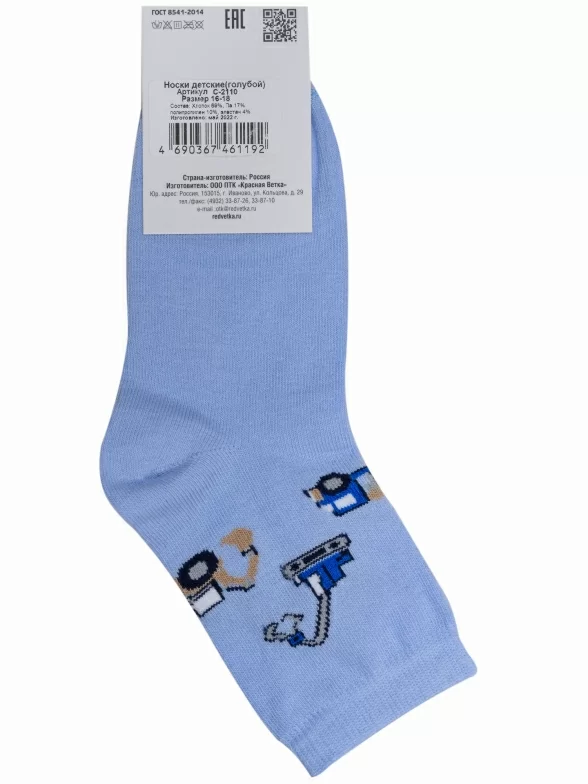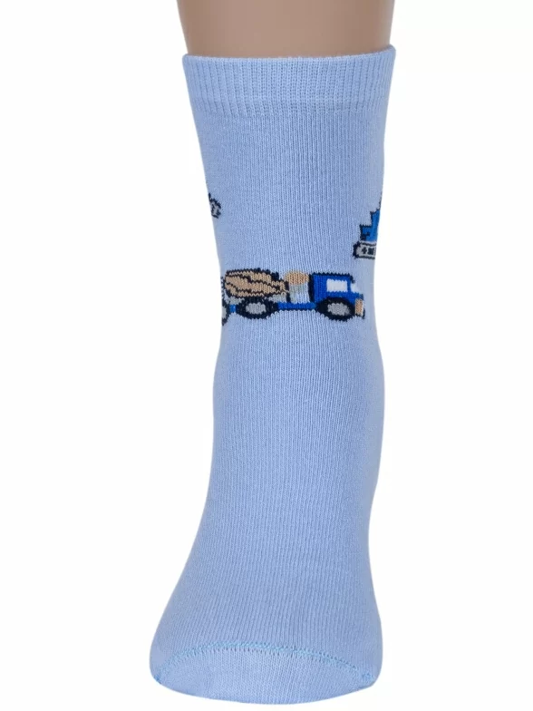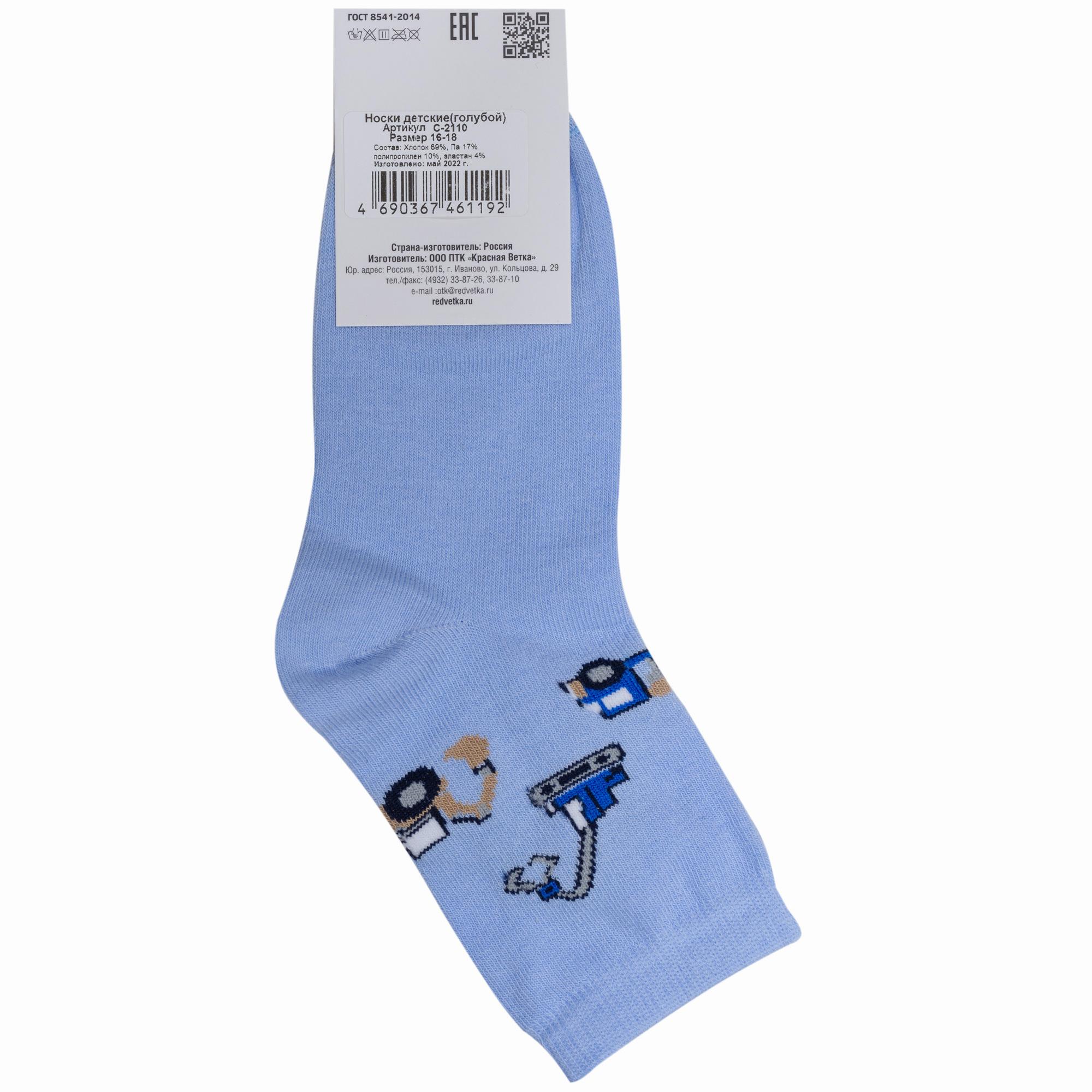 Круглогодичные укороченные детские носки, цвет голубой, повседневные, возможно бесшовные, принт (рисунок): транспорт, с узором, состав: 69% хлопок, 17% полиамид, 10% полипропилен, 4% эластан, арт. С-2110. Производитель «КРАСНАЯ ВЕТКА» Россия под брендом «Красная ветка».