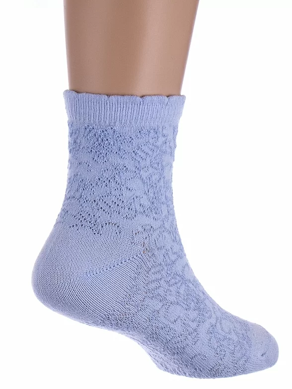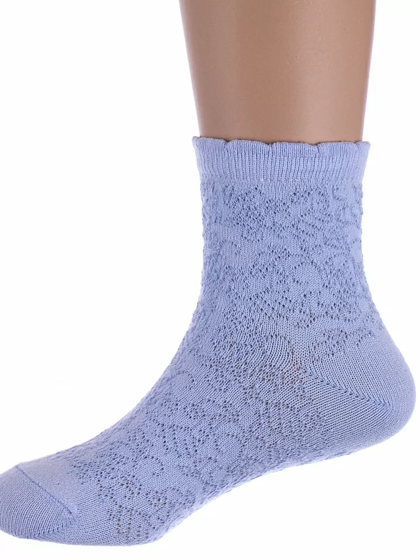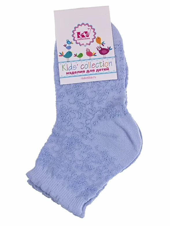 Летние укороченные детские носки, цвет голубой, ажурные, состав: 77% хлопок, 18% полиамид, 5% эластан, фабричный артикул С-520. Производитель «КРАСНАЯ ВЕТКА» Россия под брендом «Красная ветка».