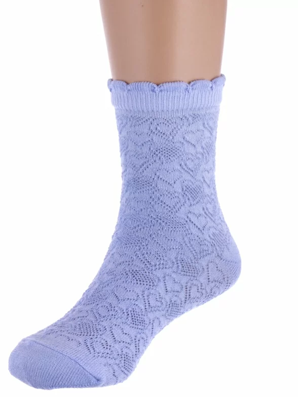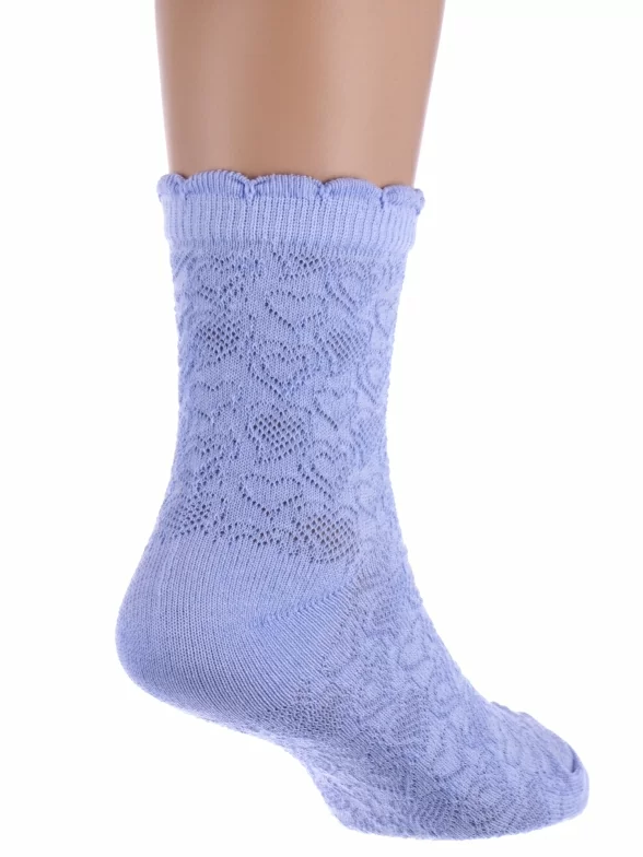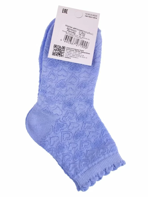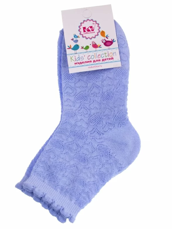 Летние укороченные детские носки, цвет голубой, ажурные, состав: 79% хлопок, 16% полиамид, 5% эластан, фабричный артикул С-524. Производитель «КРАСНАЯ ВЕТКА» Россия под брендом «Красная ветка».