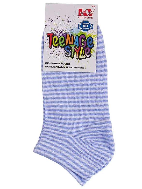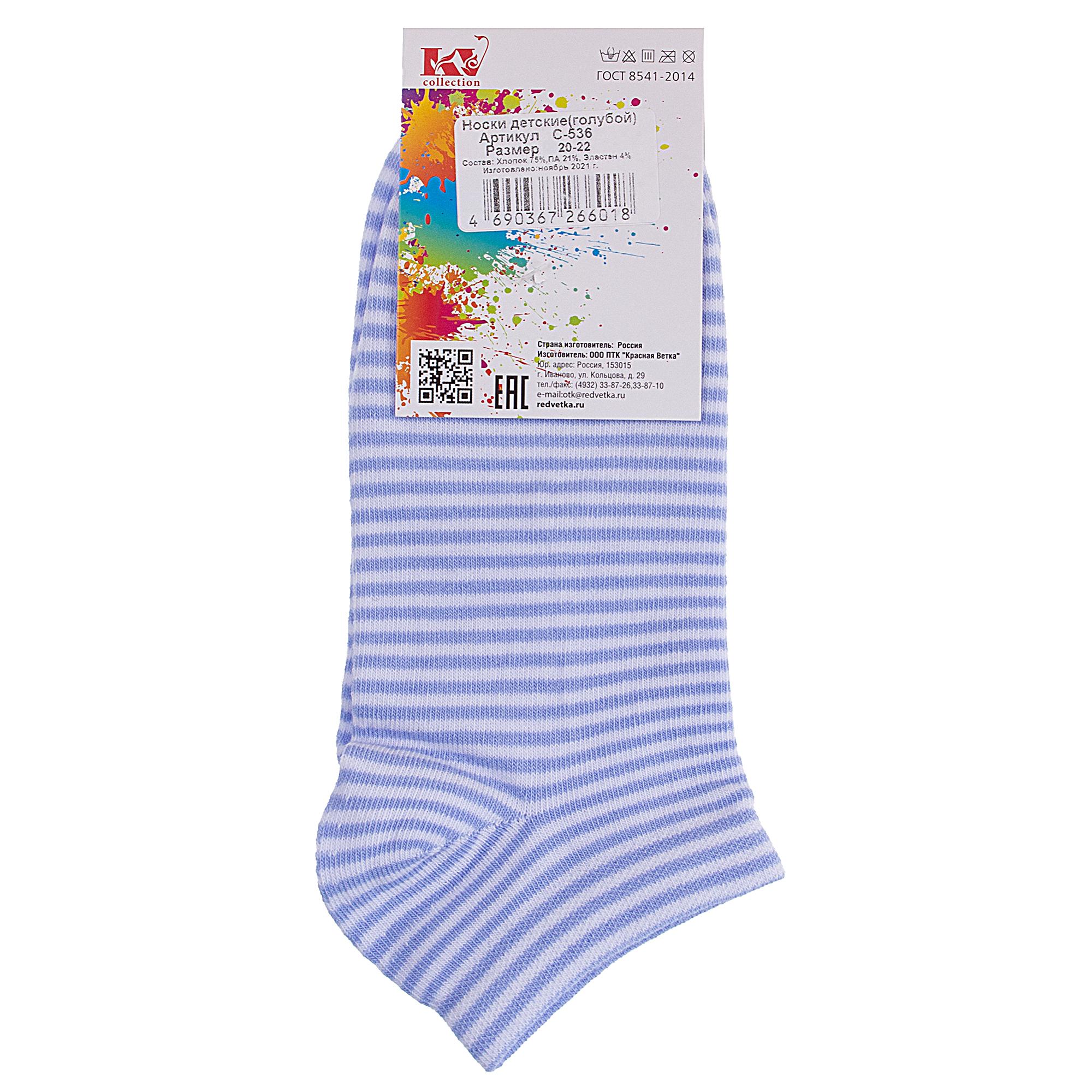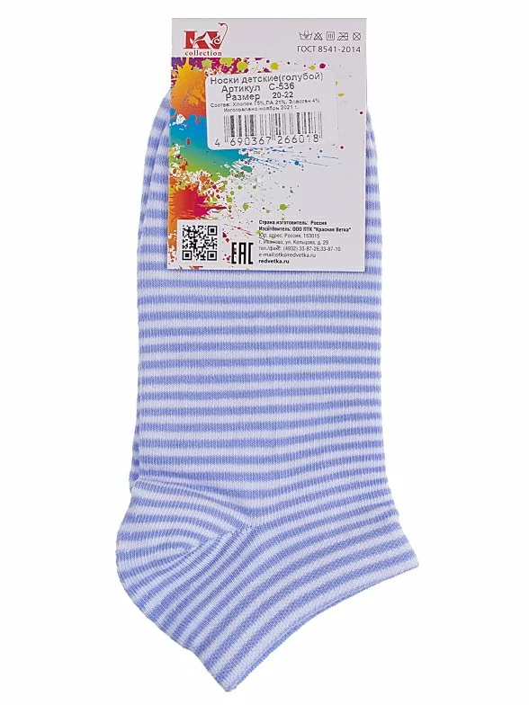 Межсезонные или летние короткие детские носки, цвет голубой-белый, прикольные, состав: 75% хлопок, 21% полиамид, 4% эластан, фабричный артикул С-536. Производитель «КРАСНАЯ ВЕТКА» Россия под брендом «Красная ветка».