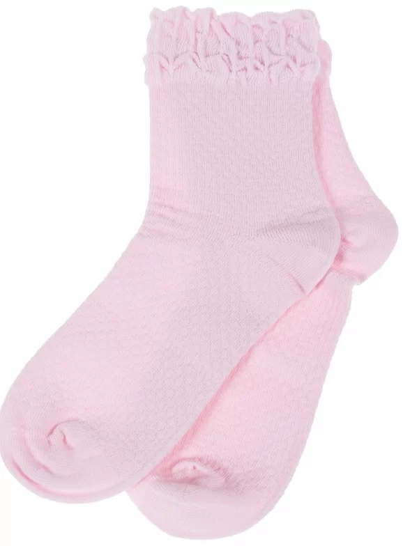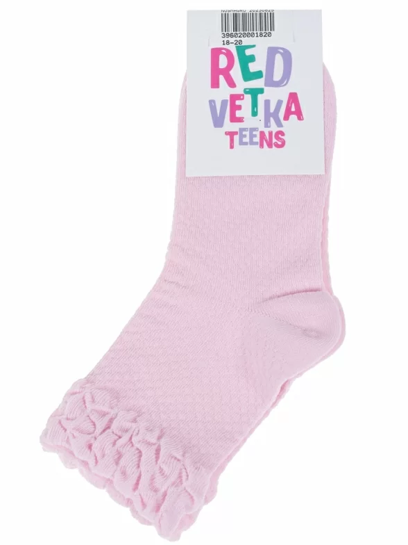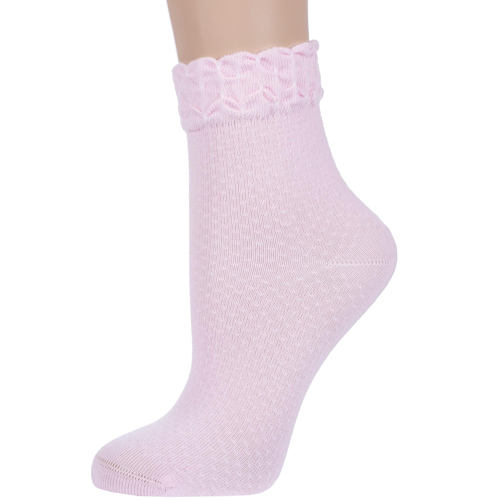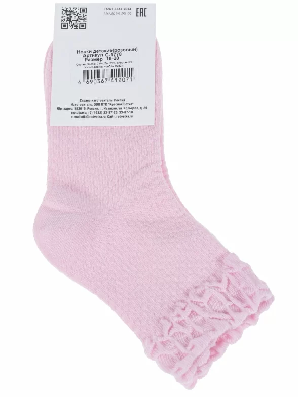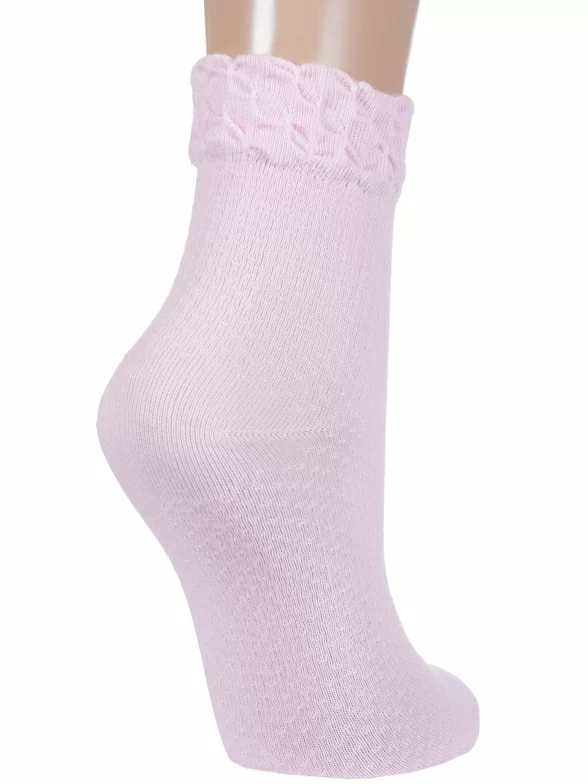 Круглогодичные укороченные детские носки, цвет розовый, с отворотом, ажурные, классические, возможно бесшовные, принт (рисунок): клетка, с узором, однотонный, состав: 74% хлопок, 21% полиамид, 5% эластан, арт. С-1778. Производитель «КРАСНАЯ ВЕТКА» Россия под брендом «Красная ветка».