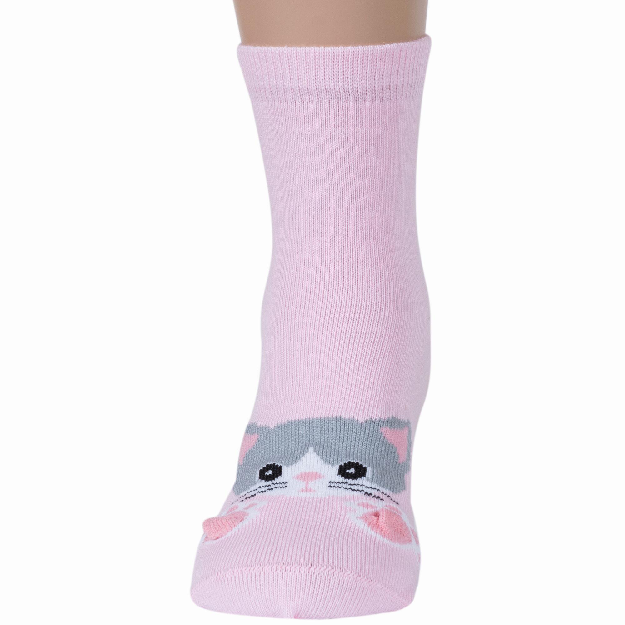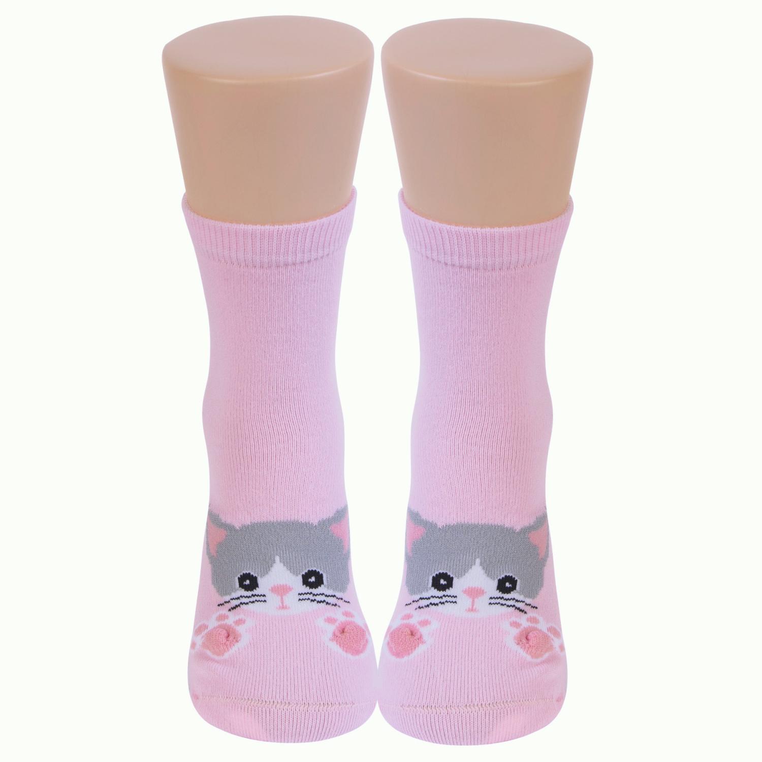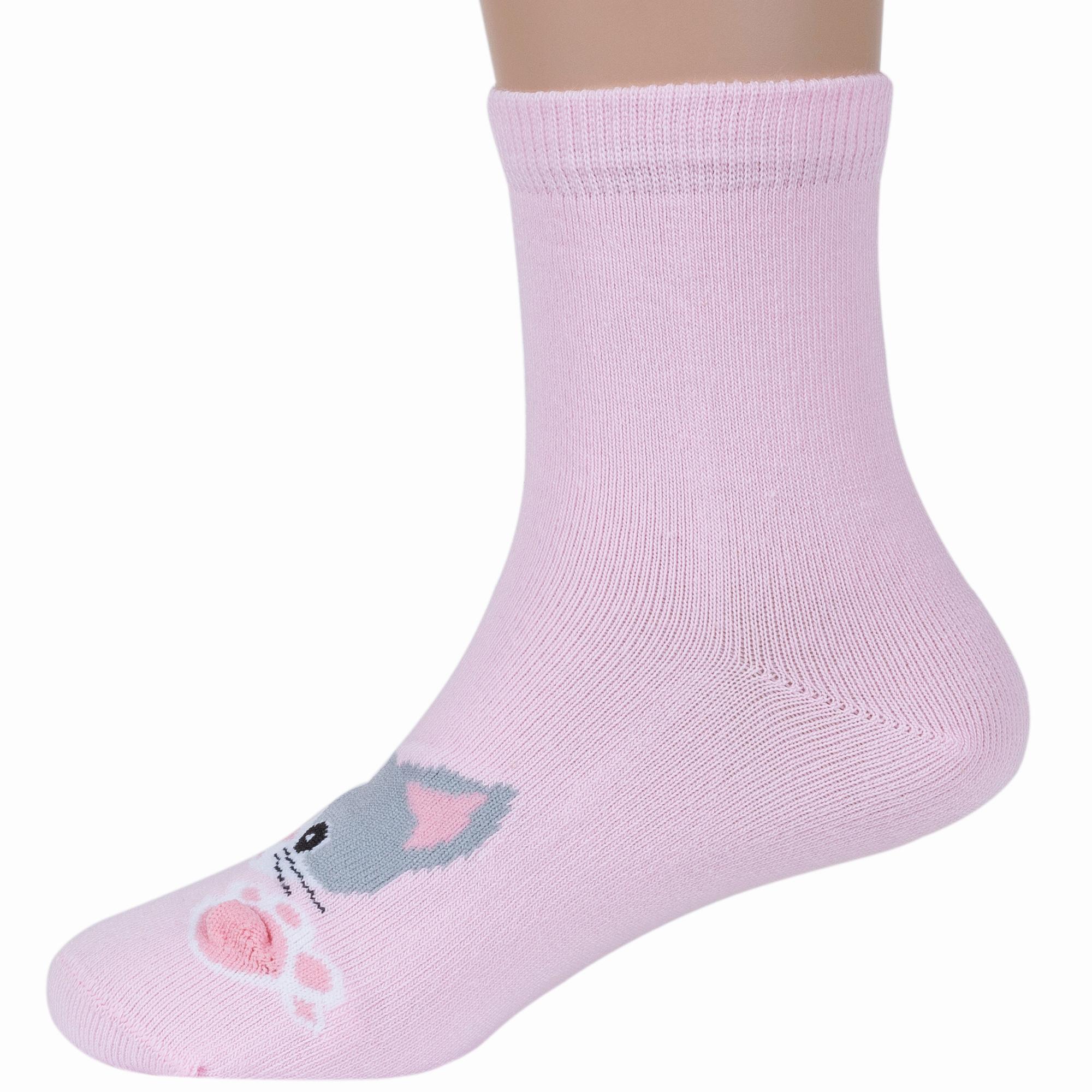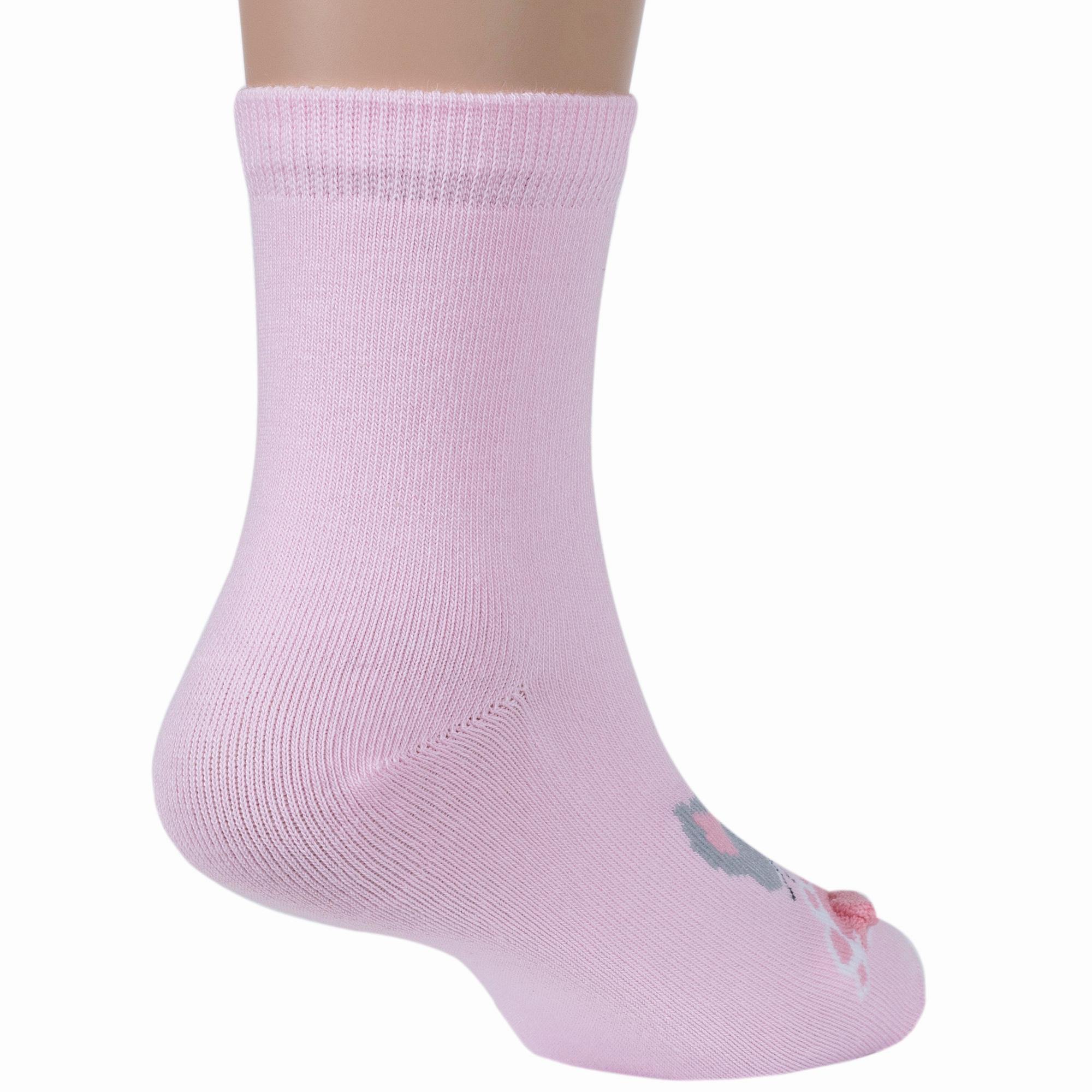 Круглогодичные укороченные детские носки, цвет розовый, повседневные, возможно бесшовные, принт (рисунок): животные, с узором, состав: 65% хлопок, 20% полиамид, 11% полипропилен, 4% эластан, арт. С-2106. Производитель «КРАСНАЯ ВЕТКА» Россия под брендом «Красная ветка».