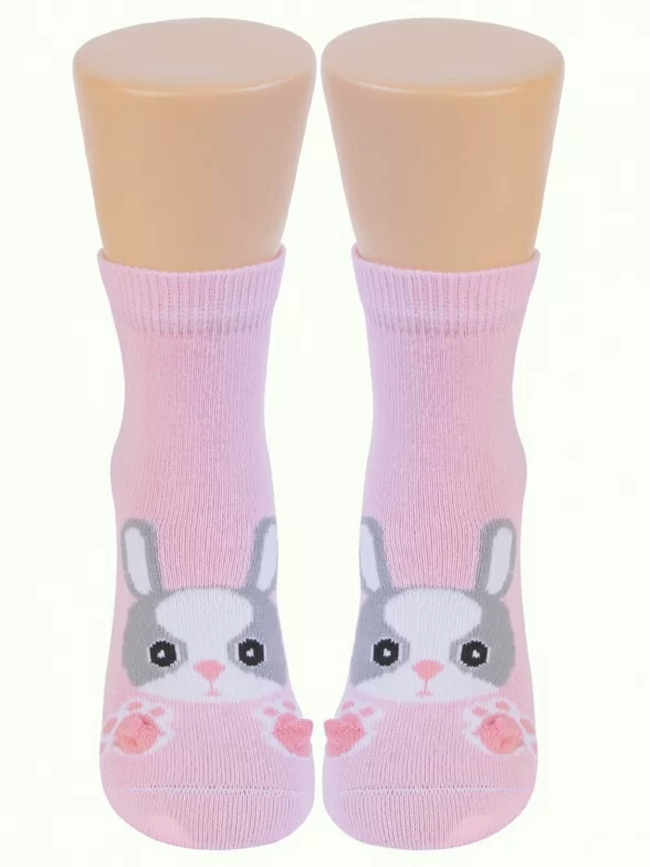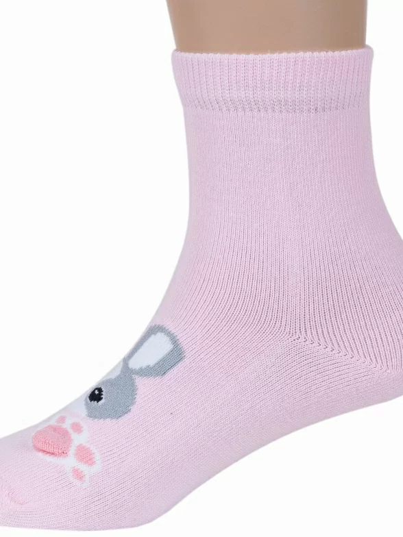 Круглогодичные укороченные детские носки, цвет розовый, повседневные, возможно бесшовные, принт (рисунок): животные, с узором, состав: 65% хлопок, 20% полиамид, 11% полипропилен, 4% эластан, арт. С-2107. Производитель «КРАСНАЯ ВЕТКА» Россия под брендом «Красная ветка».