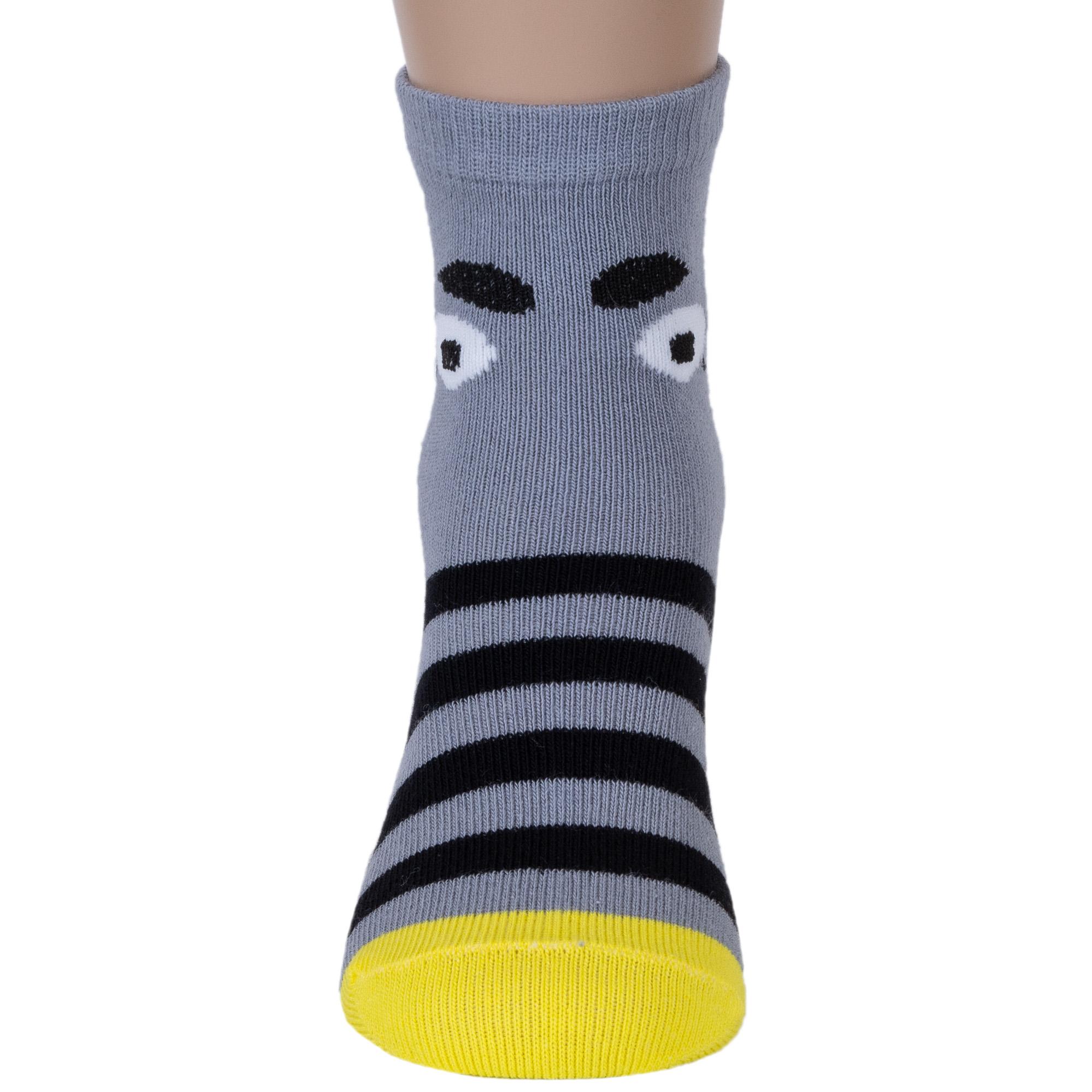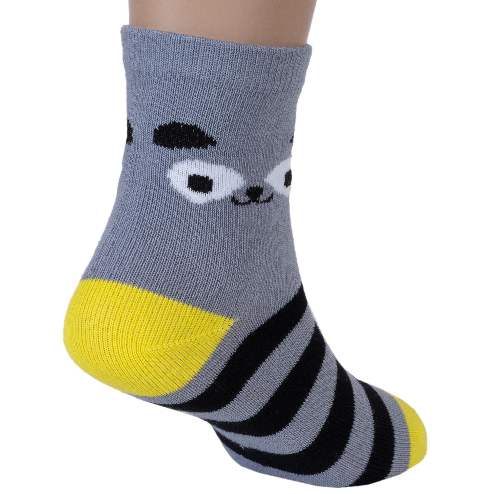 Круглогодичные укороченные детские носки, цвет серый, повседневные, возможно бесшовные, принт (рисунок): крупные контрастные рисунки, с узором, животные, состав: 72% хлопок, 21% полиамид, 4% эластан, 3% полипропилен, арт. С-1762. Производитель «КРАСНАЯ ВЕТКА» Россия под брендом «Красная ветка».