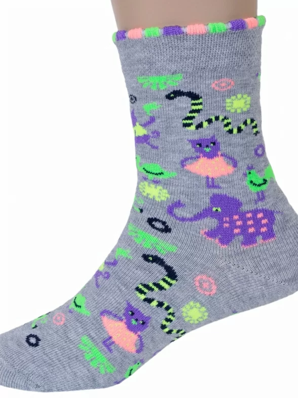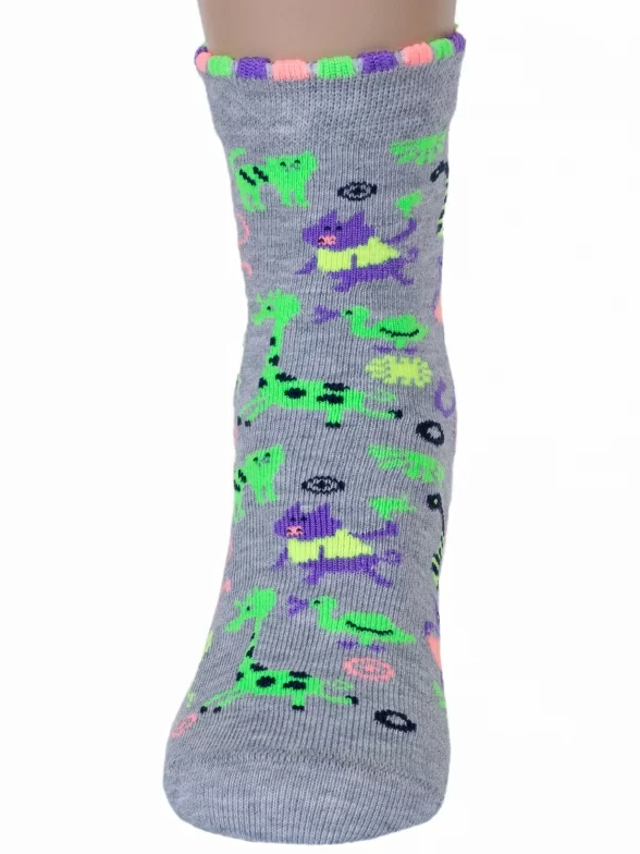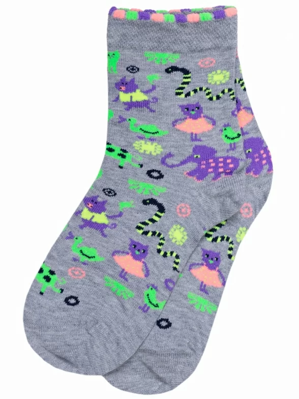 Круглогодичные укороченные детские носки, цвет серый, повседневные, возможно бесшовные, принт (рисунок): животные, с узором, крупные контрастные рисунки, состав: 70% хлопок, 24% полиамид, 6% эластан, арт. С-1701. Производитель «КРАСНАЯ ВЕТКА» Россия под брендом «Красная ветка».