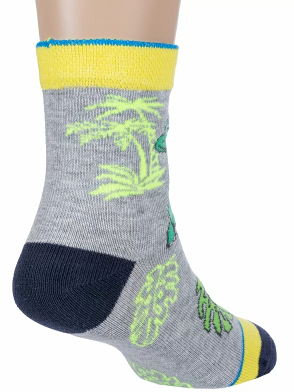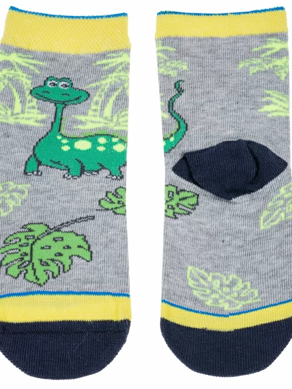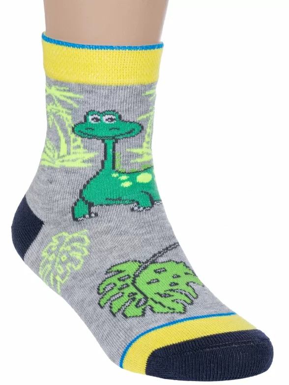 Круглогодичные укороченные детские носки, цвет серый, повседневные, возможно бесшовные, принт (рисунок): цветы / растения, контрастные пятка / мысок / резинка, животные, с узором, состав: 57% хлопок, 20% полиамид, 18% полипропилен, 5% эластан, арт. С-1703. Производитель «КРАСНАЯ ВЕТКА» Россия под брендом «Красная ветка».