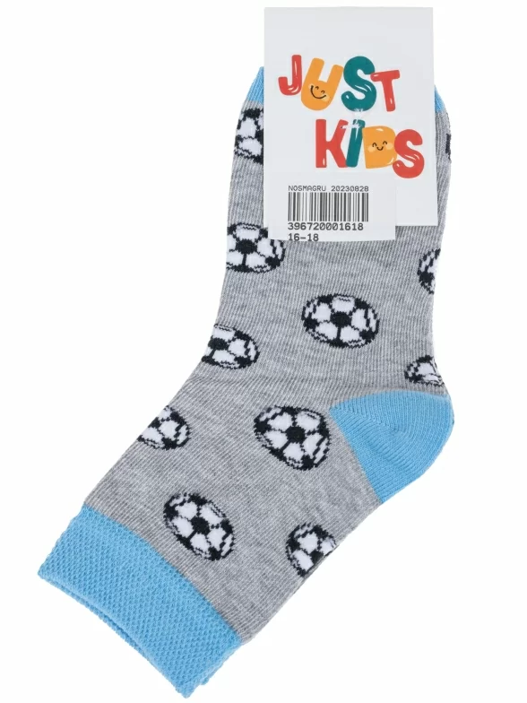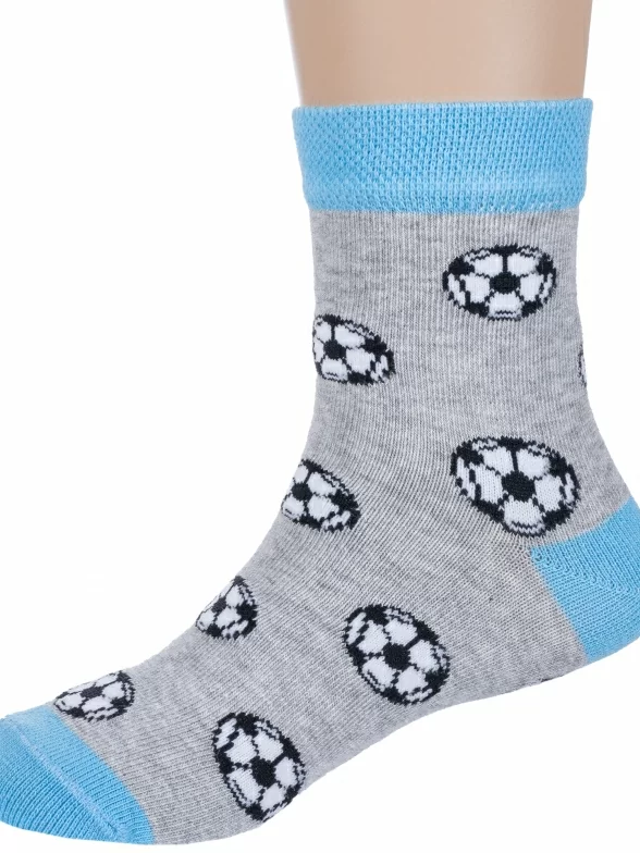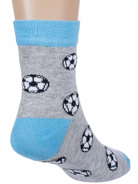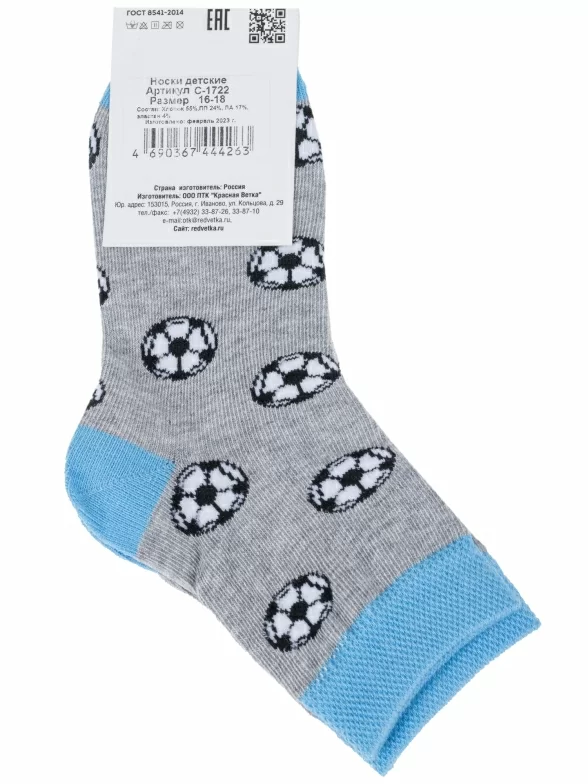 Круглогодичные укороченные детские носки, цвет серый, повседневные, возможно бесшовные, принт (рисунок): игры, спортивные, контрастные пятка / мысок / резинка, с узором, состав: 55% хлопок, 24% полипропилен, 17% полиамид, 4% эластан, арт. С-1722. Производитель «КРАСНАЯ ВЕТКА» Россия под брендом «Красная ветка».