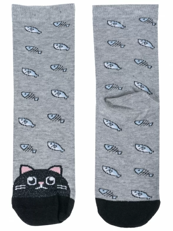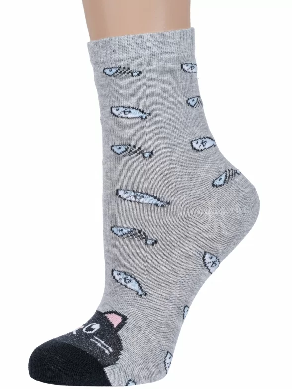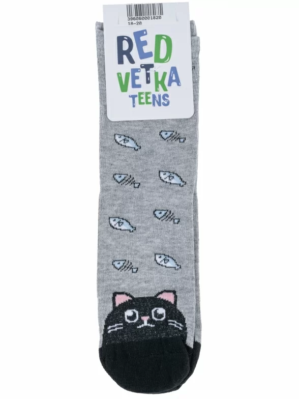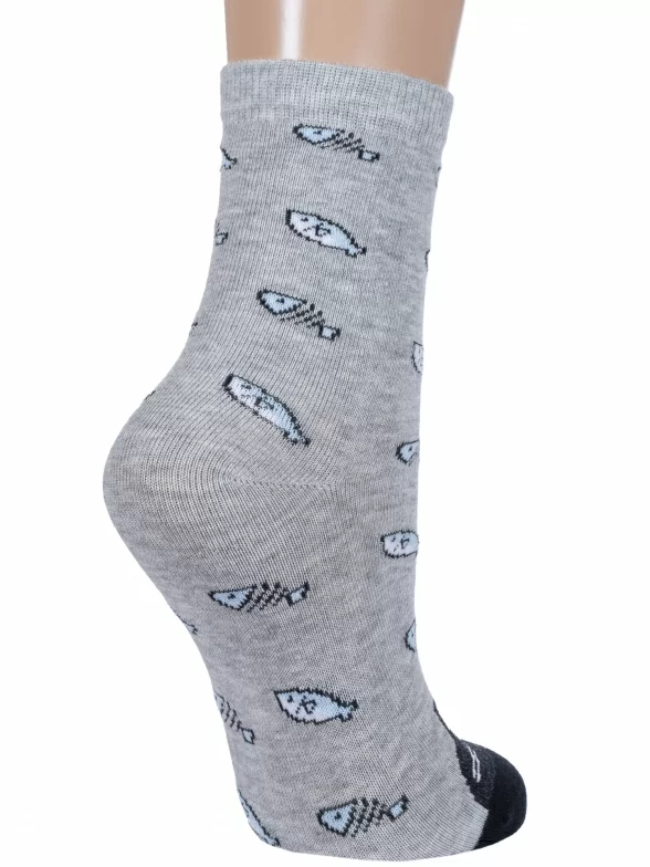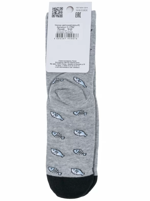 Круглогодичные укороченные детские носки, цвет серый, повседневные, возможно бесшовные, принт (рисунок): контрастные пятка / мысок / резинка, животные, с узором, состав: 60% хлопок, 19% полиамид, 17% полипропилен, 4% эластан, арт. С-1782. Производитель «КРАСНАЯ ВЕТКА» Россия под брендом «Красная ветка».