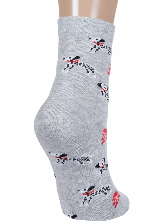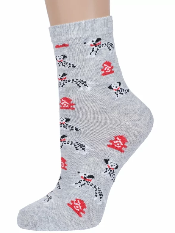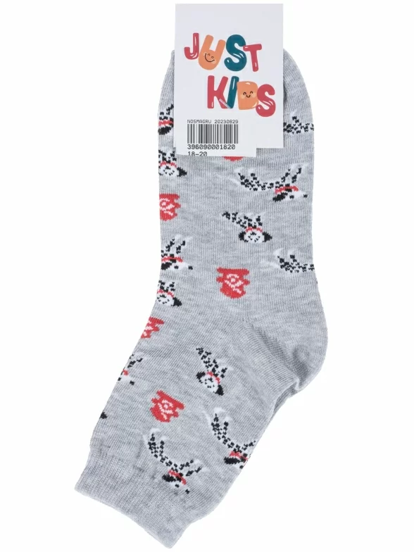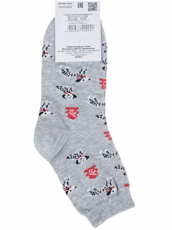 Круглогодичные укороченные детские носки, цвет серый, повседневные, возможно бесшовные, принт (рисунок): животные, с узором, состав: 56% хлопок, 23% полипропилен, 17% полиамид, 4% эластан, арт. С-1788. Производитель «КРАСНАЯ ВЕТКА» Россия под брендом «Красная ветка».