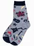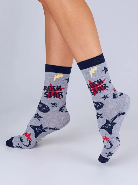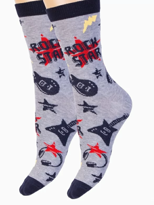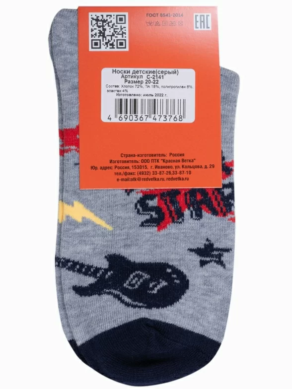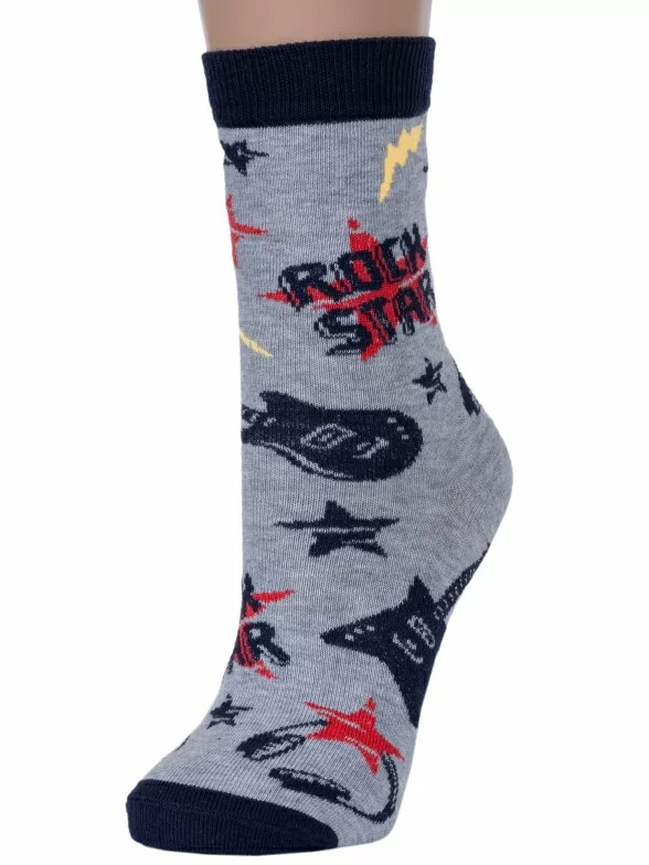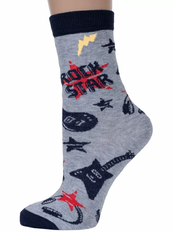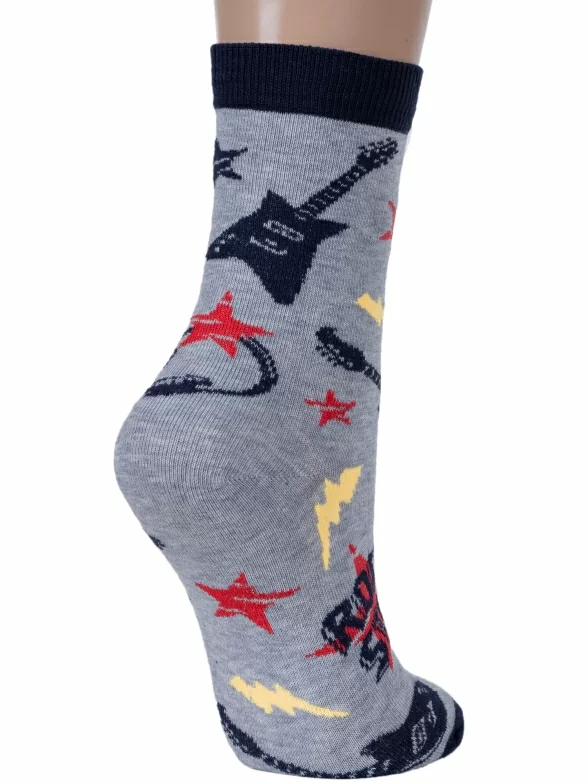 Круглогодичные средней длины детские носки, цвет серый, повседневные, возможно бесшовные, принт (рисунок): музыка, с узором, состав: 72% хлопок, 18% полиамид, 6% полипропилен, 4% эластан, арт. С-2141. Производитель «КРАСНАЯ ВЕТКА» Россия под брендом «Красная ветка».