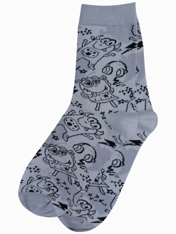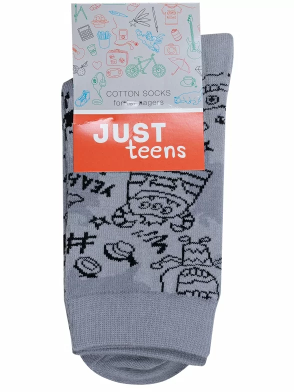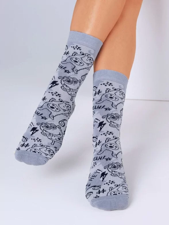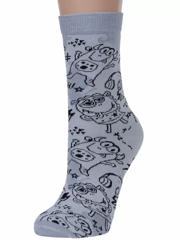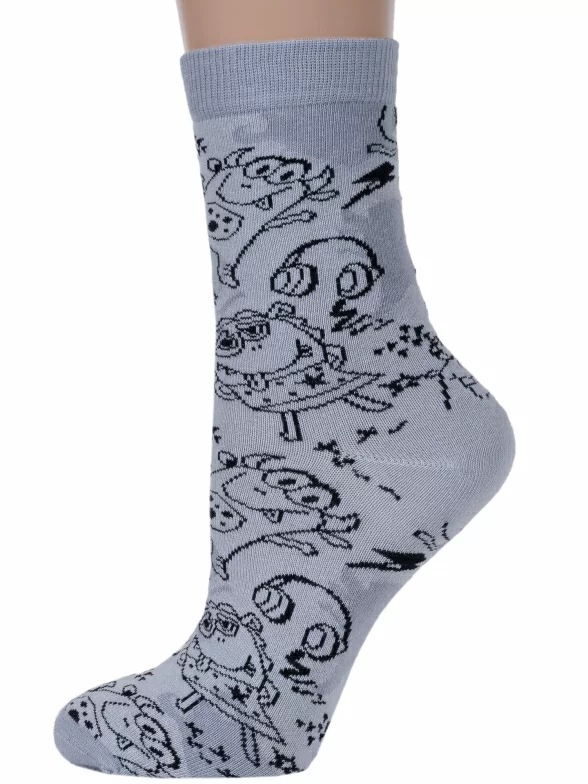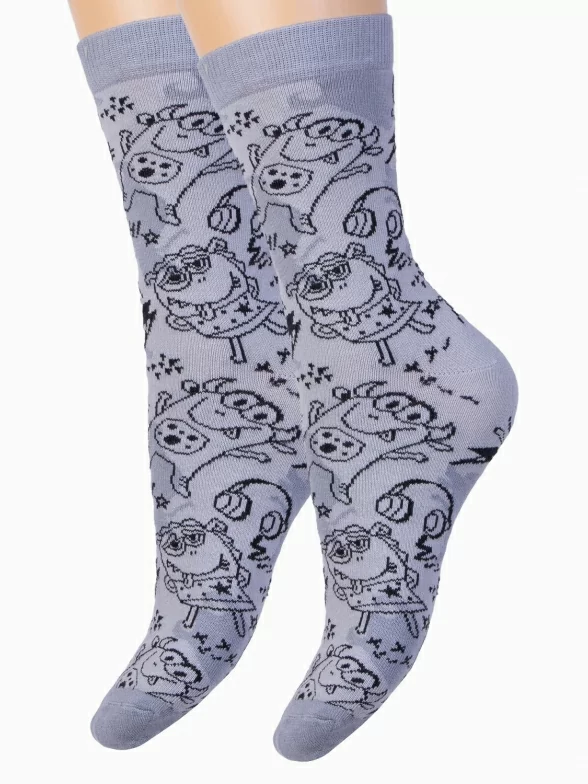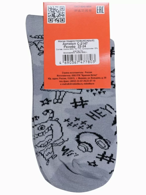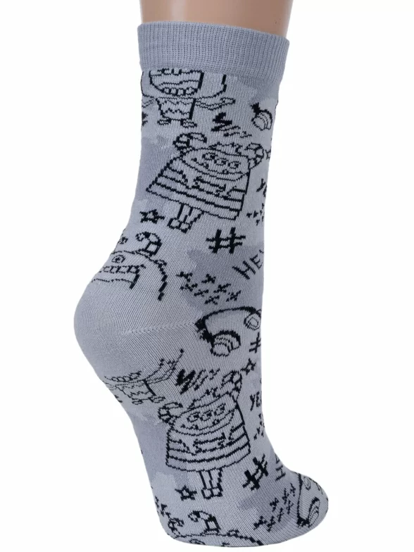 Круглогодичные средней длины детские носки, цвет серый, повседневные, возможно бесшовные, принт (рисунок): хоррор / ужасы, музыка, с узором, состав: 64% хлопок, 17% полиамид, 15% полипропилен, 4% эластан, арт. С-2147. Производитель «КРАСНАЯ ВЕТКА» Россия под брендом «Красная ветка».