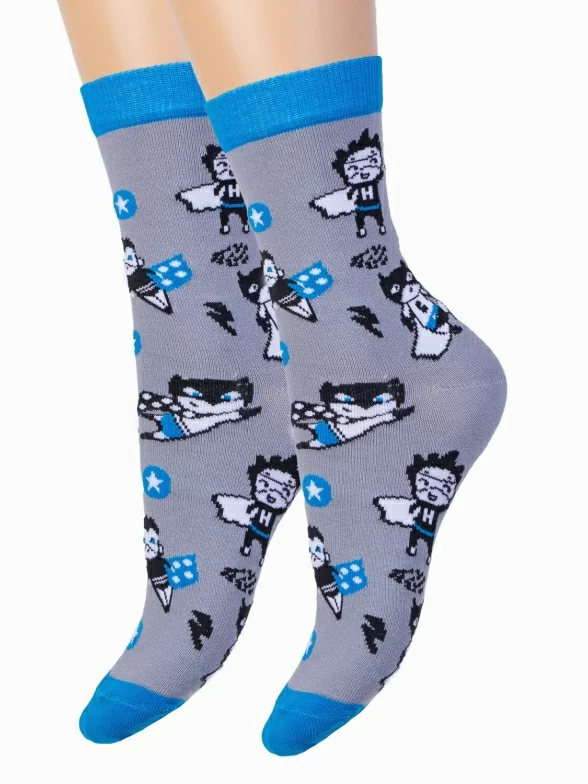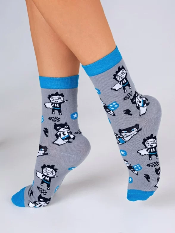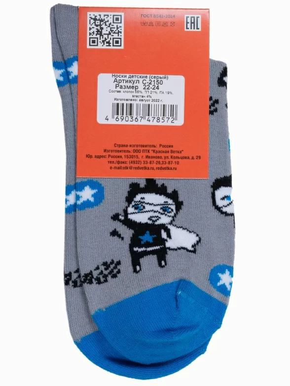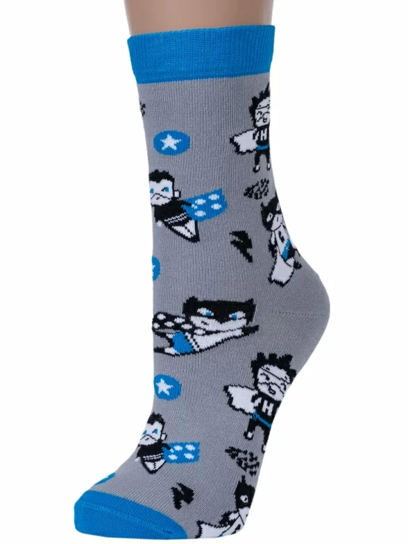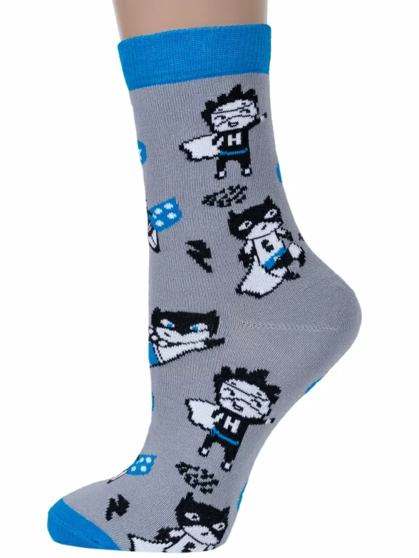 Круглогодичные средней длины детские носки, цвет серый, повседневные, возможно бесшовные, принт (рисунок): фильмы / сериалы / мультики, люди, с узором, состав: 56% хлопок, 21% полипропилен, 19% полиамид, 4% эластан, арт. С-2150. Производитель «КРАСНАЯ ВЕТКА» Россия под брендом «Красная ветка».