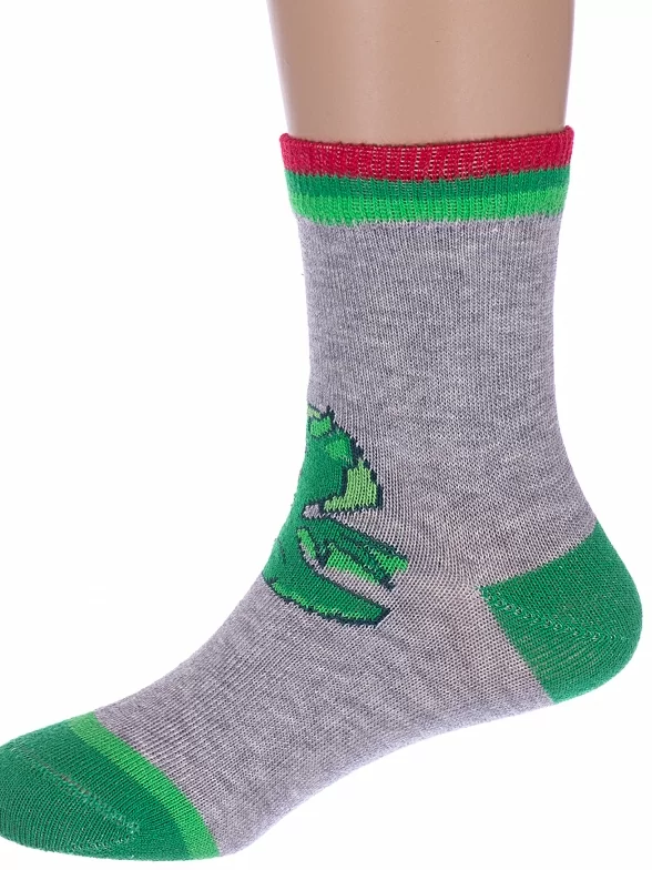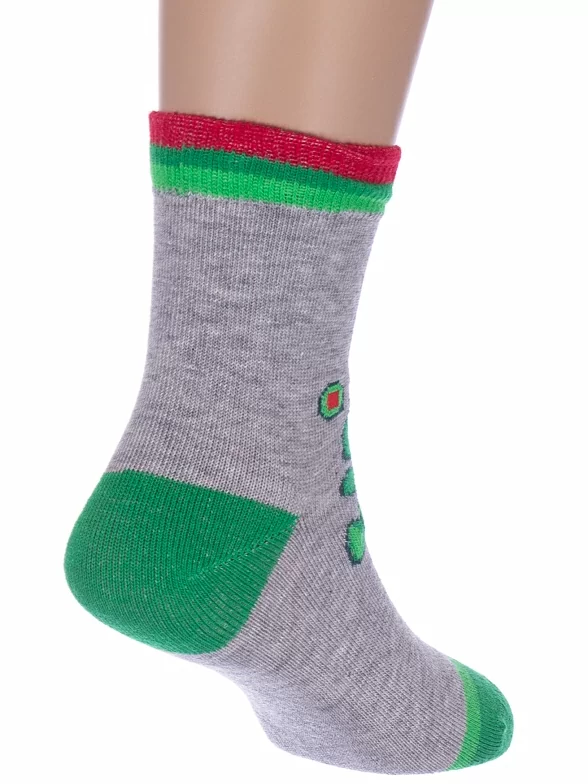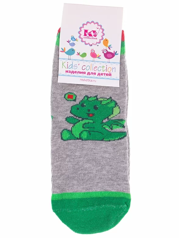 Круглогодичные укороченные детские носки, цвет серый, с принтом, состав: 73% хлопок, 21% полиамид, 4% эластан, 2% полипропилен, арт. С-2164. Производитель «КРАСНАЯ ВЕТКА» Россия под брендом «Красная ветка».