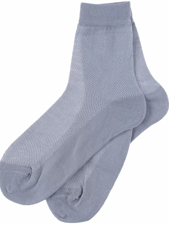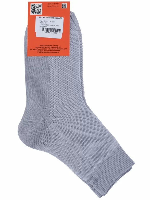Летние укороченные детские носки, цвет серый, в сеточку, классические, шов обычный (не бесшовные), принт (рисунок): однотонный, состав: 63% хлопок, 37% полиамид, арт. С-535. Производитель «КРАСНАЯ ВЕТКА» Россия под брендом «Красная ветка».