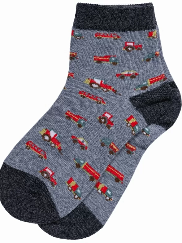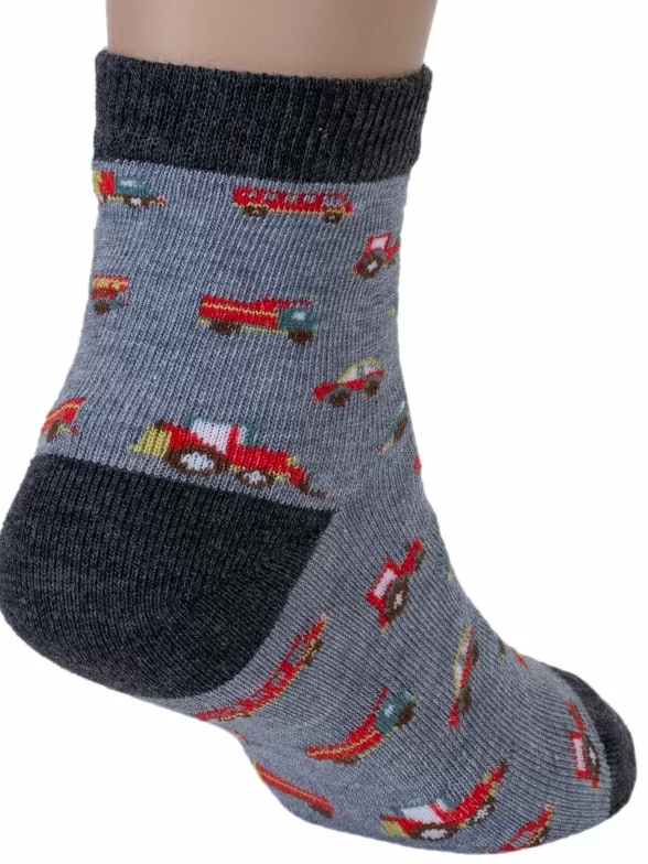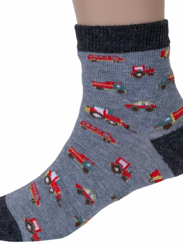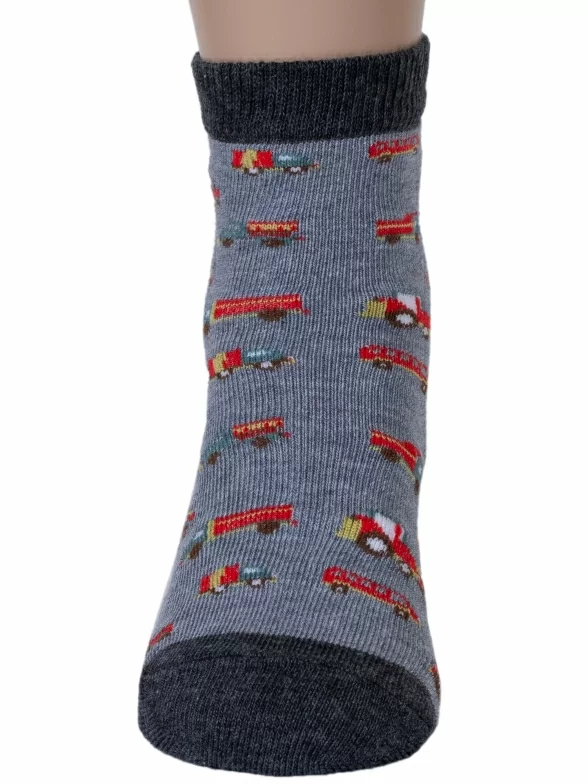 Круглогодичные укороченные детские носки, цвет серый, повседневные, возможно бесшовные, принт (рисунок): транспорт, с узором, состав: 71% хлопок, 23% полиамид, 6% эластан, арт. С-573. Производитель «КРАСНАЯ ВЕТКА» Россия под брендом «Красная ветка».