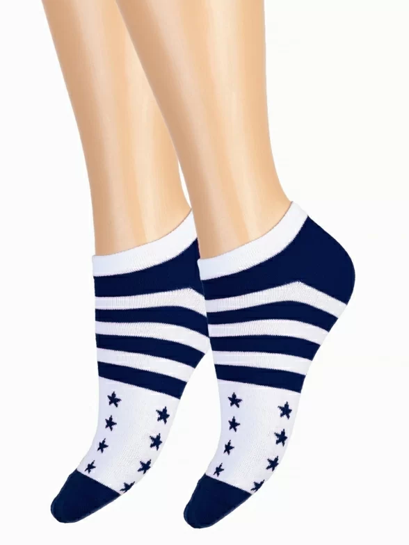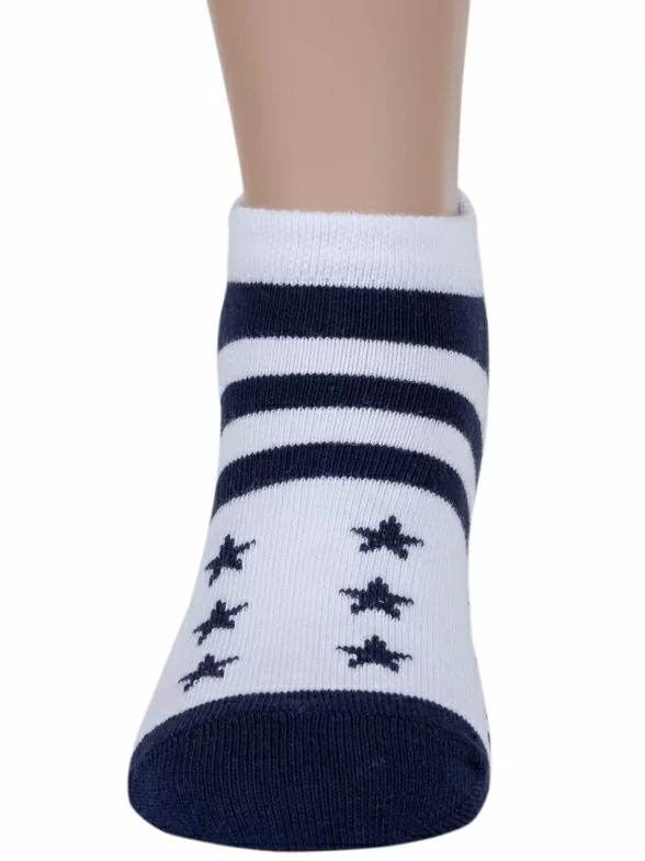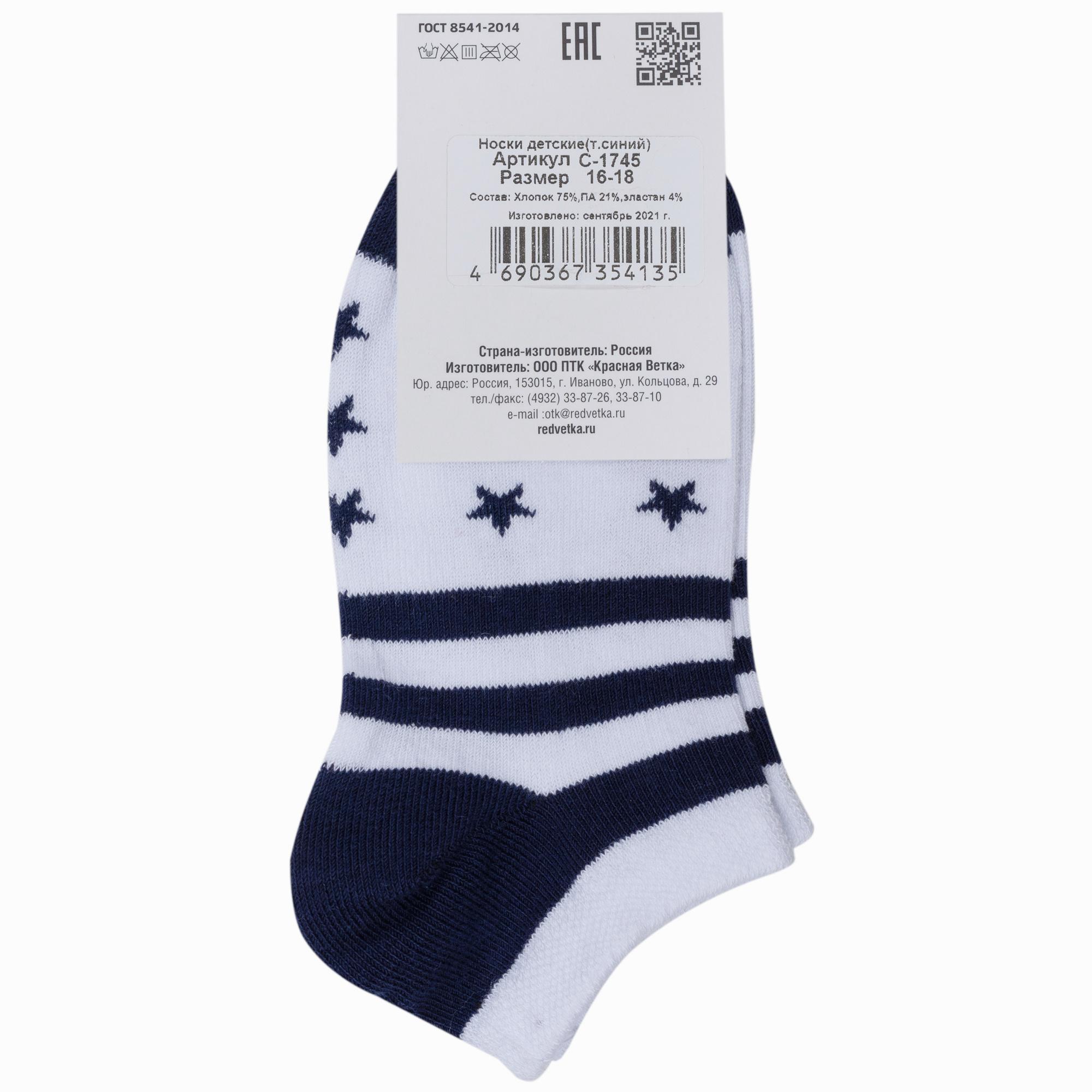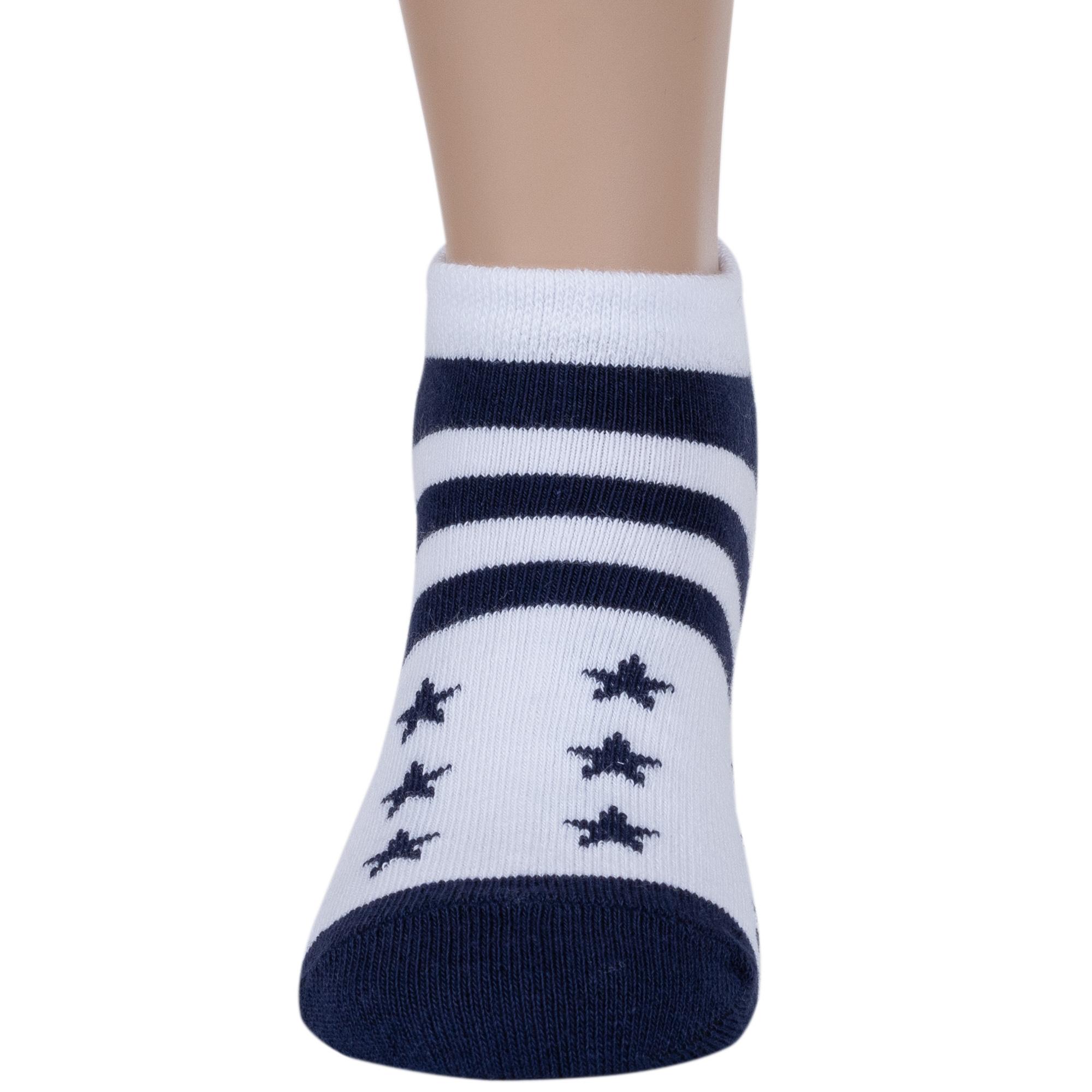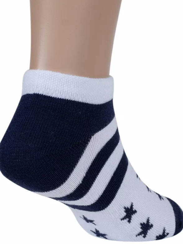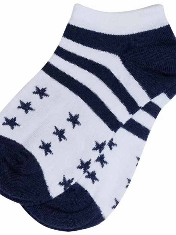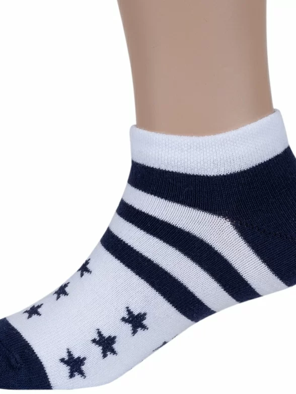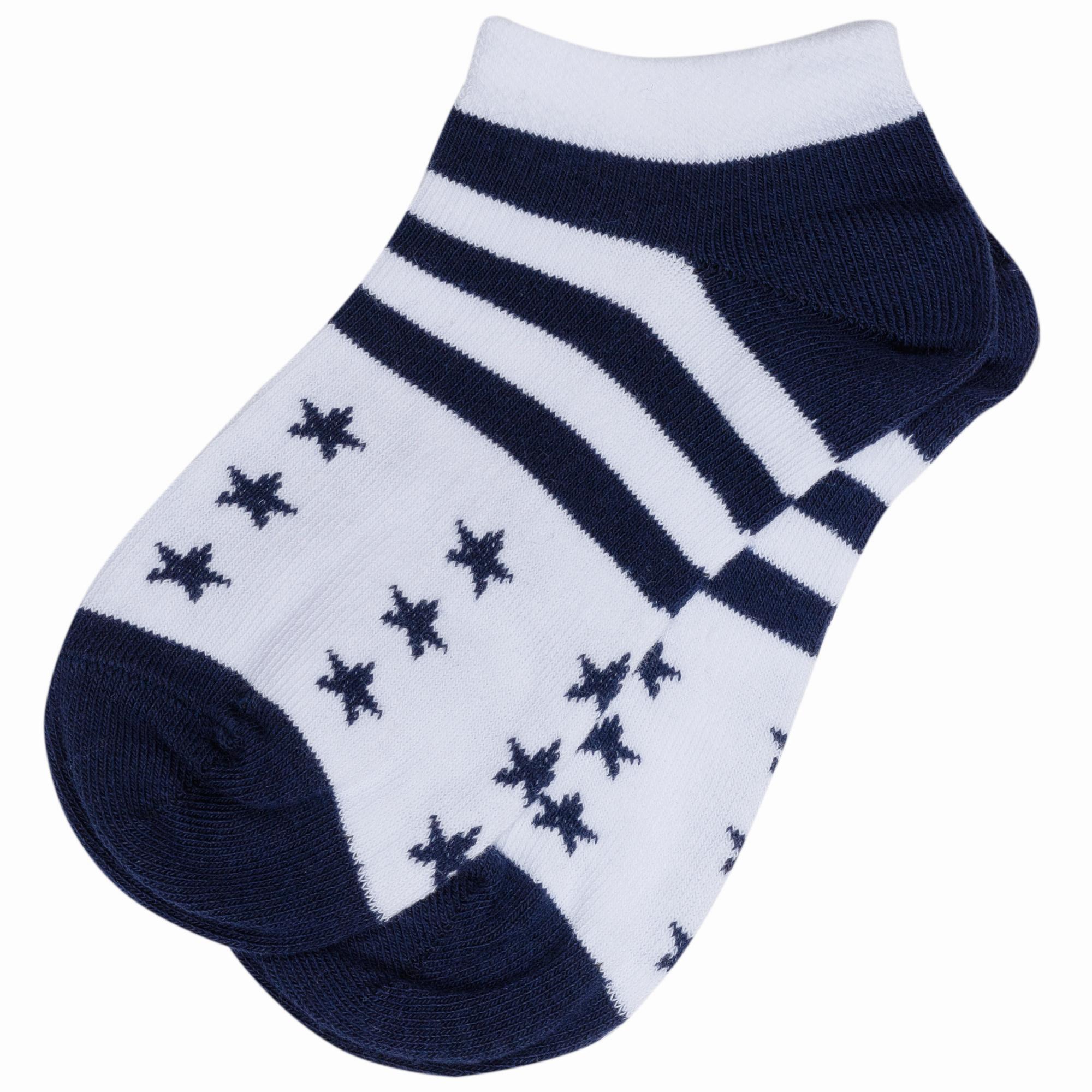 Летние ультракороткие детские носки, цвет многоцветные (мультиколор), повседневные, спортивные, возможно бесшовные, принт (рисунок): спортивные, звезды / небо, с узором, состав: 75% хлопок, 21% полиамид, 4% эластан, арт. С-1745. Производитель «КРАСНАЯ ВЕТКА» Россия под брендом «Красная ветка».