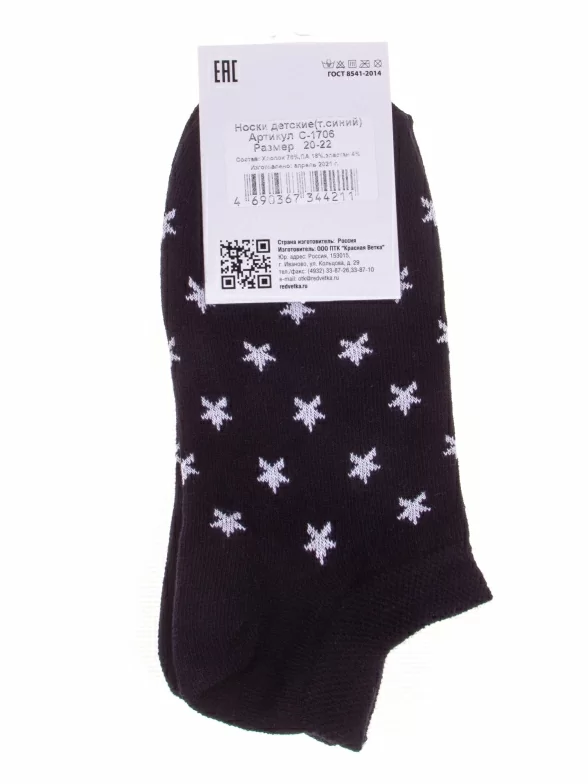 Межсезонные или летние ультракороткие детские носки, цвет синий, классические, состав: 78% хлопок, 18% ПА, 4% эластан, фабричный артикул С-1706. Производитель «КРАСНАЯ ВЕТКА» Россия под брендом «Красная ветка».